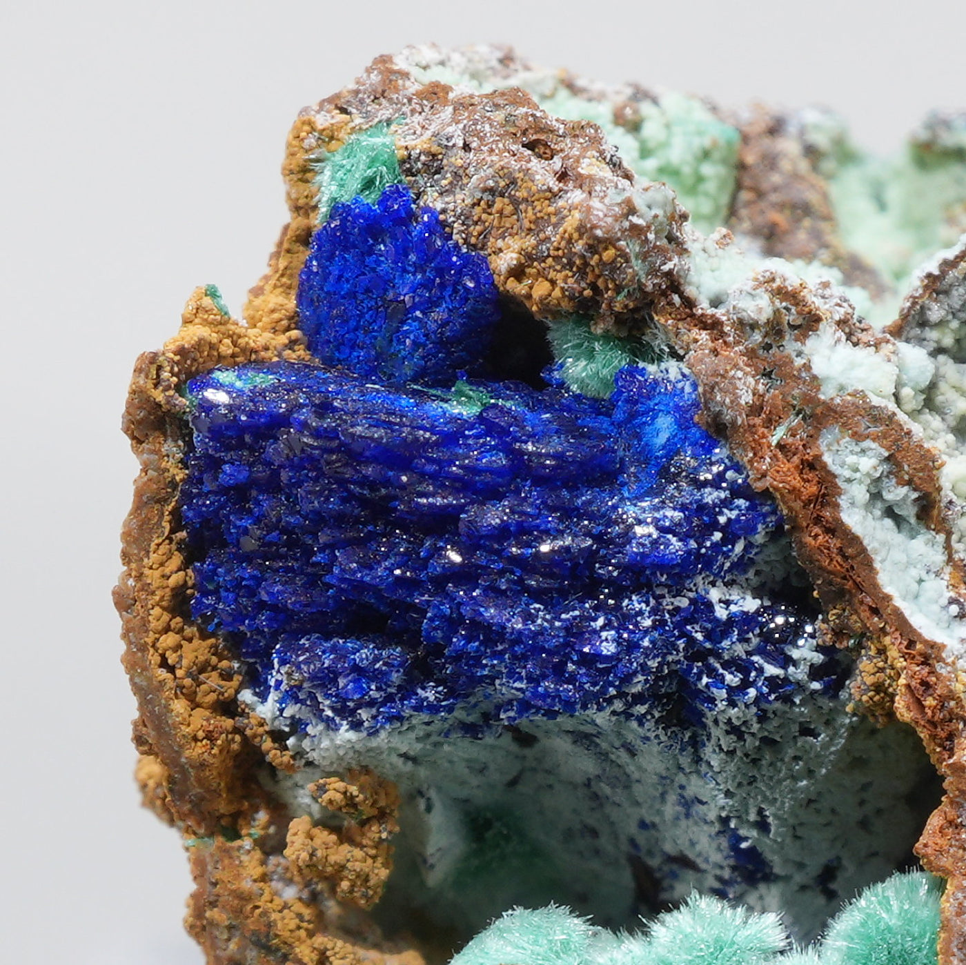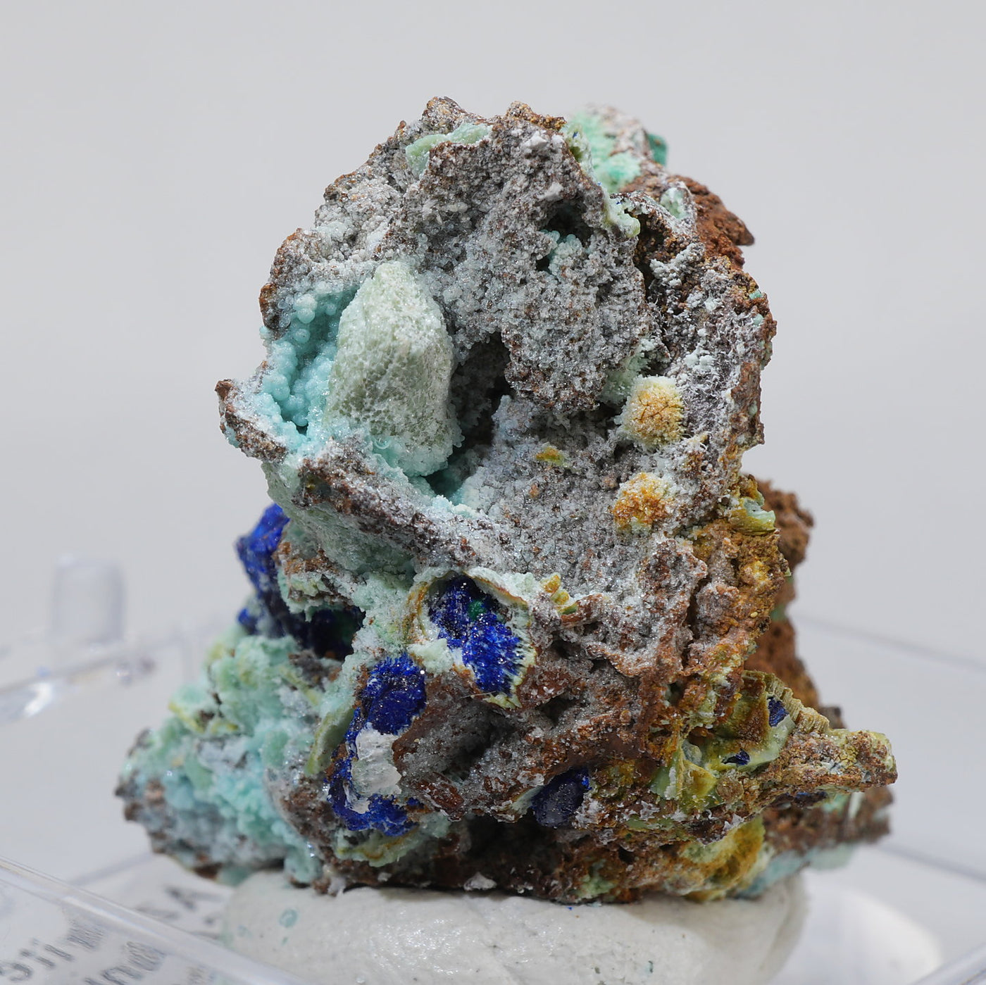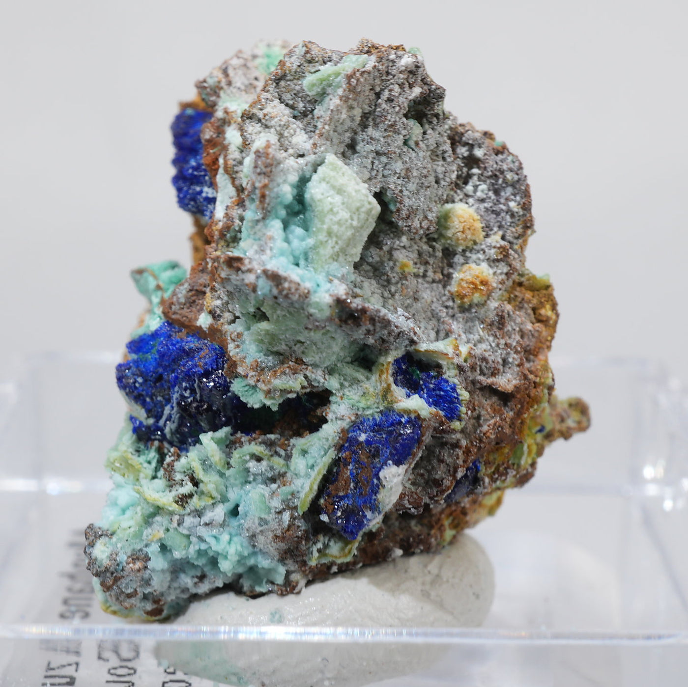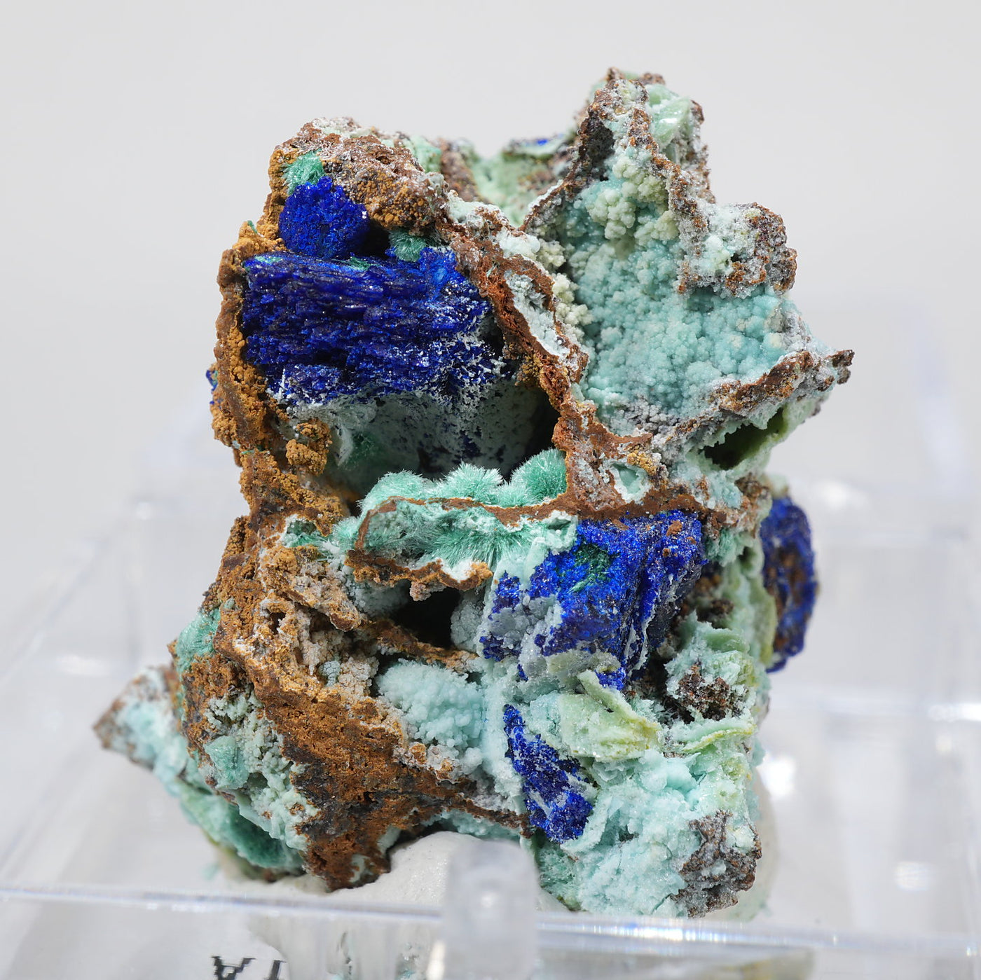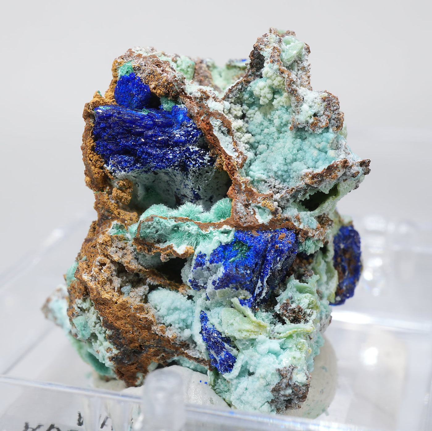 ギリシャ産 Allophane(アロフェン)・Azuriteです。水色のアロフェンと艶やかなアズライトの美しい共生鉱物です。【産地】Apo Sounio, Sounion, Attica, Greece【サイズ】約25mm×23mm×21mm【ご注意】ライトを当てて撮影しております、またご覧になるモニター環境によっても差があり、色合いの違いを感じられる事が有ります。 商品は天然ゆえ写真では確認できない細かな傷や凹み等がある場合もございます。イメージの違いに関しての返品は受付出来かねますのでご了承ください。【その他】価格は税込表示です、送料は全国一律全て無料です。宅配便またはポスト投函便(ヤマト運輸ネコポス)にて配送いたします。発送方法の指定はできません。