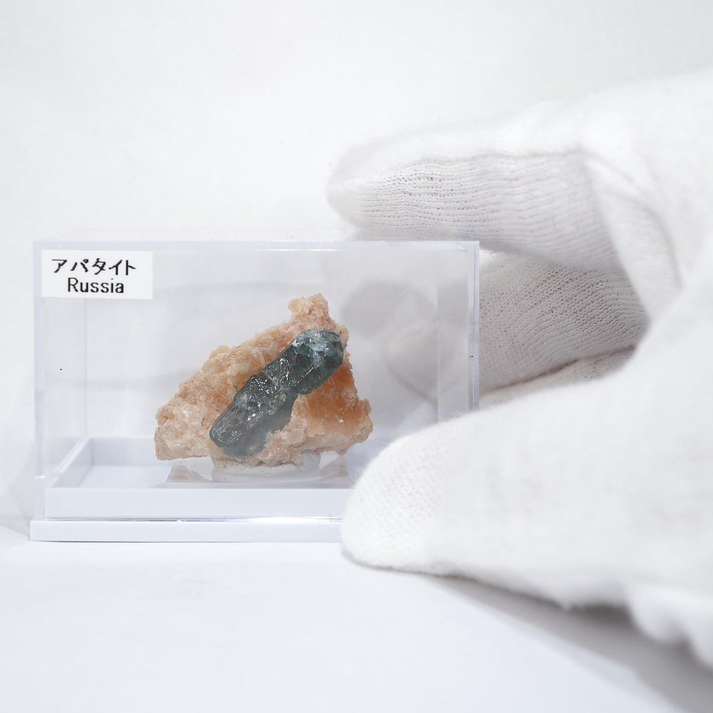 ロシア産のアパタイトです。艶やかな結晶で、スモーキーがかったブルーグリーンの色合いが魅力です。【産地】Slyudyanka, Lake Baikal, Russia【サイズ】約31mm×23mm×17mm【ご注意】ライトを当てて撮影しております、またご覧になるモニター環境によっても差があり、色合いの違いを感じられる事が有ります。 商品は天然ゆえ写真では確認できない細かな傷や凹み等がある場合もございます。イメージの違いに関しての返品は受付出来かねますのでご了承ください。【その他】価格は税込表示です、送料は全国一律全て無料です。宅配便またはポスト投函便(ヤマト運輸ネコポス)にて配送いたします。発送方法の指定はできません。