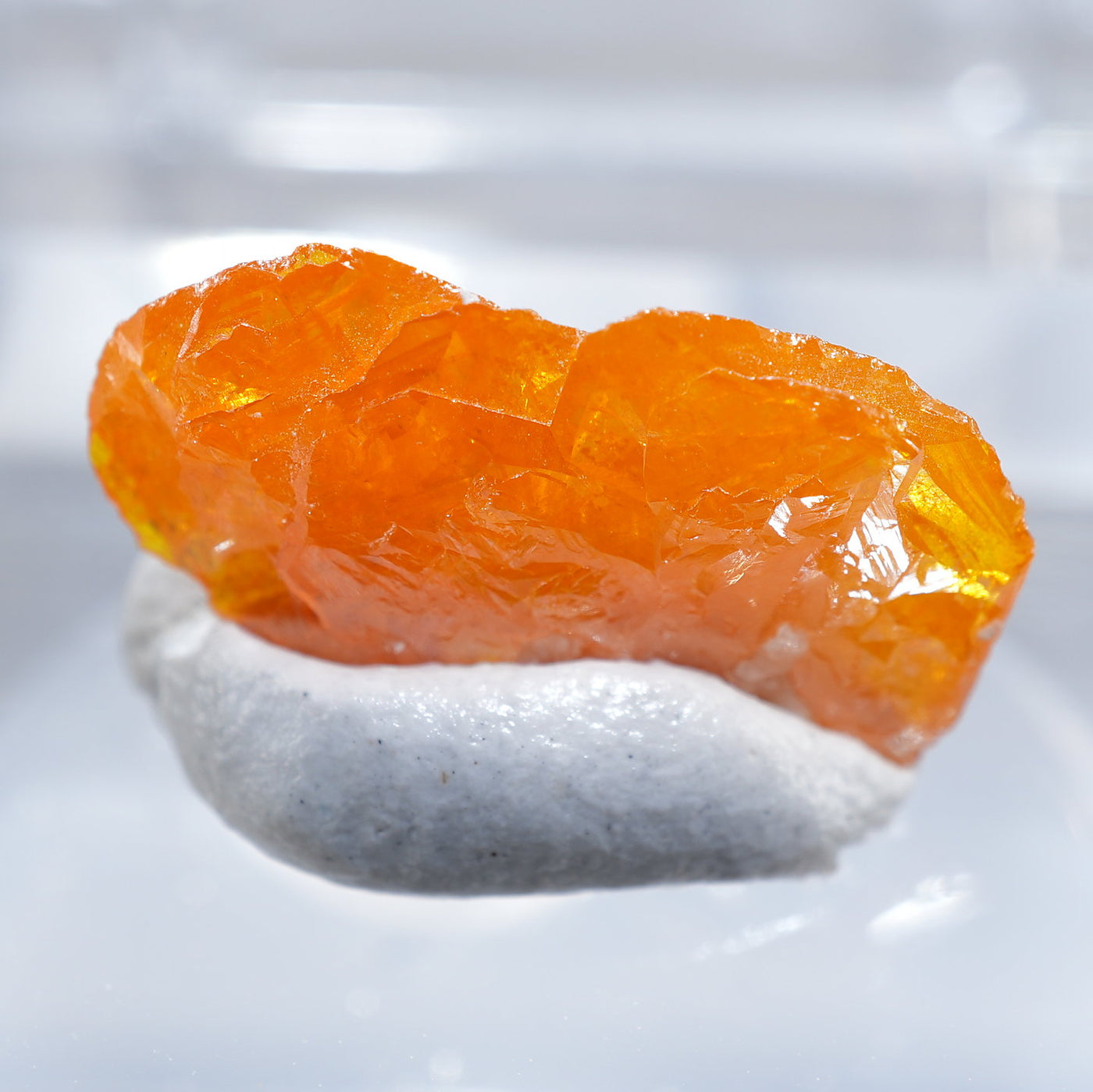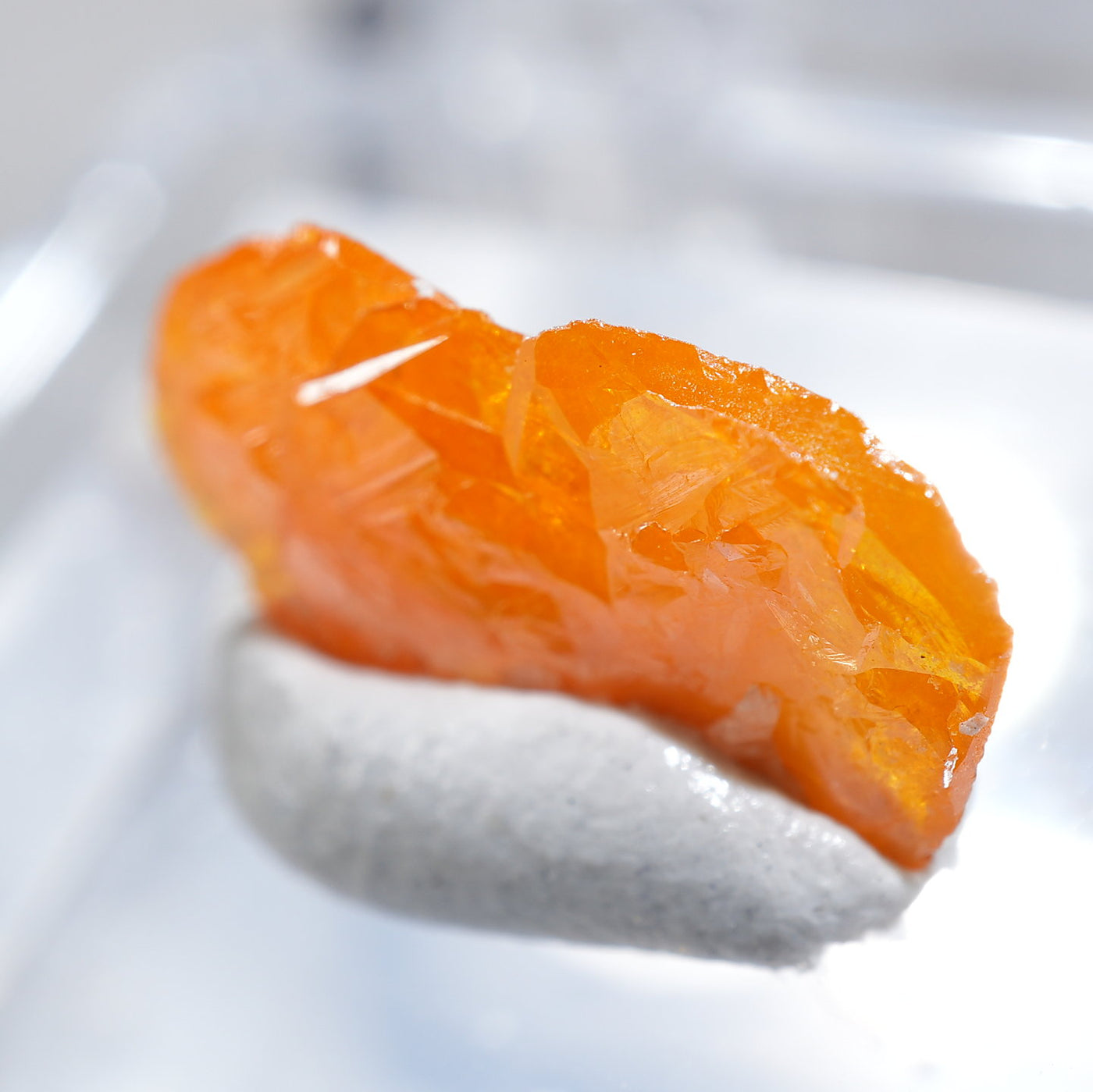 モロッコ産のWulfenite(ウルフェナイト) です。薄い板状の繊細な結晶と照りのある鮮やかなオレンジ色が特徴です。【産地】Les Dalles Mine, Mibladen, Drâa-Tafilalet Region, Morocco【サイズ】約13mm×6.7mm×2mm【ご注意】ライトを当てて撮影しております、またご覧になるモニター環境によっても差があり、色合いの違いを感じられる事が有ります。 商品は天然ゆえ写真では確認できない細かな傷や凹み等がある場合もございます。イメージの違いに関しての返品は受付出来かねますのでご了承ください。【その他】価格は税込表示です、送料は全国一律全て無料です。宅配便またはポスト投函便(ヤマト運輸ネコポス)にて配送いたします。発送方法の指定はできません。