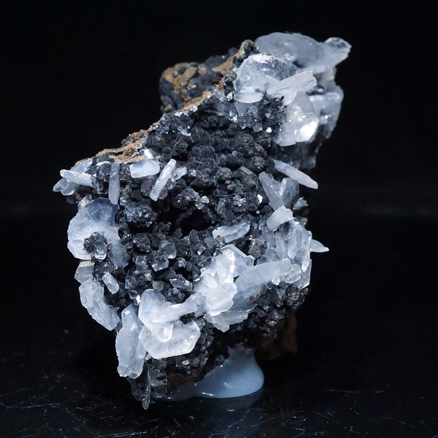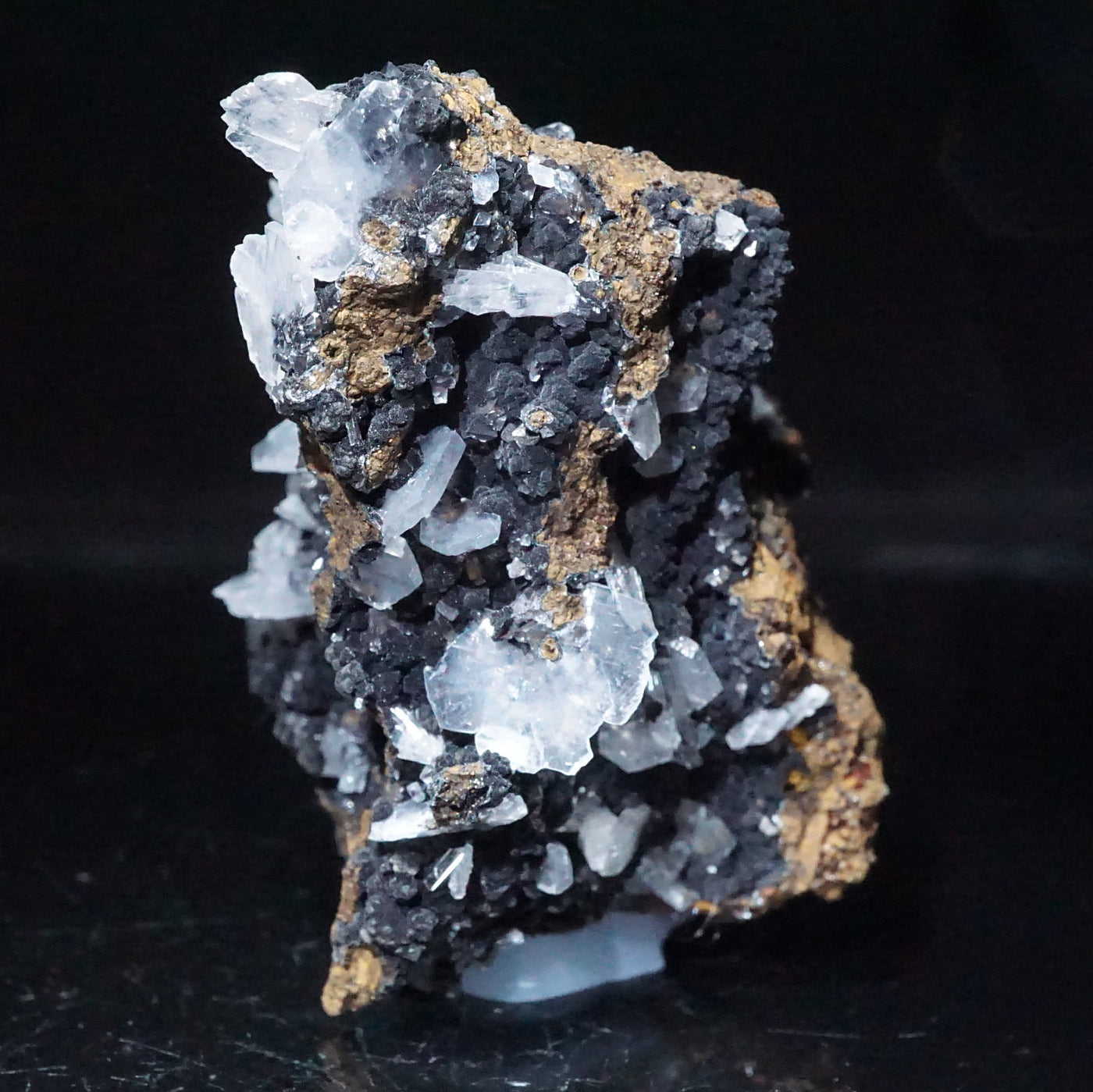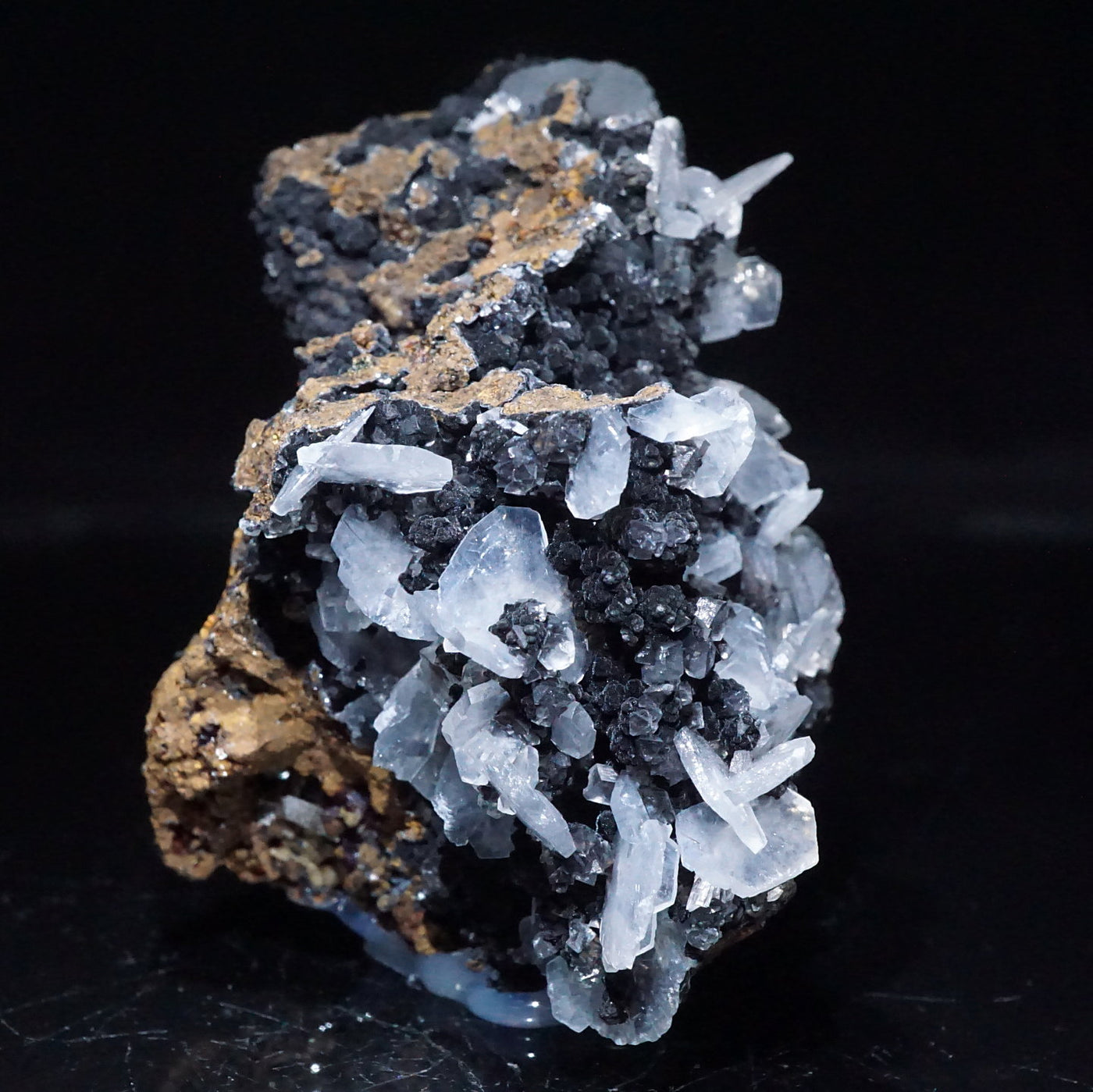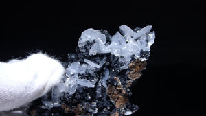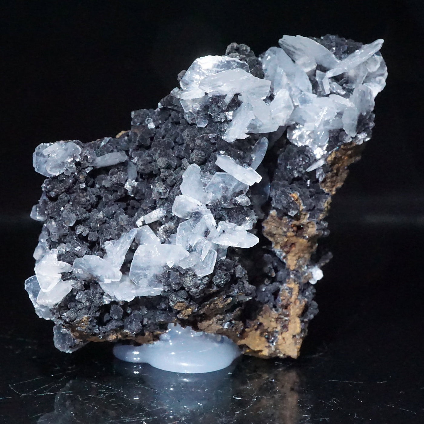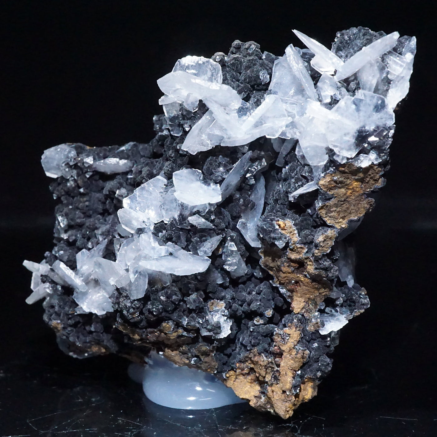 メキシコ産のカルサイトです。半透明の薄い板状の美しい結晶が母岩に広がっています。