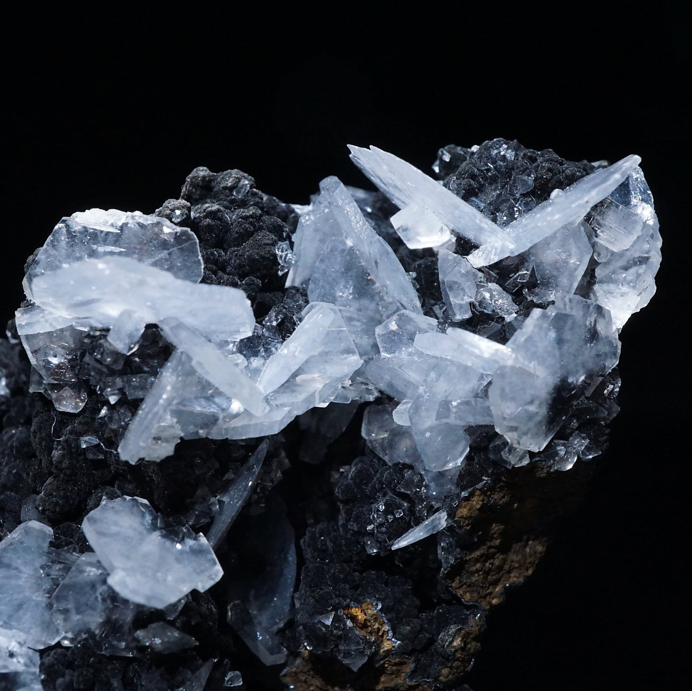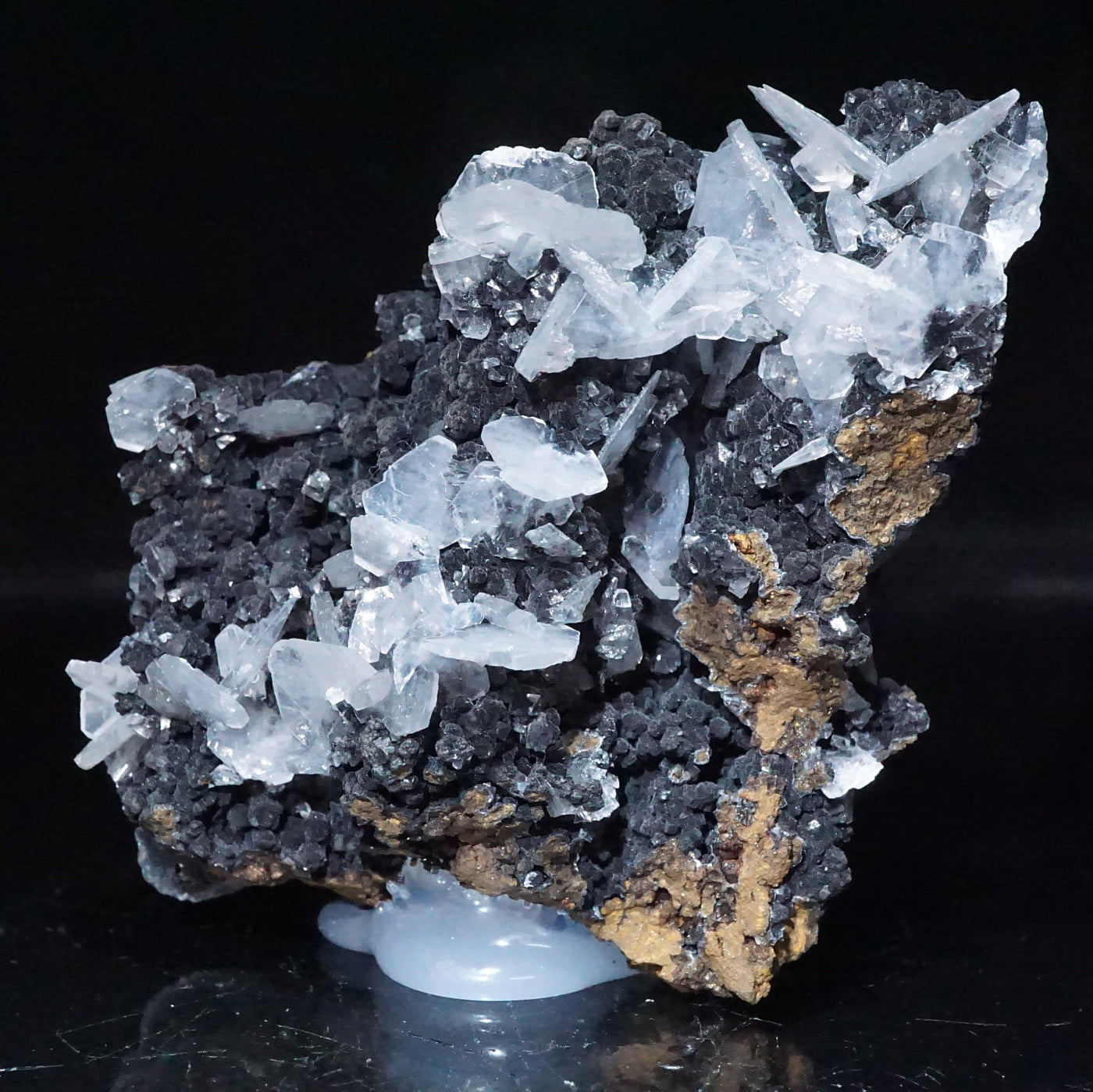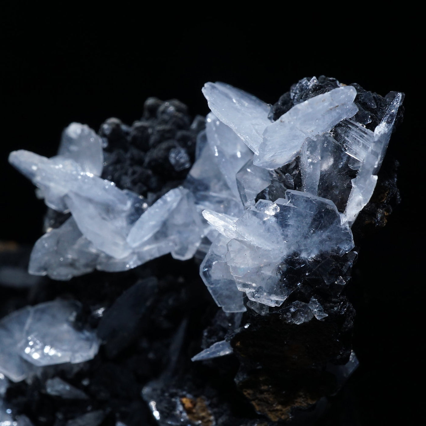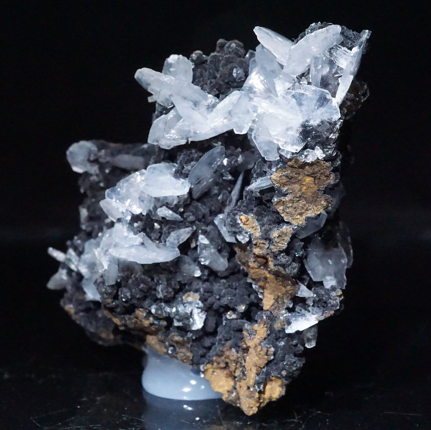 メキシコ産のカルサイトです。半透明の薄い板状の美しい結晶が母岩に広がっています。