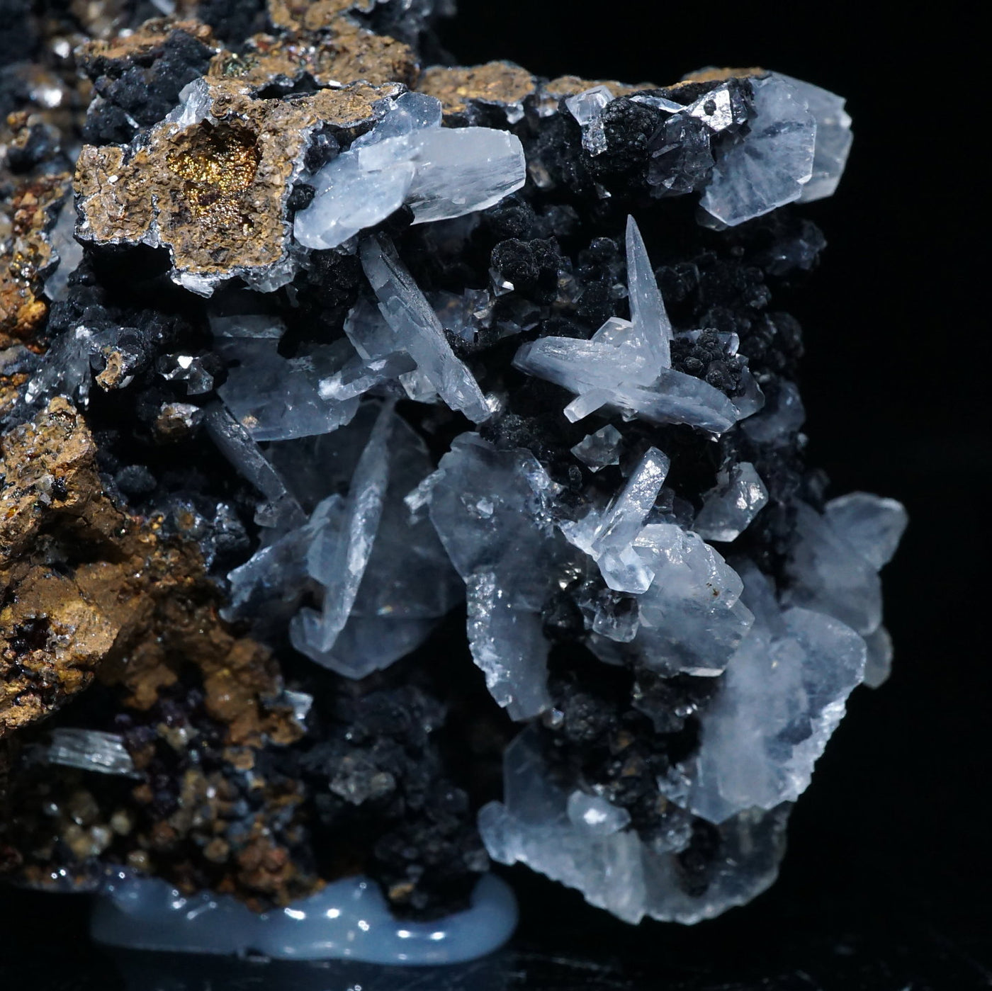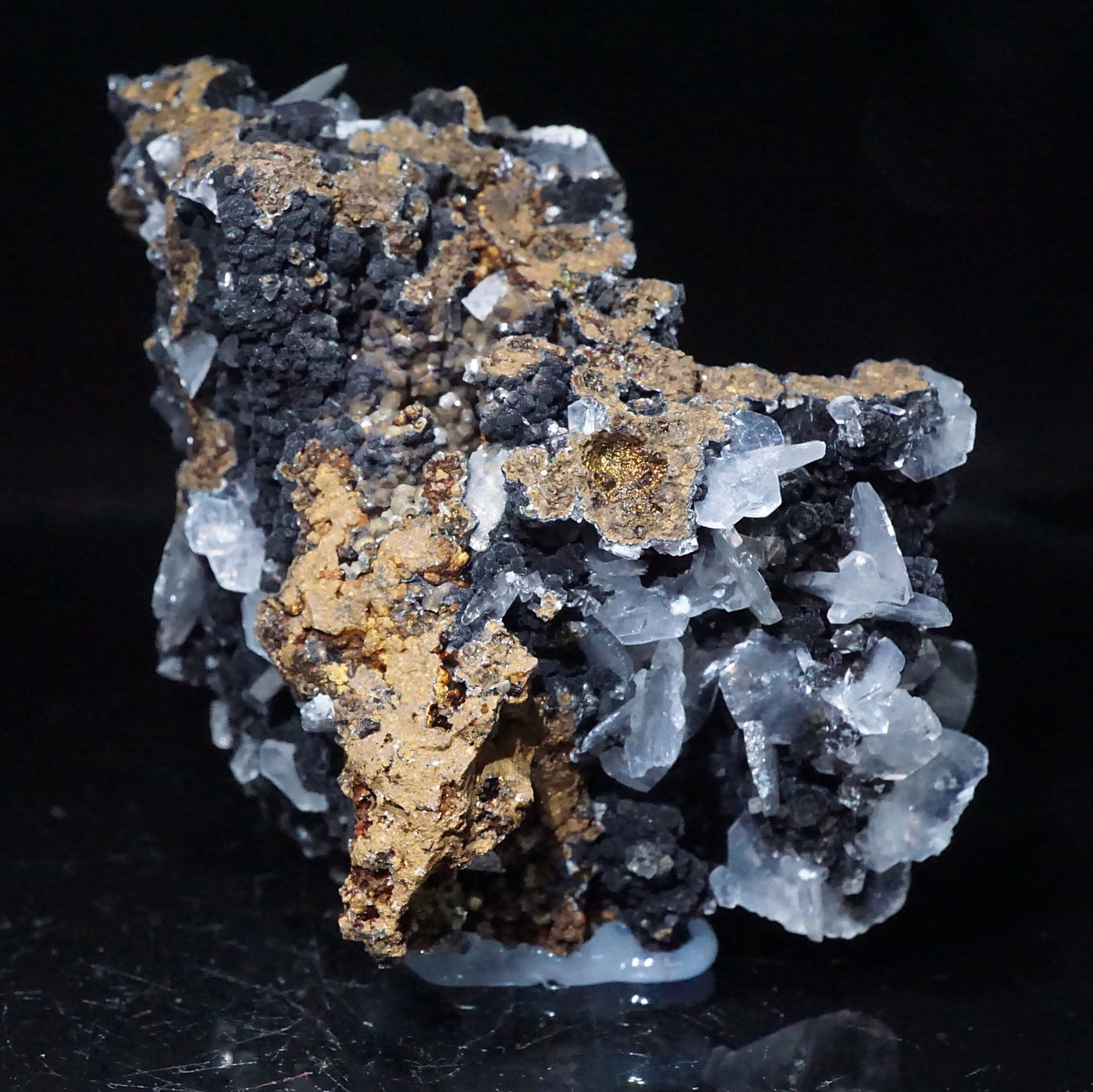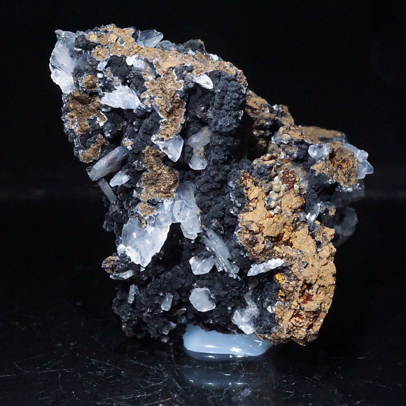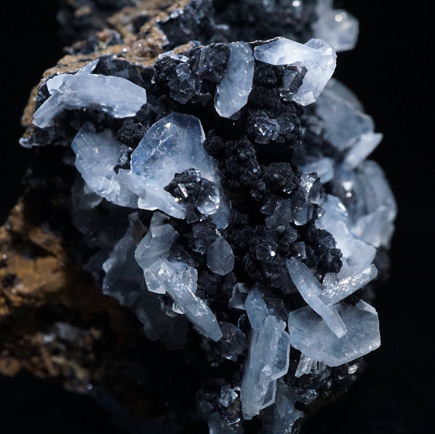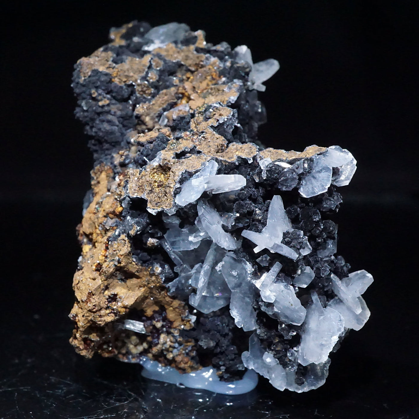 メキシコ産のカルサイトです。半透明の薄い板状の美しい結晶が母岩に広がっています。