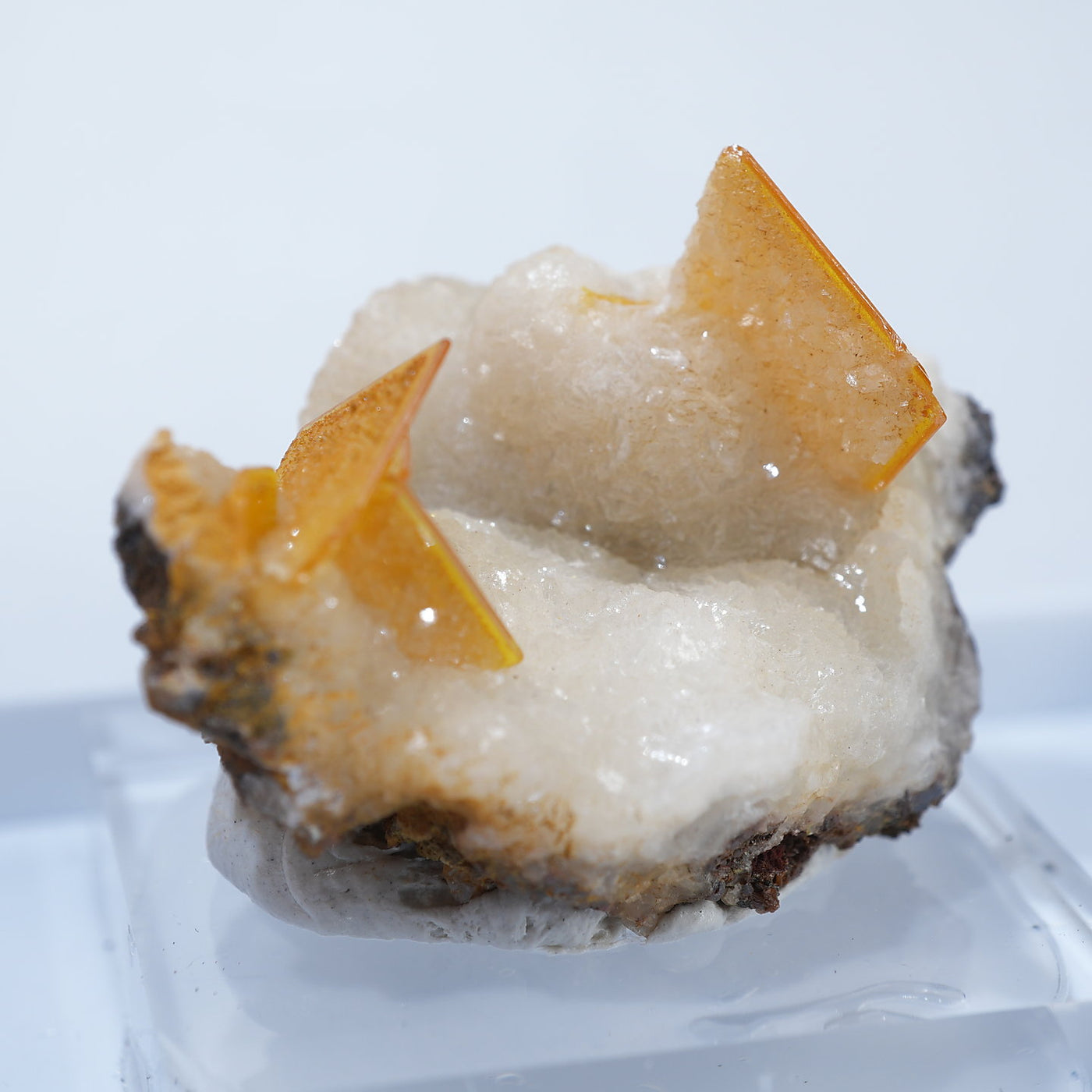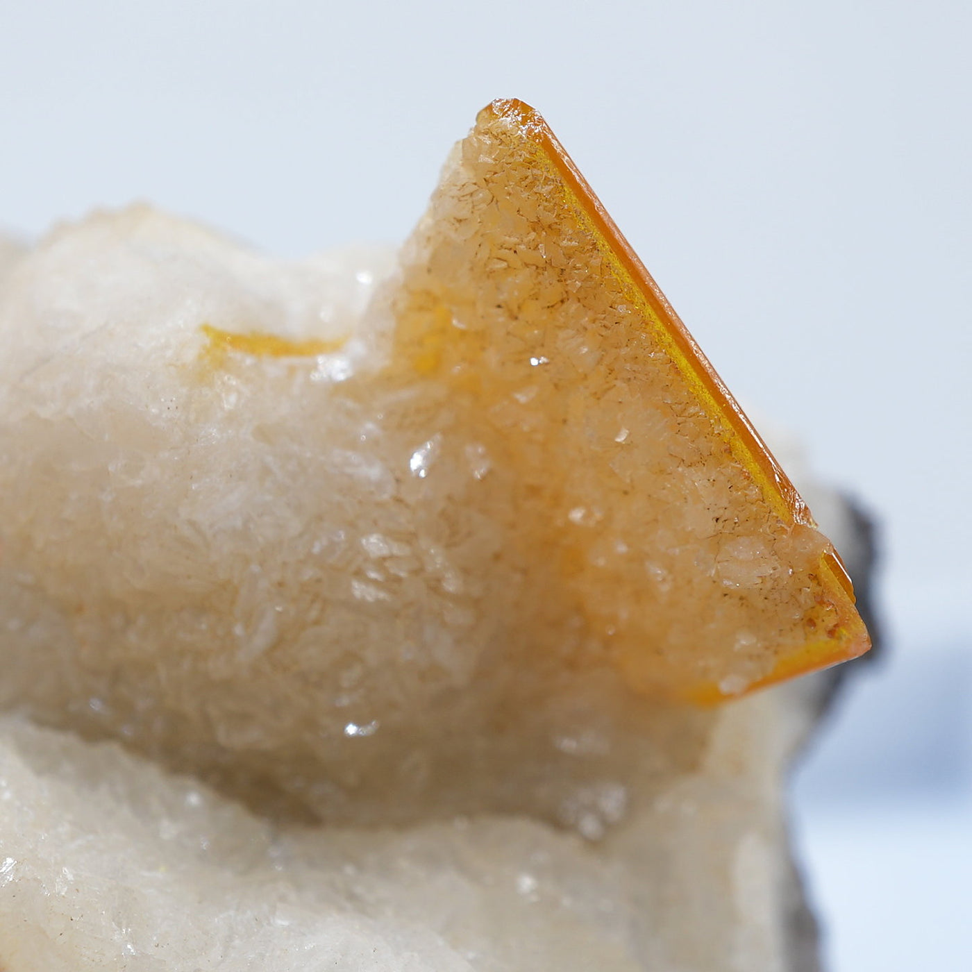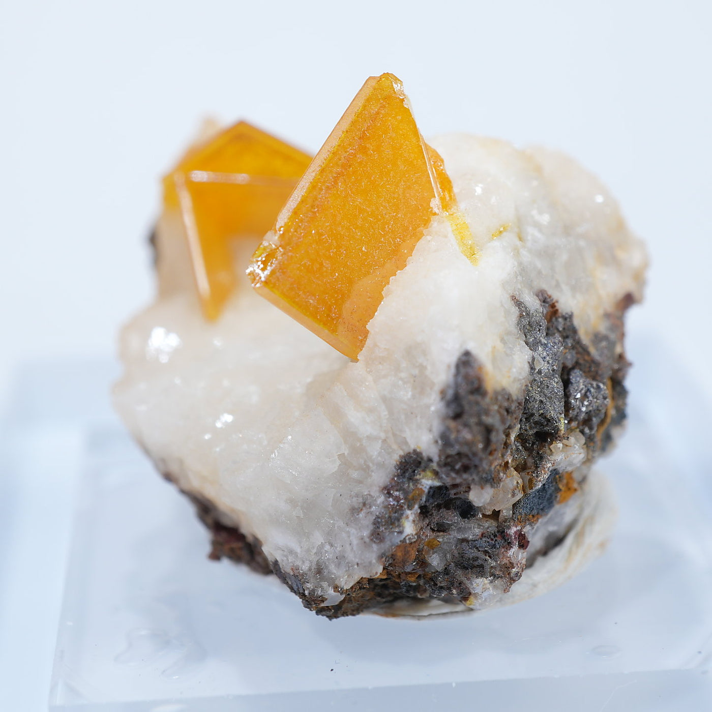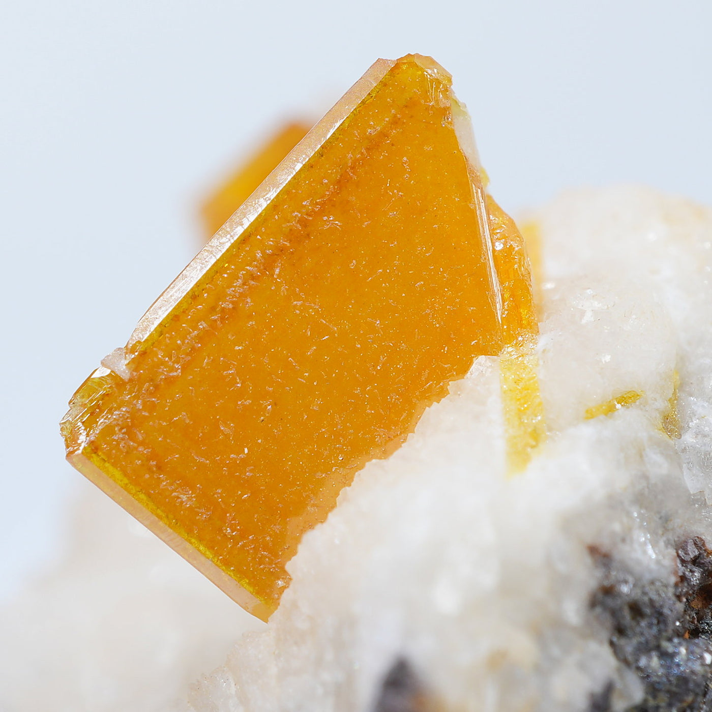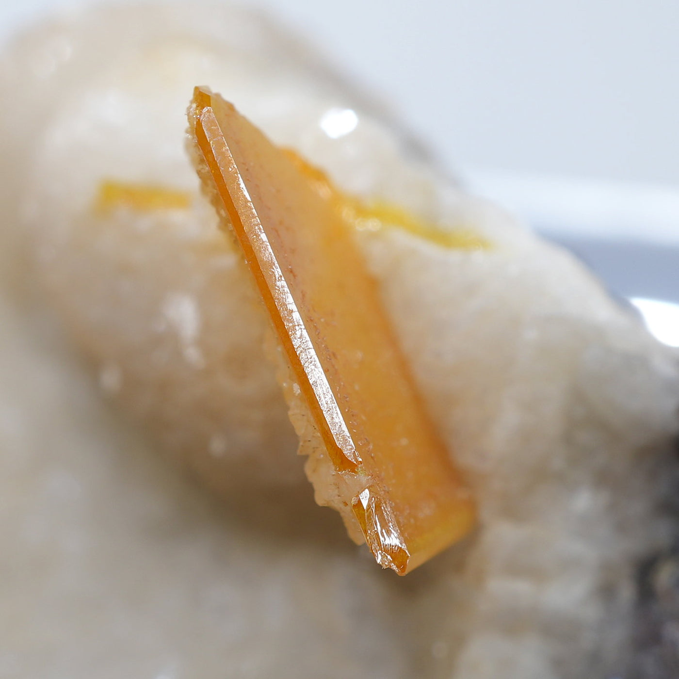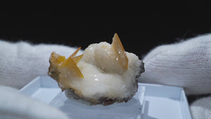 メキシコ産 Wulfenite・Calcite(ウルフェナイト・カルサイト)です。艶と透明感のある薄い板状のウルフェナイトと、光沢のあるカルサイトの共生鉱物です。発色のよい良質な標本です。【産地】Los Lamentos, Chihuahua, Mexico【サイズ】約28mm×19mm×19mm【ご注意】ライトを当てて撮影しております、またご覧になるモニター環境によっても差があり、色合いの違いを感じられる事が有ります。 商品は天然ゆえ写真では確認できない細かな傷や凹み等がある場合もございます。イメージの違いに関しての返品は受付出来かねますのでご了承ください。【その他】価格は税込表示です、送料は全国一律全て無料です。宅配便またはポスト投函便(ヤマト運輸ネコポス)にて配送いたします。発送方法の指定はできません。