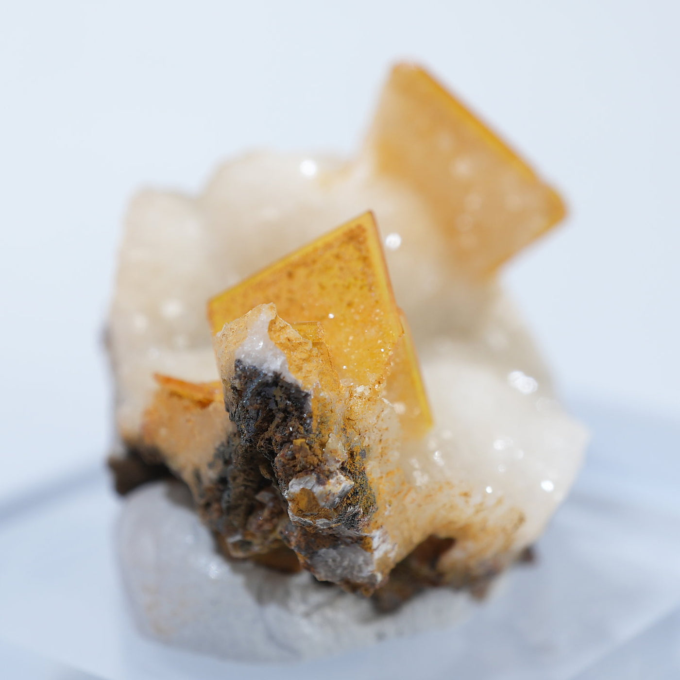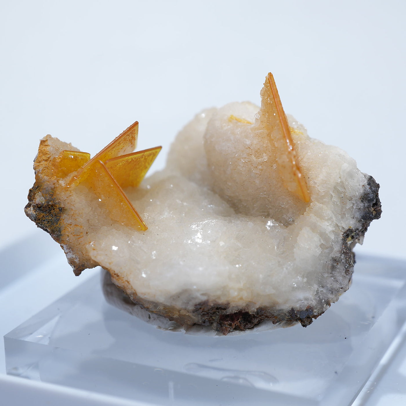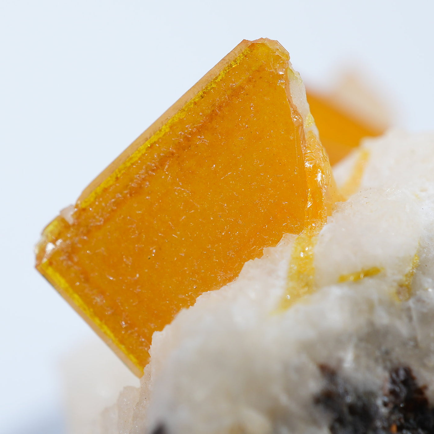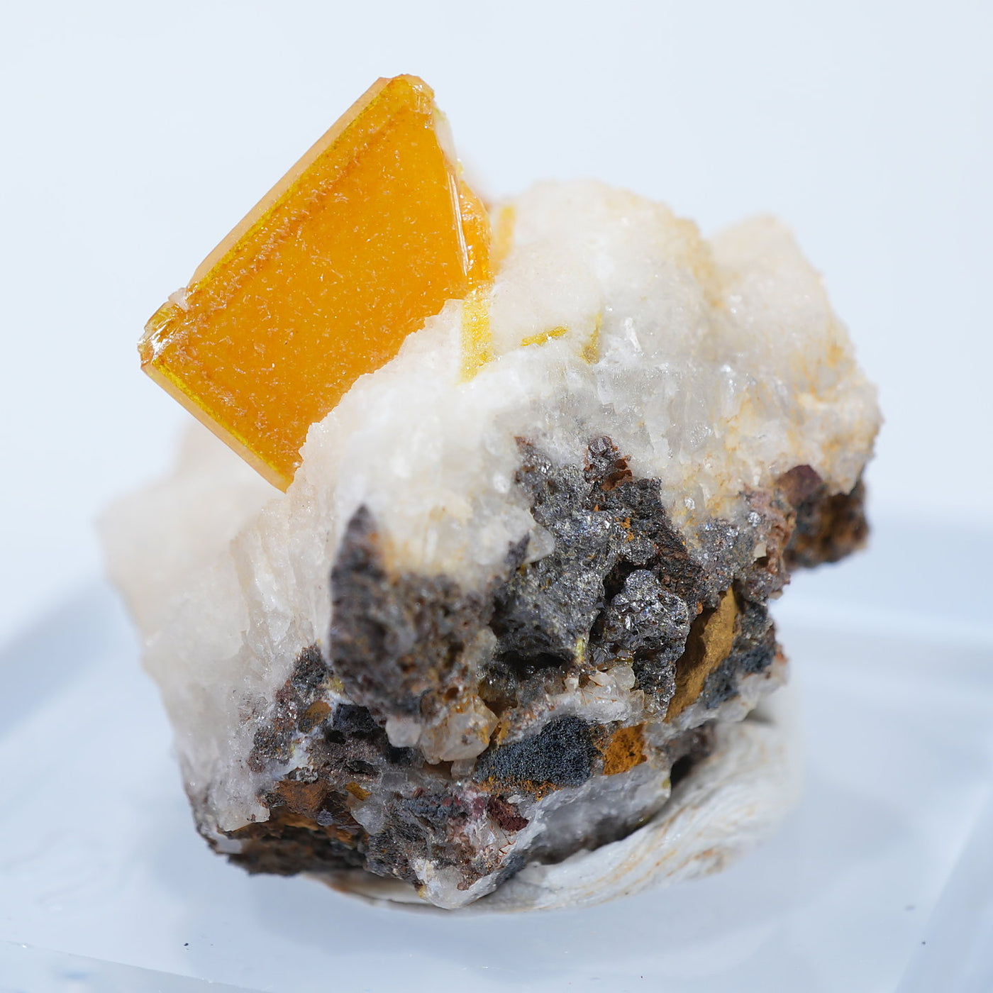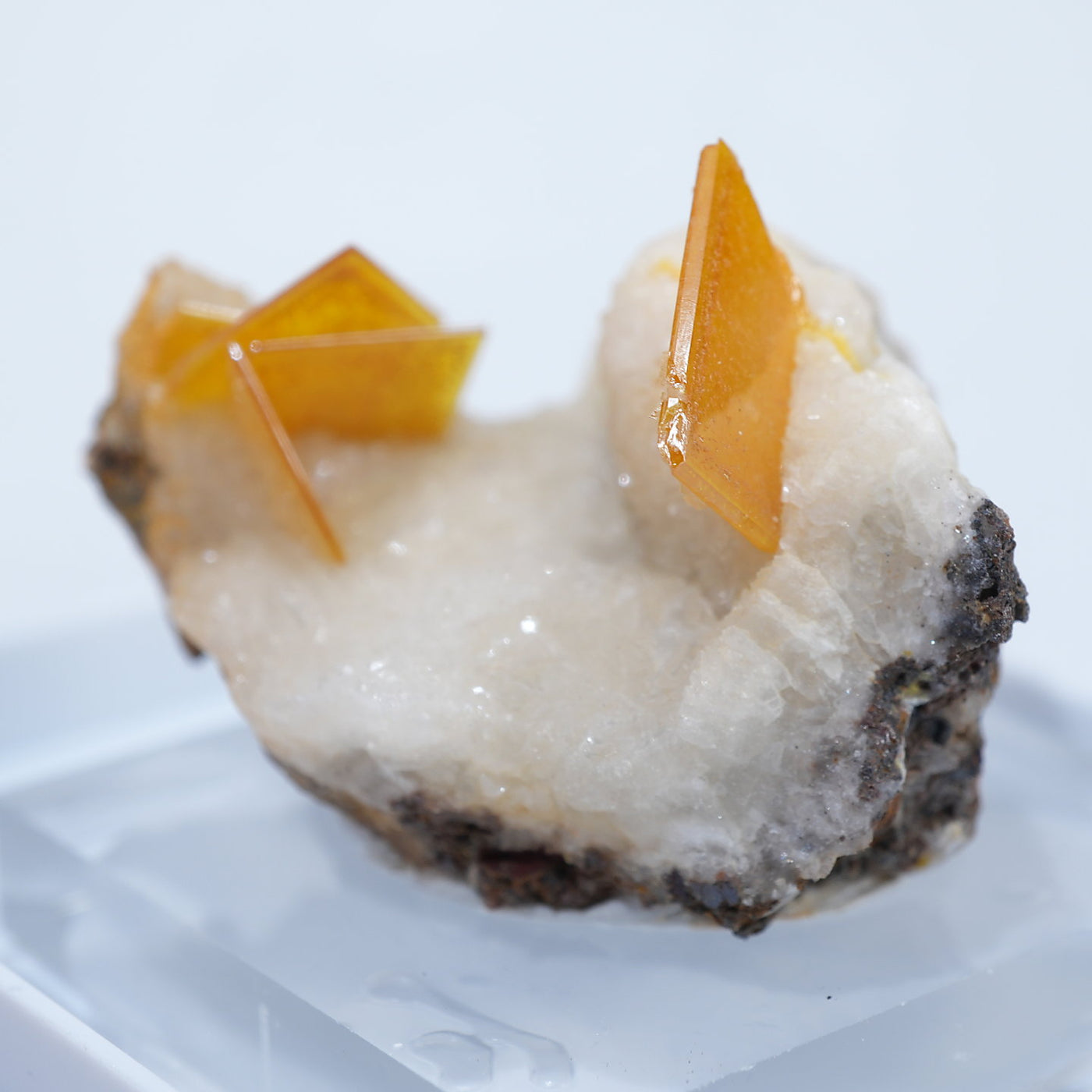 メキシコ産 Wulfenite・Calcite(ウルフェナイト・カルサイト)です。艶と透明感のある薄い板状のウルフェナイトと、光沢のあるカルサイトの共生鉱物です。発色のよい良質な標本です。【産地】Los Lamentos, Chihuahua, Mexico【サイズ】約28mm×19mm×19mm【ご注意】ライトを当てて撮影しております、またご覧になるモニター環境によっても差があり、色合いの違いを感じられる事が有ります。 商品は天然ゆえ写真では確認できない細かな傷や凹み等がある場合もございます。イメージの違いに関しての返品は受付出来かねますのでご了承ください。【その他】価格は税込表示です、送料は全国一律全て無料です。宅配便またはポスト投函便(ヤマト運輸ネコポス)にて配送いたします。発送方法の指定はできません。