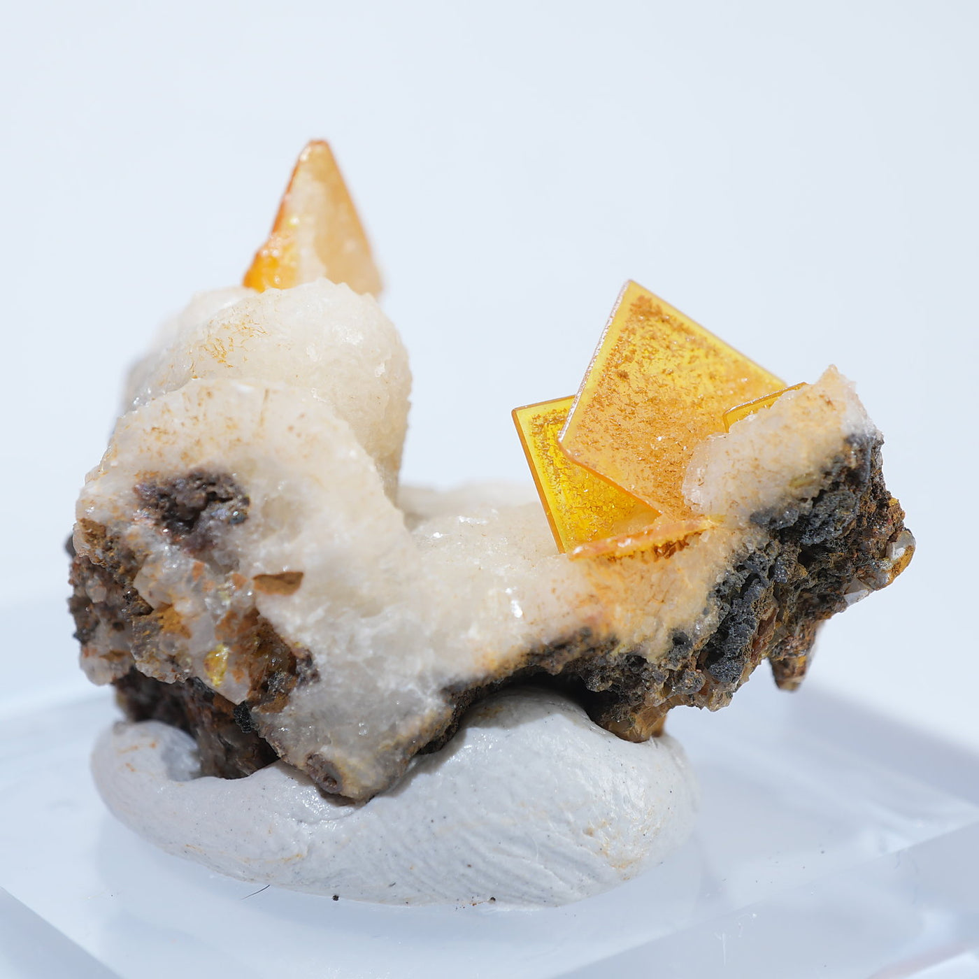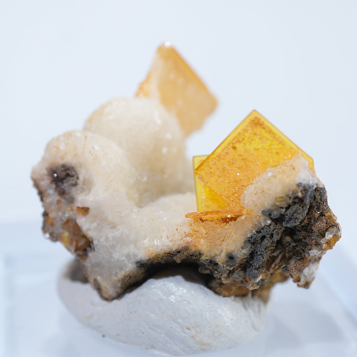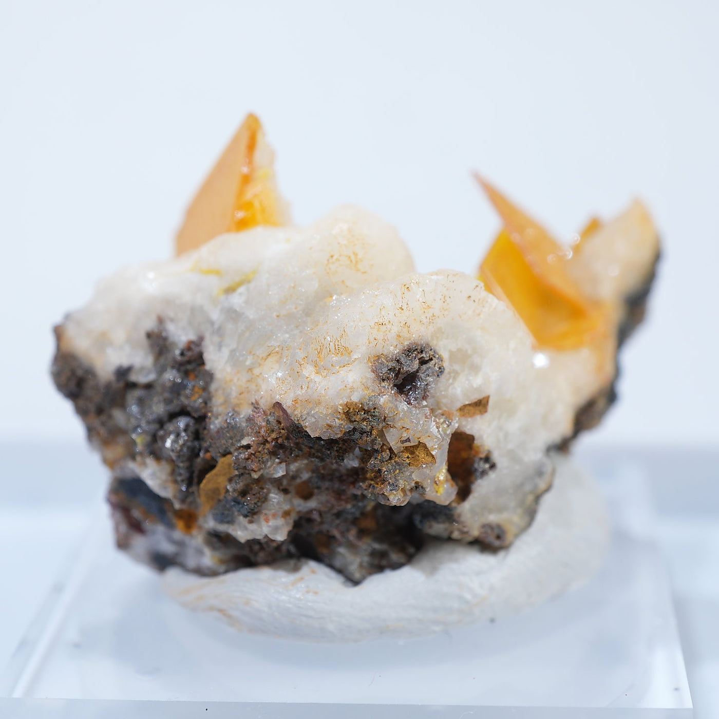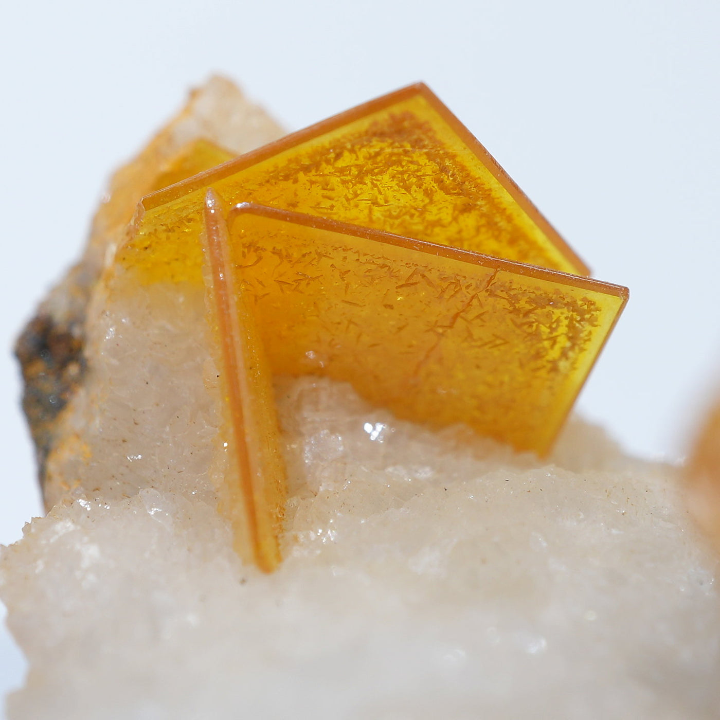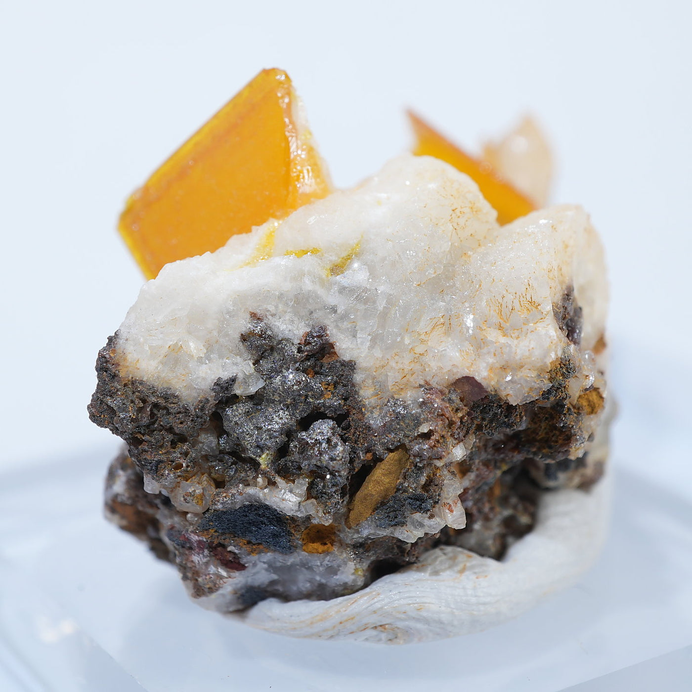 メキシコ産 Wulfenite・Calcite(ウルフェナイト・カルサイト)です。艶と透明感のある薄い板状のウルフェナイトと、光沢のあるカルサイトの共生鉱物です。発色のよい良質な標本です。【産地】Los Lamentos, Chihuahua, Mexico【サイズ】約28mm×19mm×19mm【ご注意】ライトを当てて撮影しております、またご覧になるモニター環境によっても差があり、色合いの違いを感じられる事が有ります。 商品は天然ゆえ写真では確認できない細かな傷や凹み等がある場合もございます。イメージの違いに関しての返品は受付出来かねますのでご了承ください。【その他】価格は税込表示です、送料は全国一律全て無料です。宅配便またはポスト投函便(ヤマト運輸ネコポス)にて配送いたします。発送方法の指定はできません。