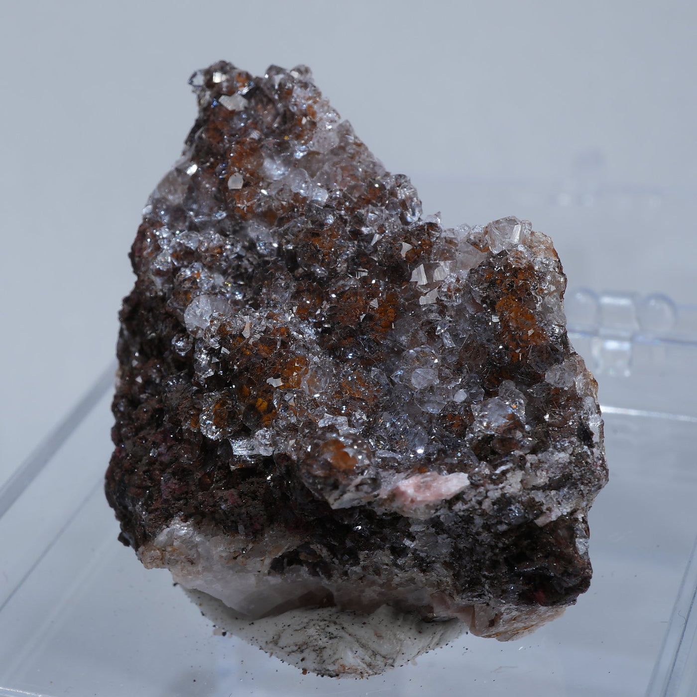 モロッコ産の水晶です。照りと透明感のある水晶と茶色い母岩とのコントラストが印象的です。クリアな美しい水晶です。