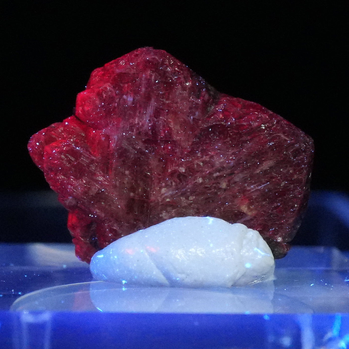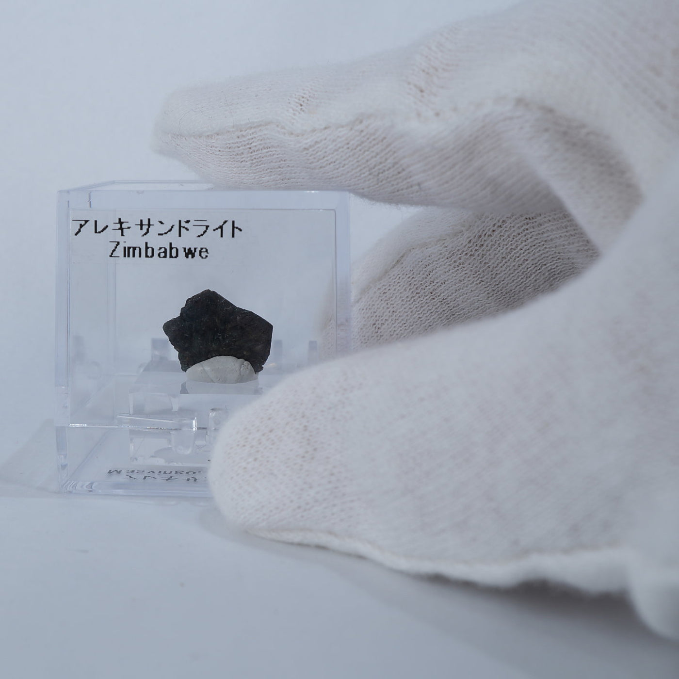 ジンバブエ産のアレキサンドライトです。アレキサンドライトはクリソベリル(金緑石)の一種です。深みのある青緑色の結晶は紫外線ライトを当てると真っ赤に蛍光する特徴があります。※撮影に使用しているライトは、紫外線ライト365nm5wタイプです。