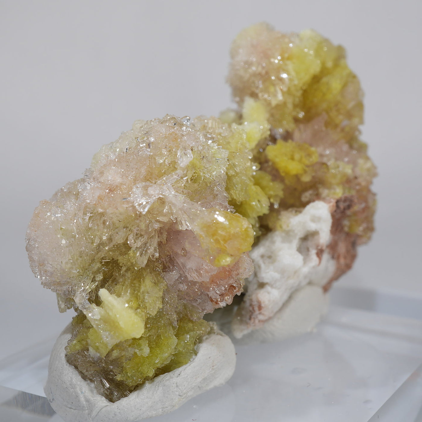 母岩に花咲くように広がる優しい色味の結晶が綺麗です。