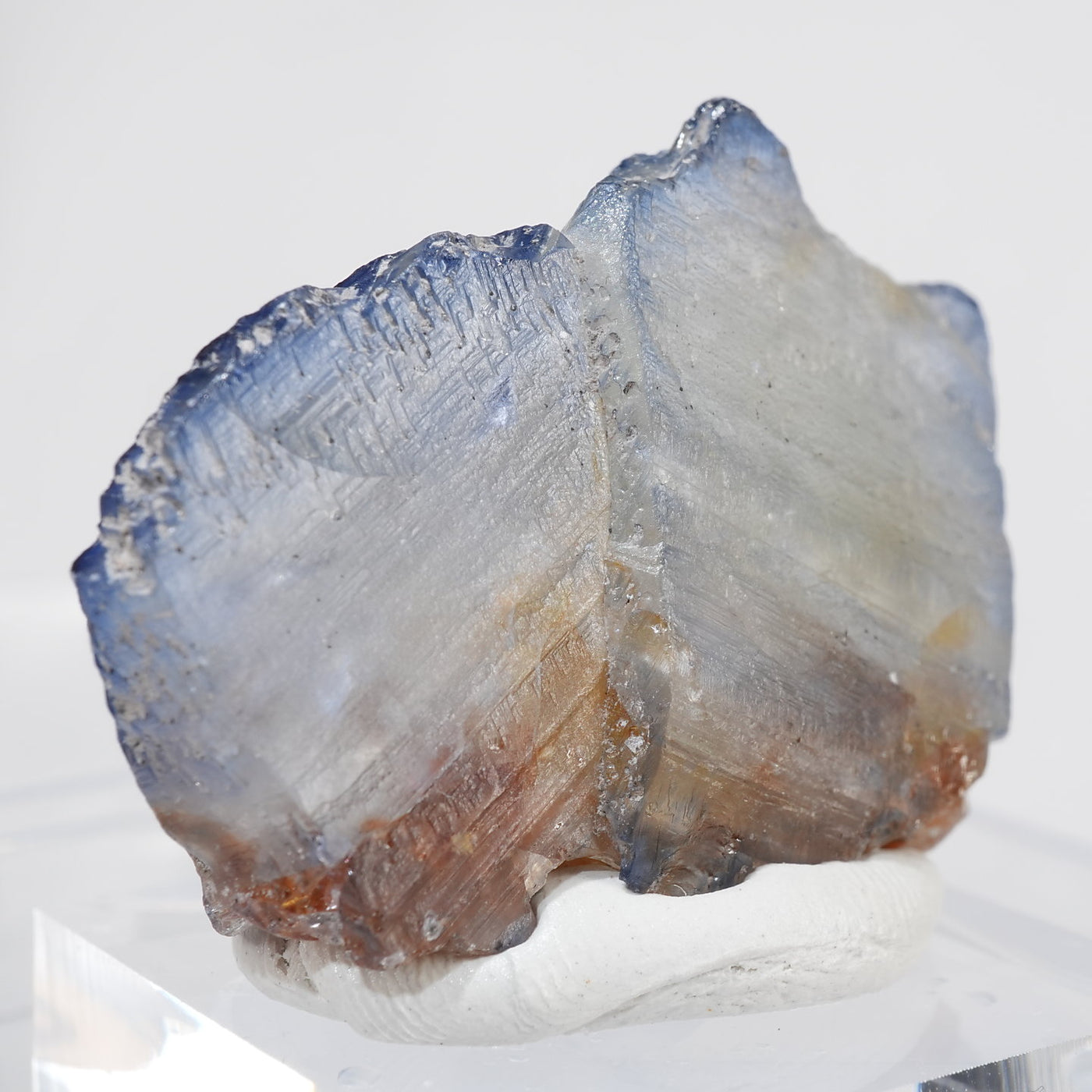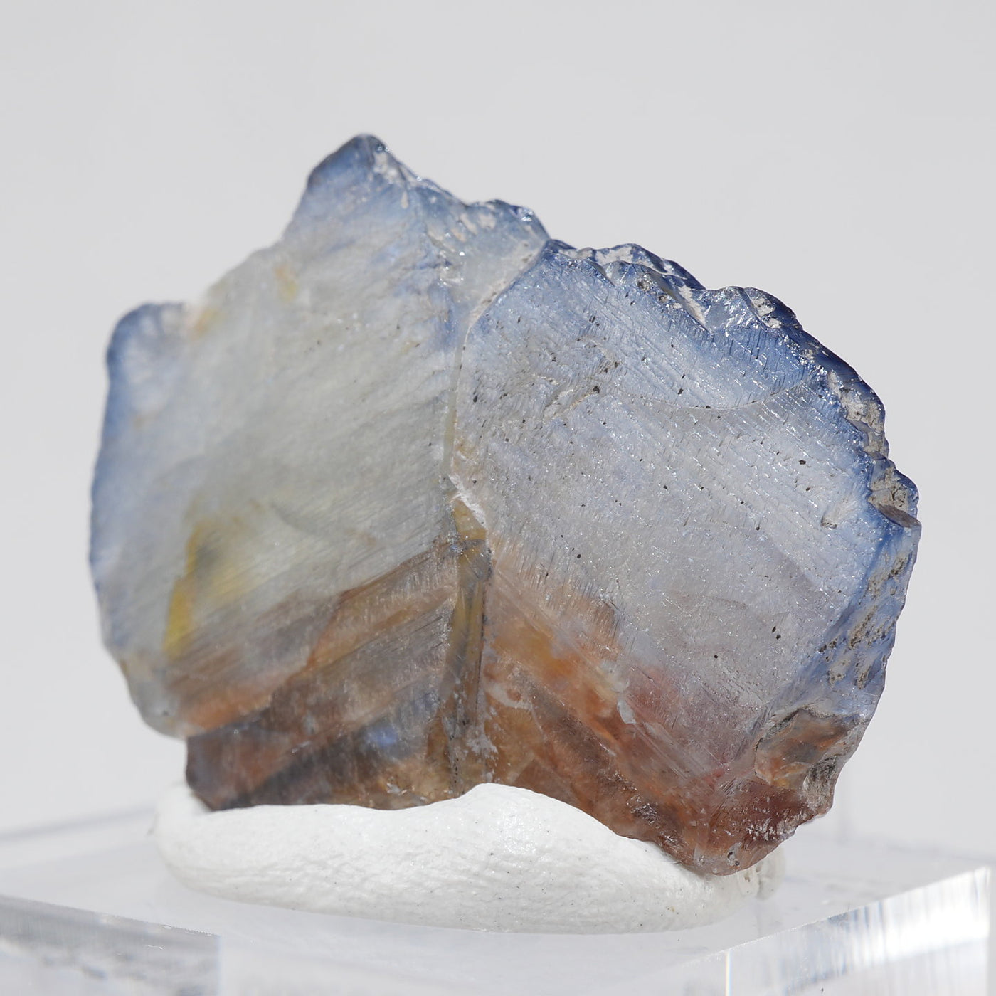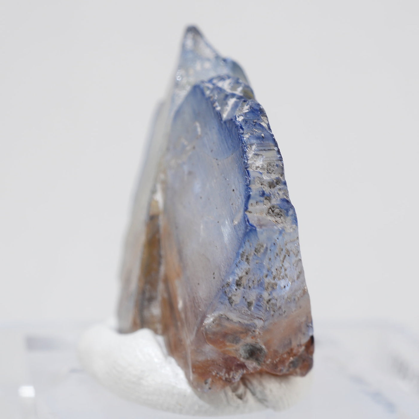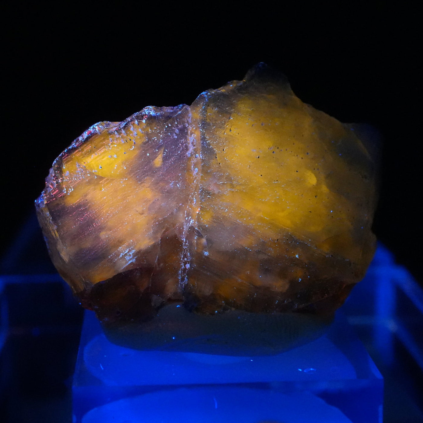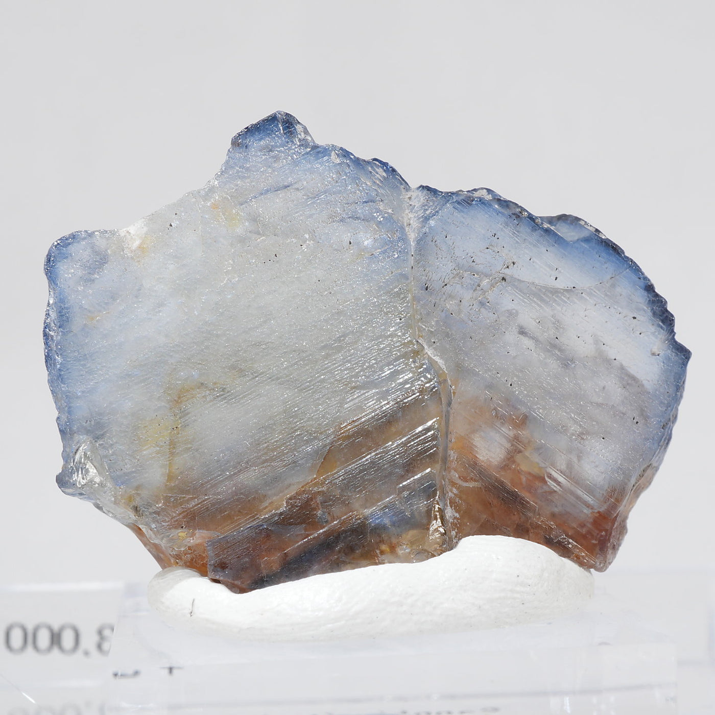 スリランカ産のSapphire(twin)です。コランダムの中で赤色のものをルビー、それ以外の色のものをサファイアと呼び分けられていますが、こちらは淡いブルーのサファイアです。紫外線ライトを鮮やかなオレンジ色に蛍光する特徴があります。※撮影に使用しているライトは、紫外線ライト365nm5wタイプです。