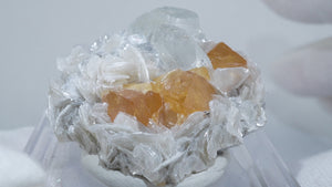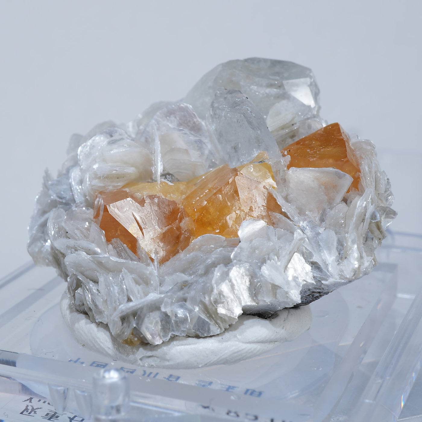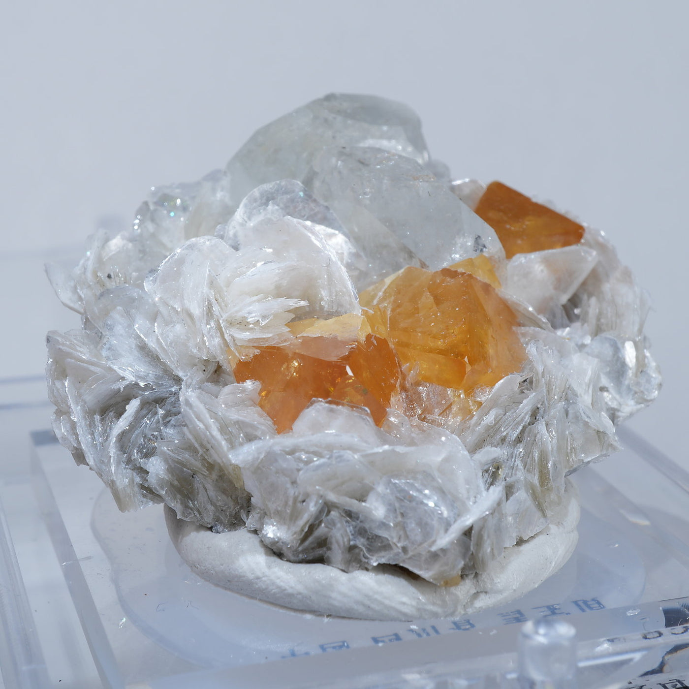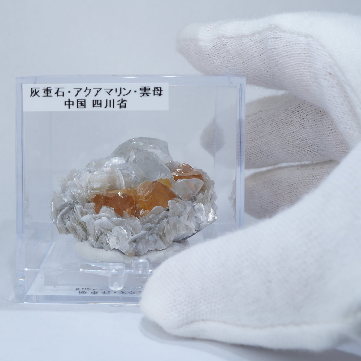 中国 四川省産の灰重石・アクアマリン・雲母です。 光沢のある繊細な雲母の中に飴色の灰重石が見られます。更にアクアマリンも共生しており、3種の鉱物のバランスの良い美しい標本です。【産地】Xuebaoding, Sichuan, China 中国四川省 雪宝頂【サイズ】約44mm×44mm×20mm【ご注意】ライトを当てて撮影しております、またご覧になるモニター環境によっても差があり、色合いの違いを感じられる事が有ります。 商品は天然ゆえ写真では確認できない細かな傷や凹み等がある場合もございます。イメージの違いに関しての返品は受付出来かねますのでご了承ください。【その他】価格は税込表示です、送料は全国一律全て無料です。宅配便またはポスト投函便(ヤマト運輸ネコポス)にて配送いたします。発送方法の指定はできません。