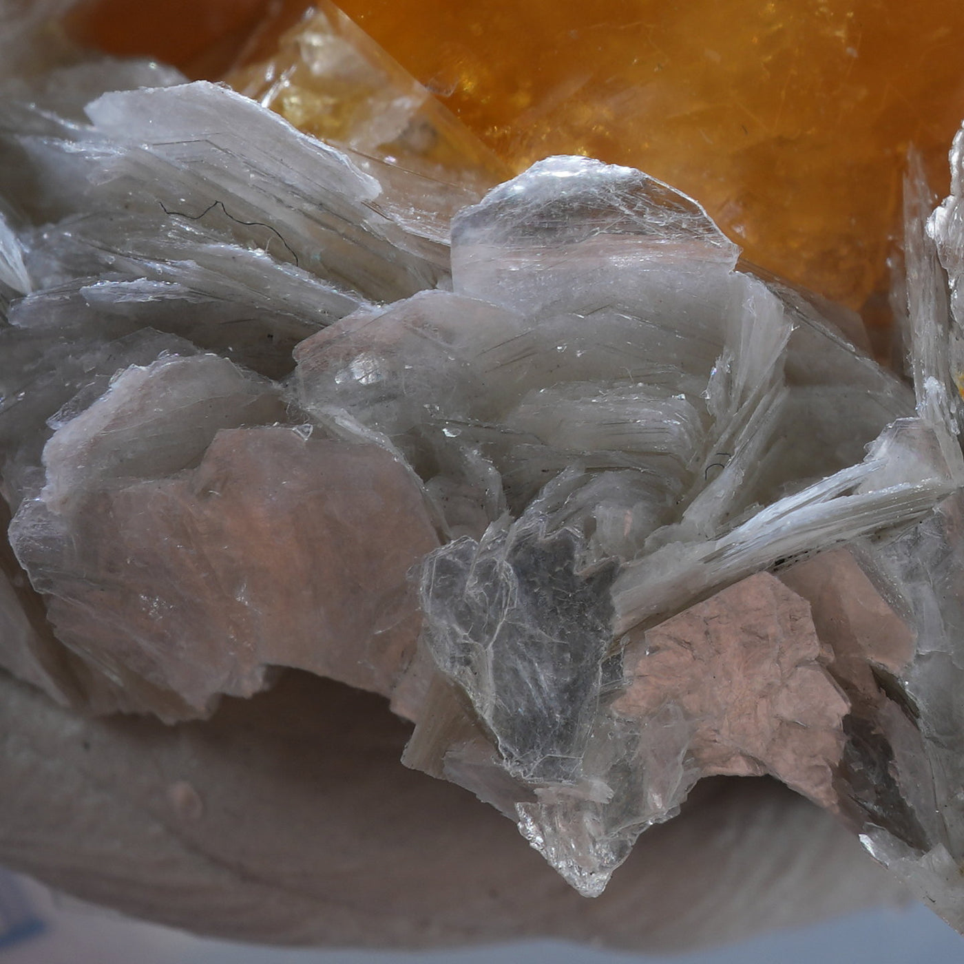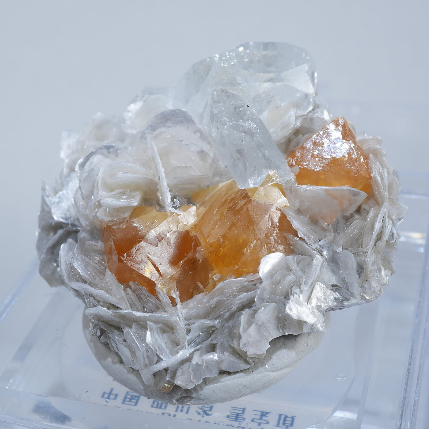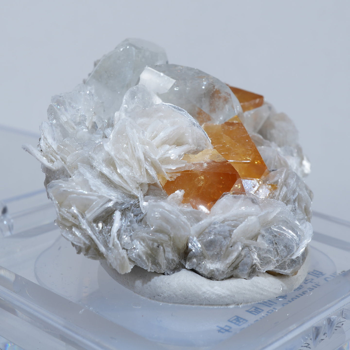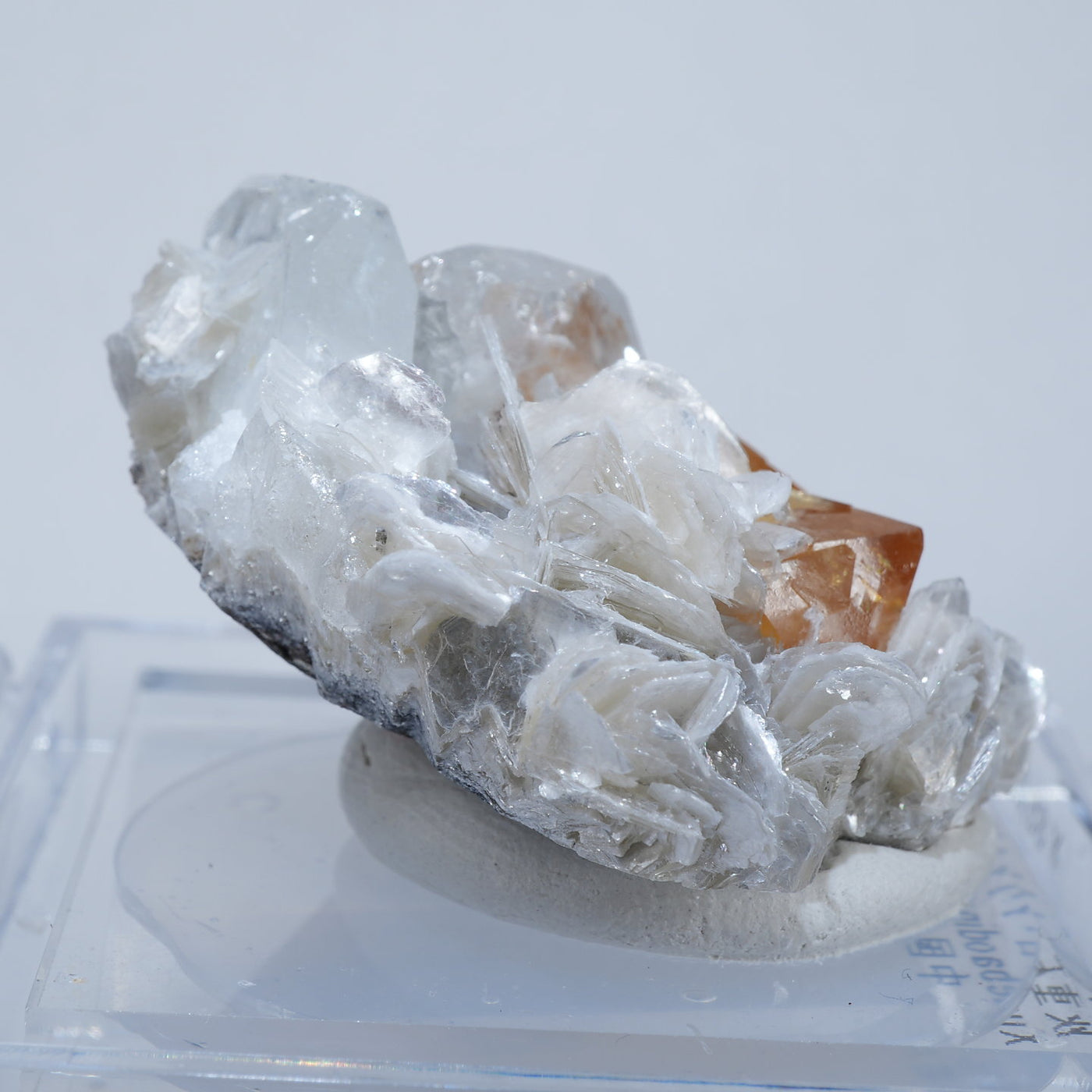 中国 四川省産の灰重石・アクアマリン・雲母です。 光沢のある繊細な雲母の中に飴色の灰重石が見られます。更にアクアマリンも共生しており、3種の鉱物のバランスの良い美しい標本です。【産地】Xuebaoding, Sichuan, China 中国四川省 雪宝頂【サイズ】約44mm×44mm×20mm【ご注意】ライトを当てて撮影しております、またご覧になるモニター環境によっても差があり、色合いの違いを感じられる事が有ります。 商品は天然ゆえ写真では確認できない細かな傷や凹み等がある場合もございます。イメージの違いに関しての返品は受付出来かねますのでご了承ください。【その他】価格は税込表示です、送料は全国一律全て無料です。宅配便またはポスト投函便(ヤマト運輸ネコポス)にて配送いたします。発送方法の指定はできません。