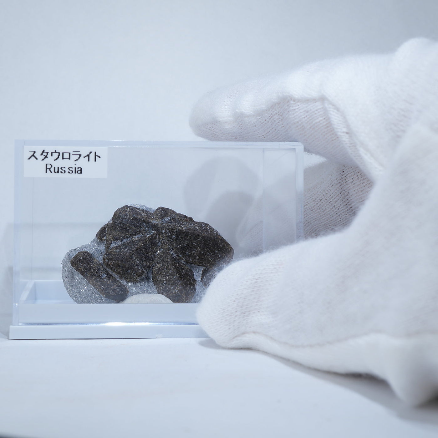 和名では「十字石」と呼ばれ、その名の通り角柱状の結晶が合わさって十字型の結晶を作ることがあるため命名されました。殆どがXのような形ですが綺麗に90度のクロスになる物もあり、古くから十字架としてお守りにされていたとも言われています。