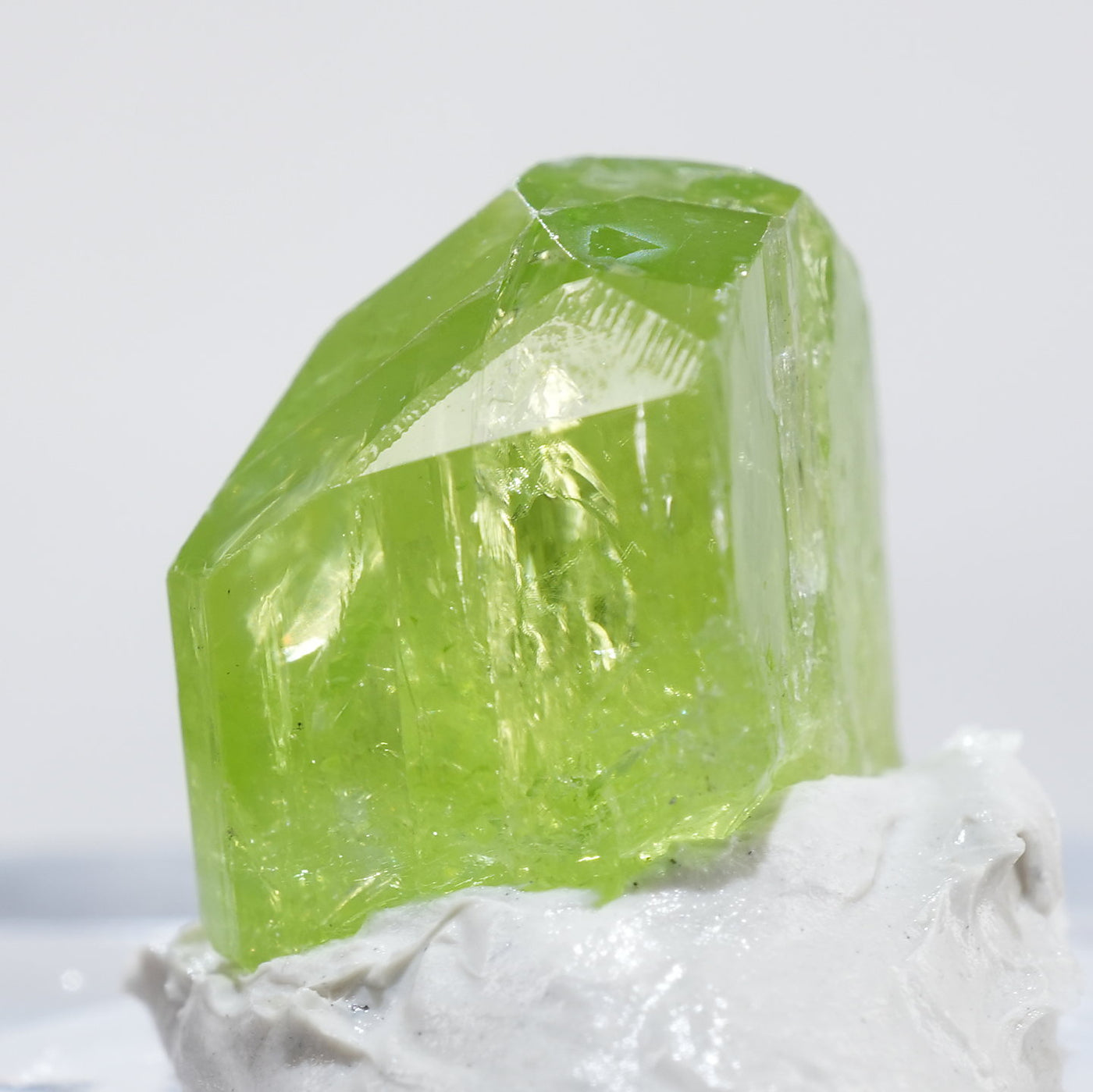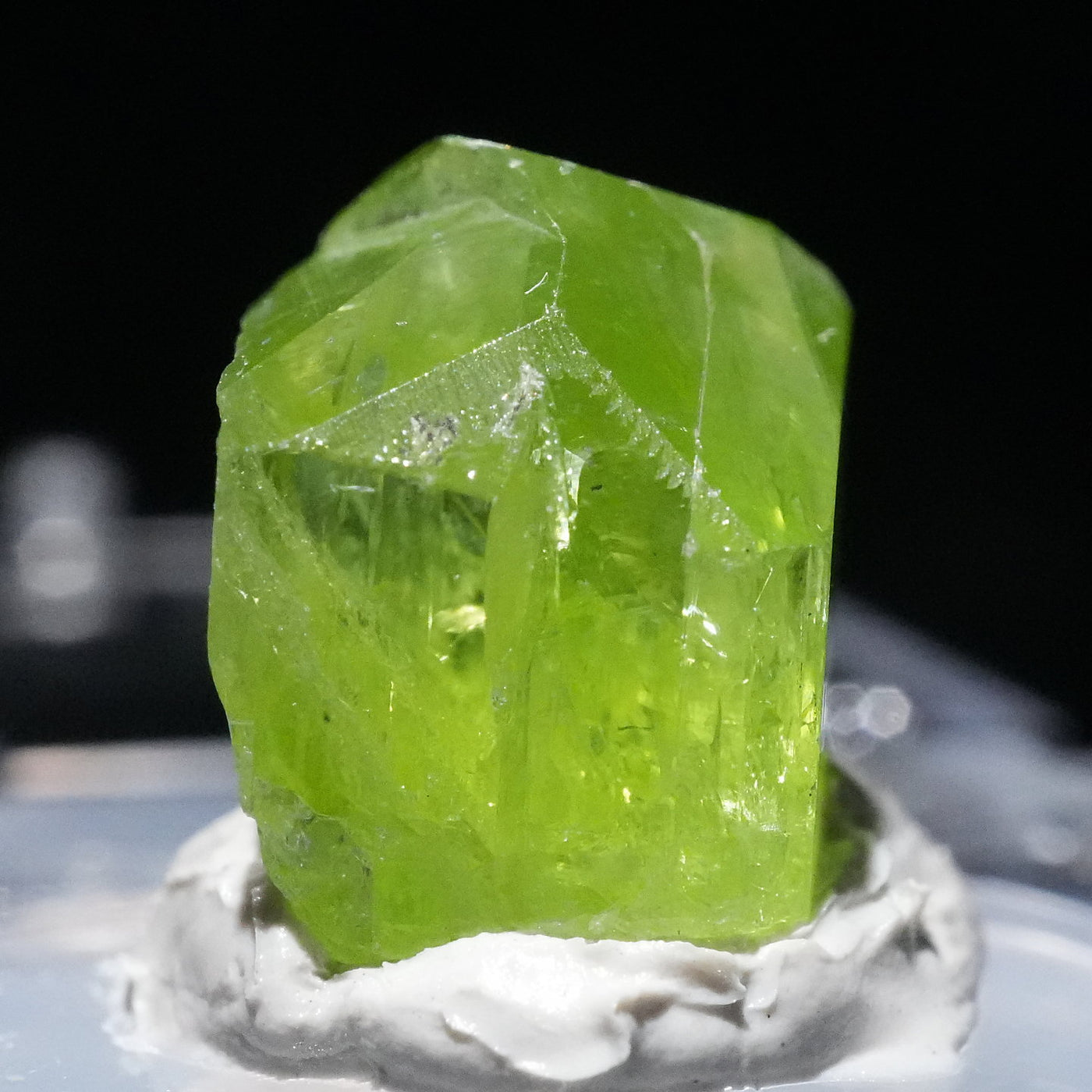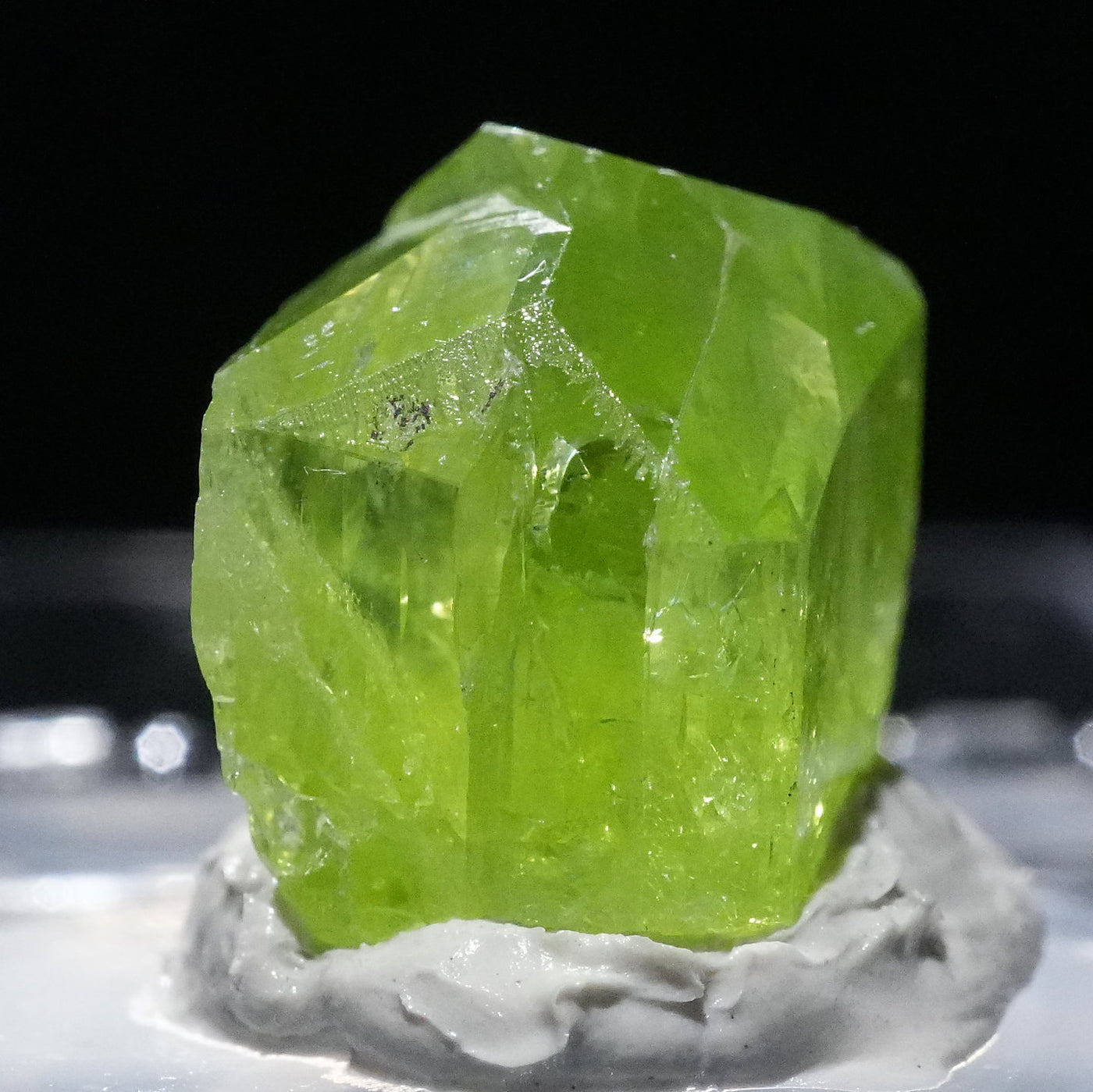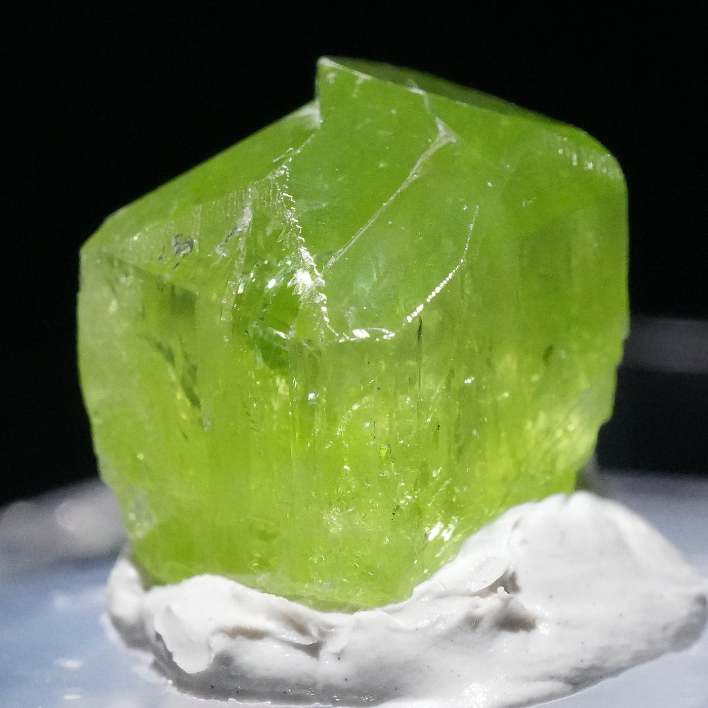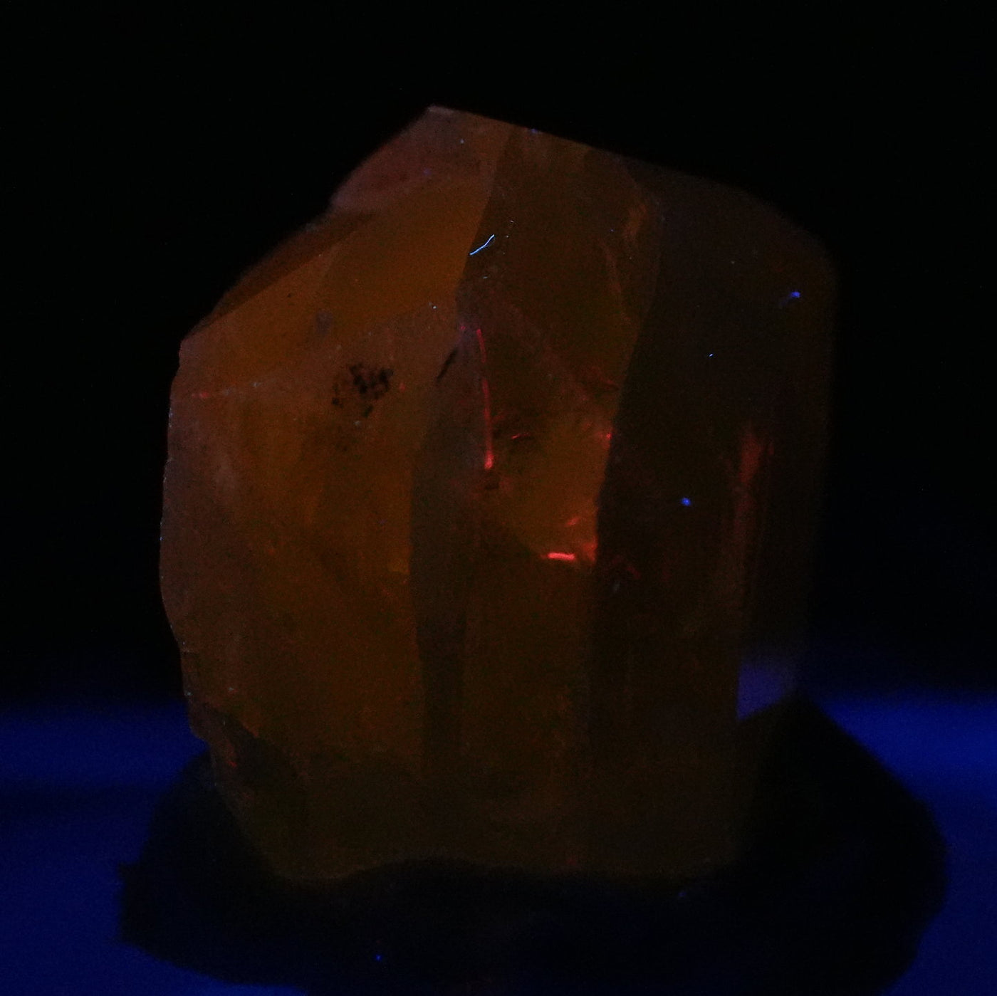 透明感のある鮮やかな黄緑色が特徴です。紫外線ライトを当てるとオレンジ色に蛍光します。※撮影に使用しているライトは、紫外線ライト365nm5wタイプです。
