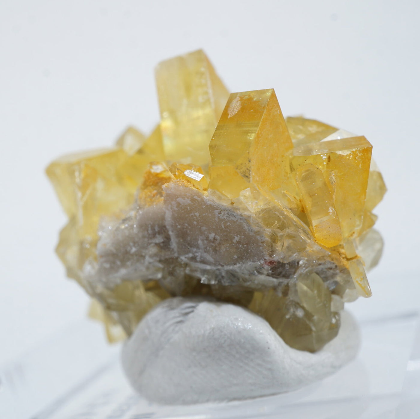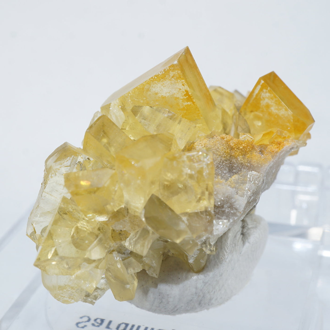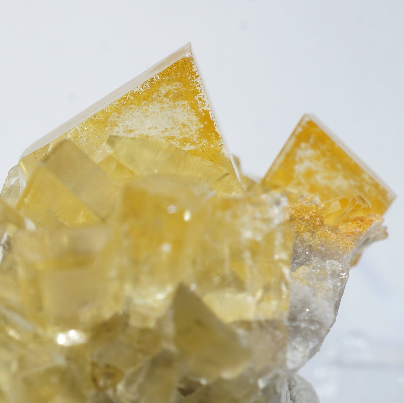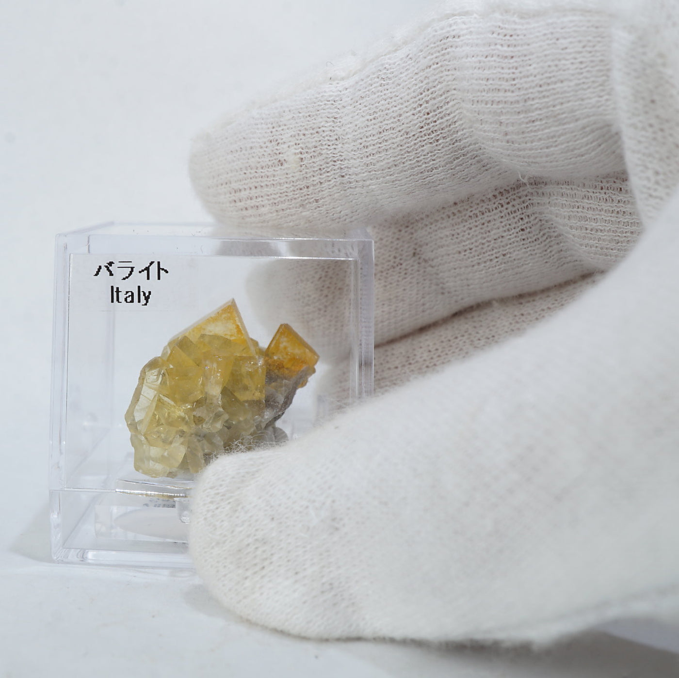照りと透明感のあるイエローの結晶です。立体感豊かな姿が特徴です。