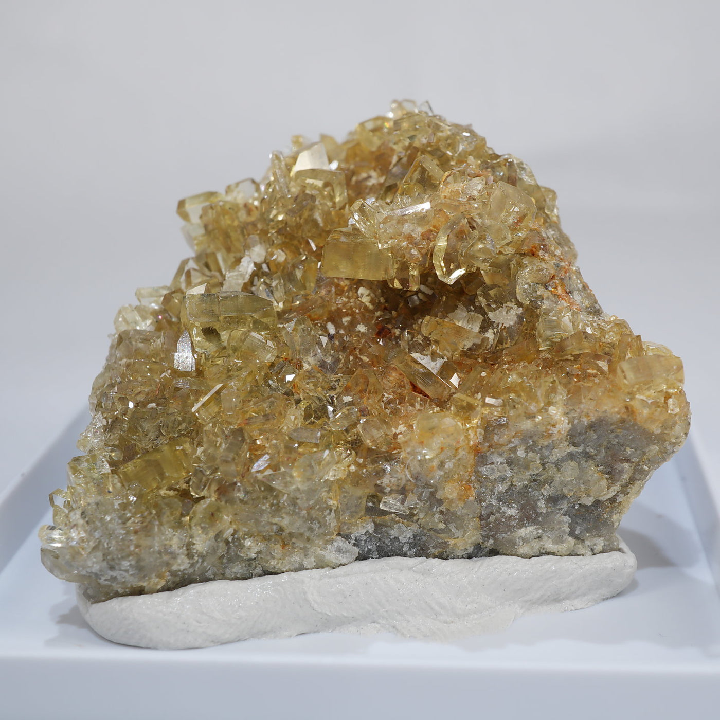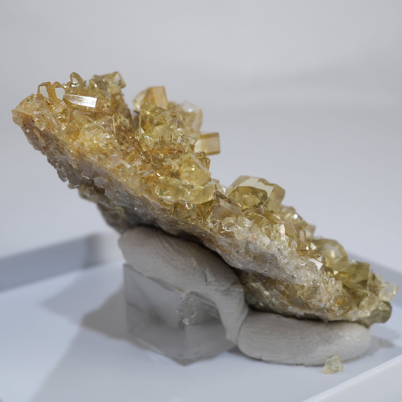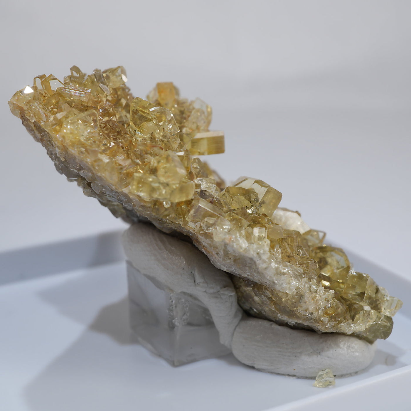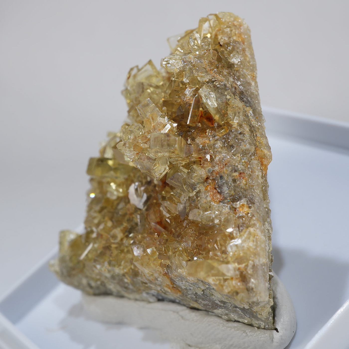 照りと透明感のある黄金色の結晶です。立体感豊かな姿が特徴です。