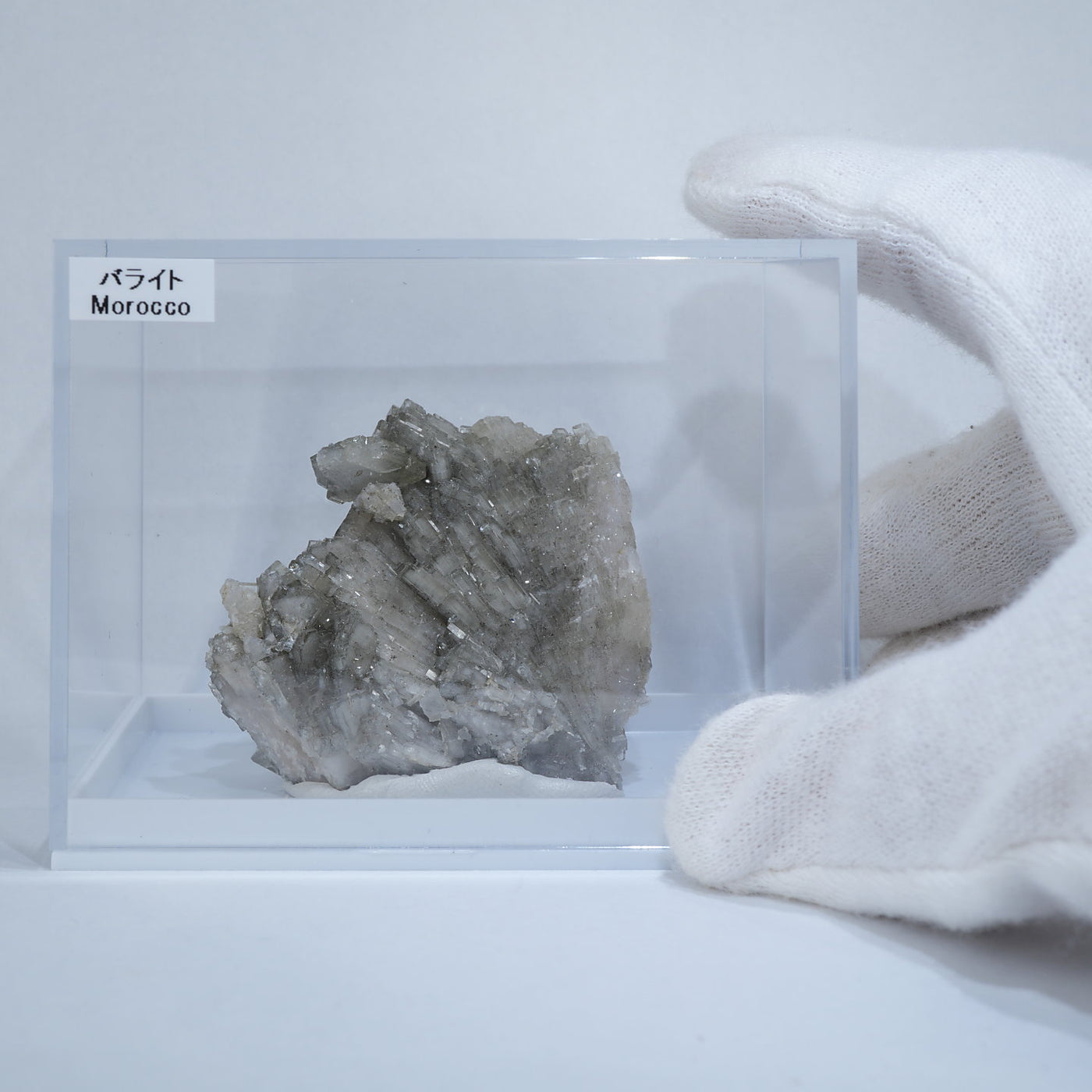 モロッコ産のバライト(重晶石) です。クールなシルバーグレーの色合いが特徴です。透明感があり、照りが美しく、きらきらとした表面が魅力です。【産地】Taouz, Er-Rissani Cercle, Drâa-Tafilalet Region, Morocco【サイズ】約50mm×45mm×26mm【ご注意】ライトを当てて撮影しております、またご覧になるモニター環境によっても差があり、色合いの違いを感じられる事が有ります。 商品は天然ゆえ写真では確認できない細かな傷や凹み等がある場合もございます。イメージの違いに関しての返品は受付出来かねますのでご了承ください。【その他】価格は税込表示です、送料は全国一律全て無料です。宅配便またはポスト投函便(ヤマト運輸ネコポス)にて配送いたします。発送方法の指定はできません。