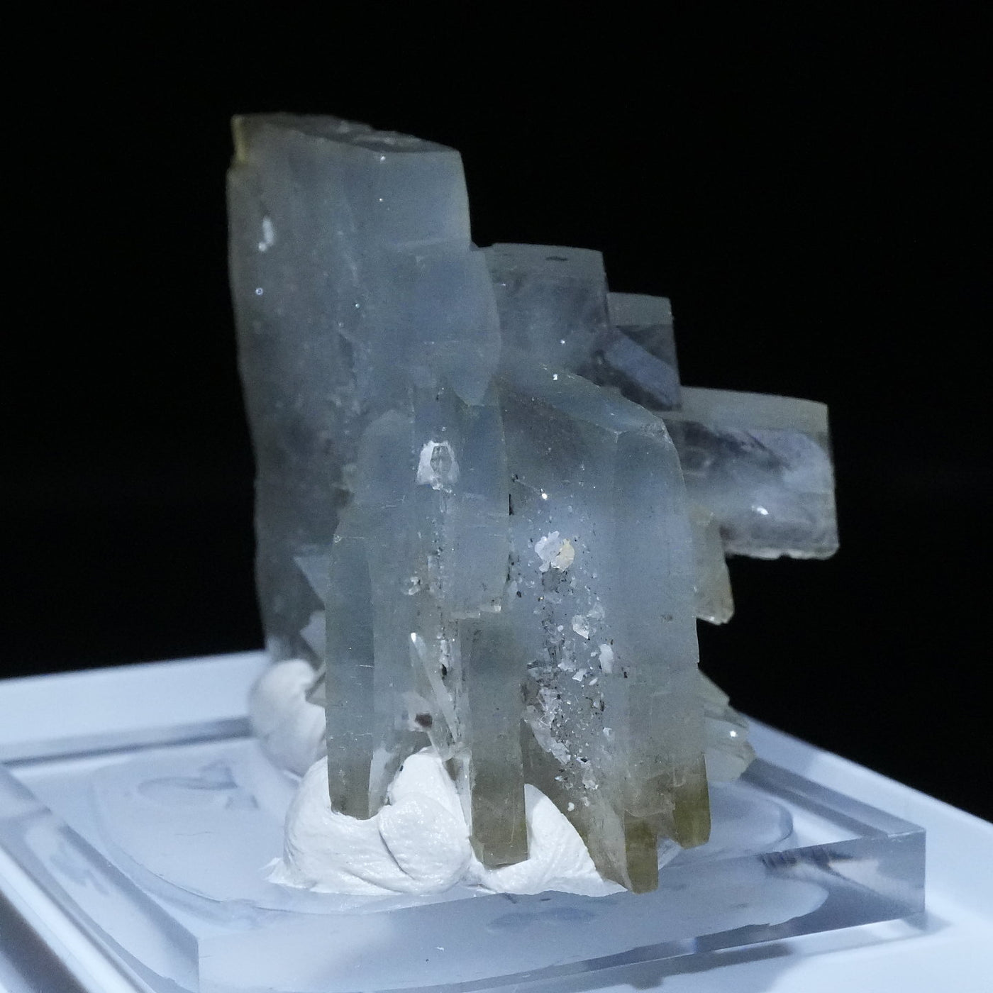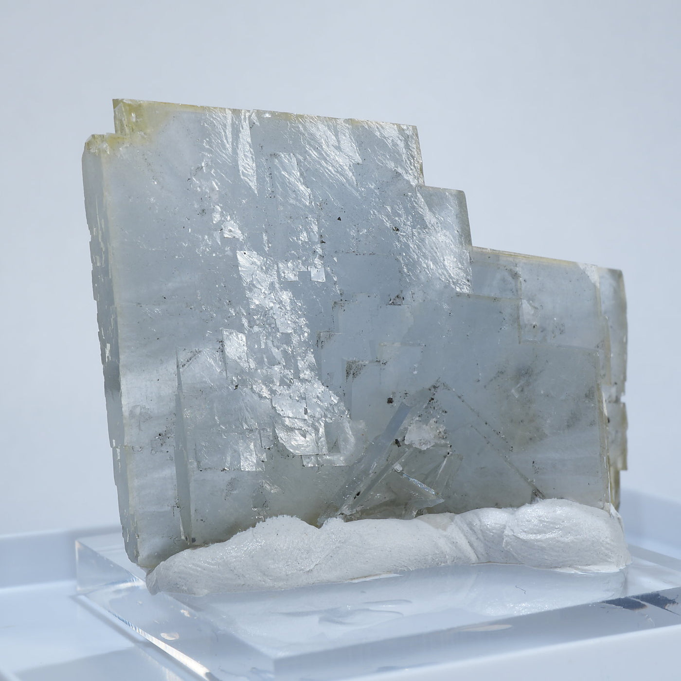 照り照りの表面、淡い水色とイエローの色合い、そして立体感豊かな結晶が魅力です。