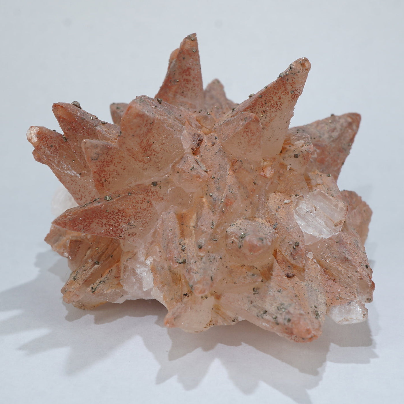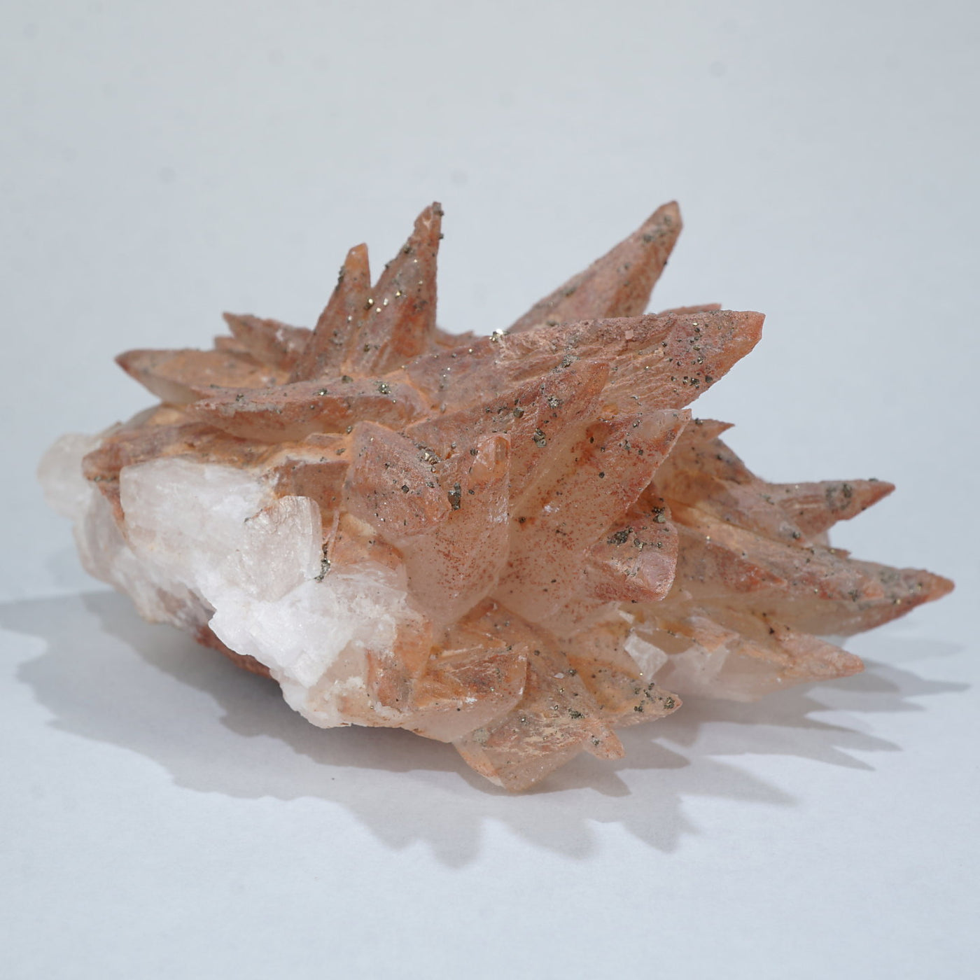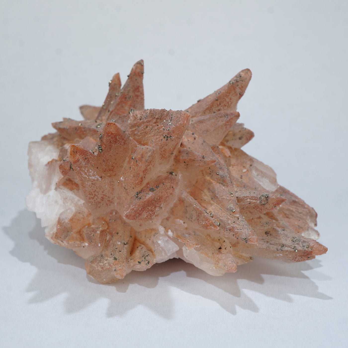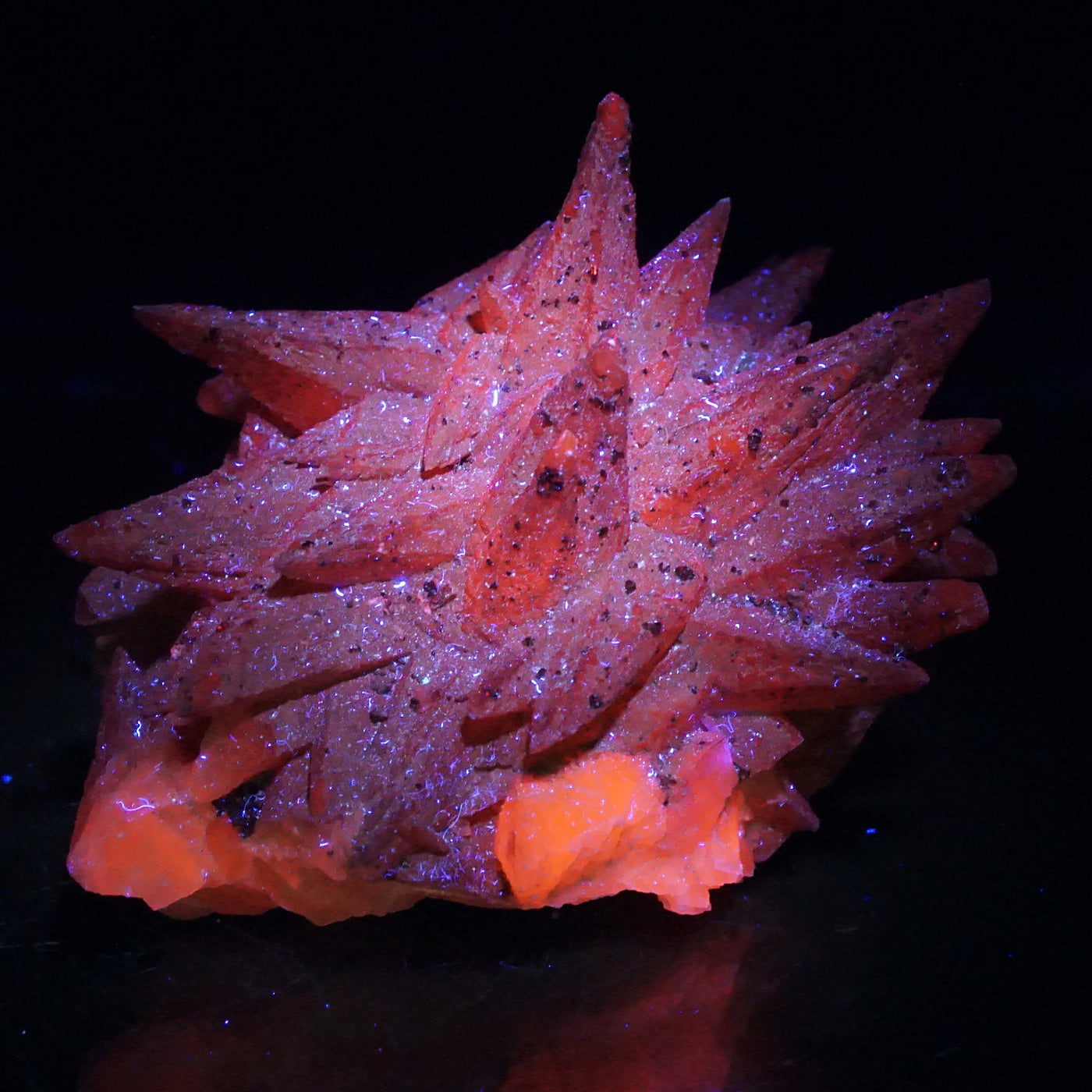 チェコ産 カルサイト・パイライトです。とげとげが目を引きます。表面がサーモンピンク色のカルサイトにパイライトが共生しています。紫外線を当てると蛍光します。※撮影に使用しているライトは、紫外線ライト365nm5wタイプです。【産地】Pribram District, Central Bohemian Region, Czech Republic【サイズ】約77mm×56mm×39mm【ご注意】ライトを当てて撮影しております、またご覧になるモニター環境によっても差があり、色合いの違いを感じられる事が有ります。 商品は天然ゆえ写真では確認できない細かな傷や凹み等がある場合もございます。イメージの違いに関しての返品は受付出来かねますのでご了承ください。【その他】価格は税込表示です、送料は全国一律全て無料です。宅配便またはポスト投函便(ヤマト運輸ネコポス)にて配送いたします。発送方法の指定はできません。