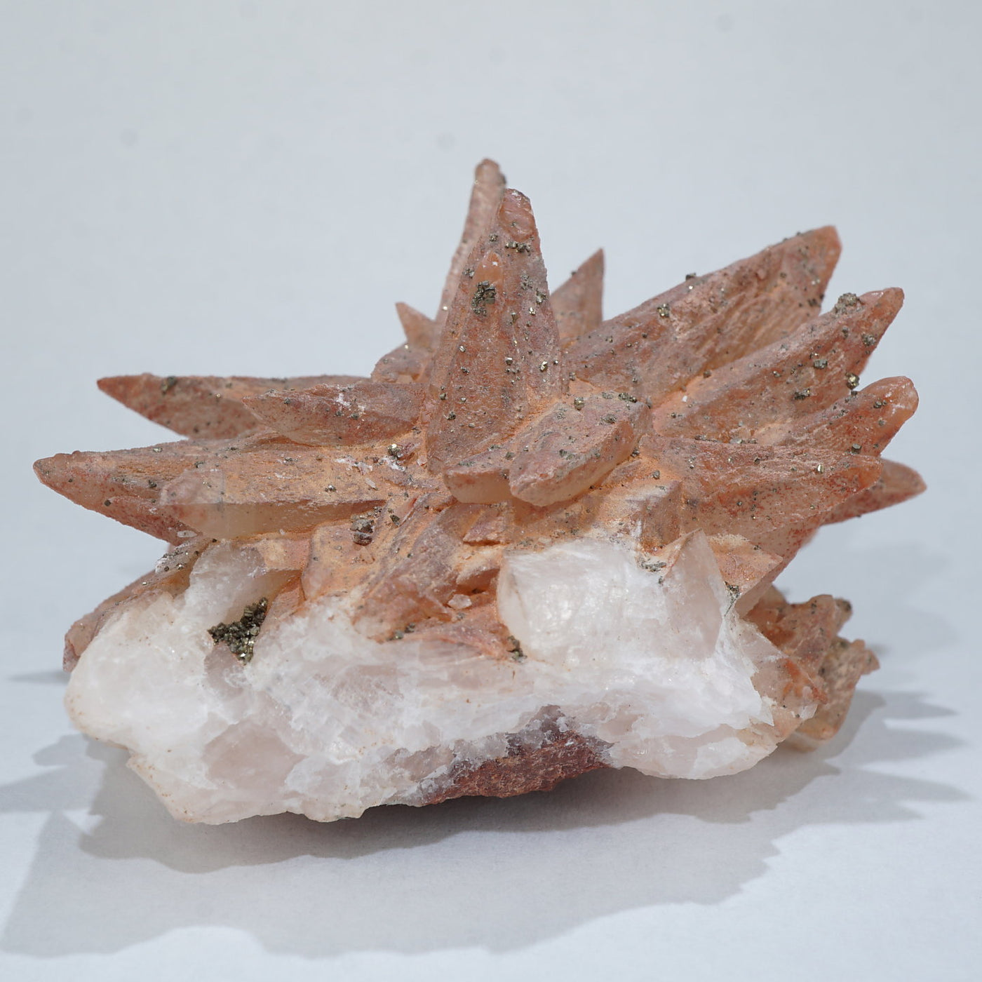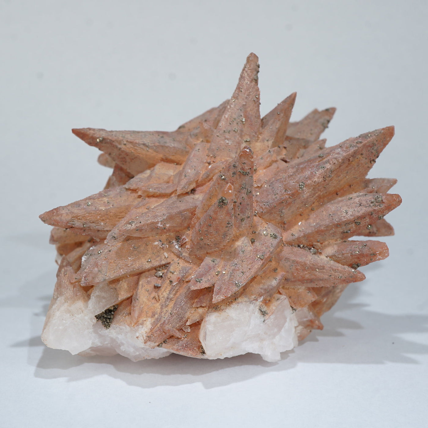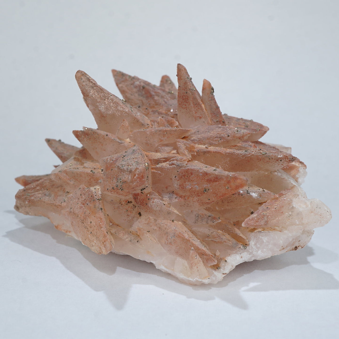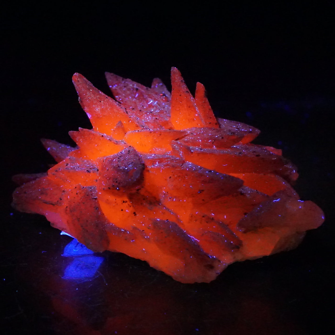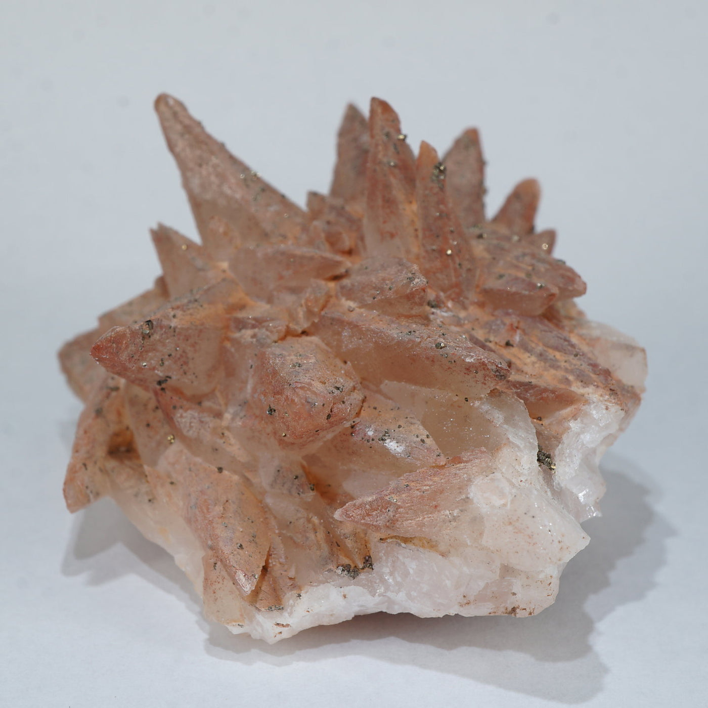 チェコ産 カルサイト・パイライトです。とげとげが目を引きます。表面がサーモンピンク色のカルサイトにパイライトが共生しています。紫外線を当てると蛍光します。※撮影に使用しているライトは、紫外線ライト365nm5wタイプです。【産地】Pribram District, Central Bohemian Region, Czech Republic【サイズ】約77mm×56mm×39mm【ご注意】ライトを当てて撮影しております、またご覧になるモニター環境によっても差があり、色合いの違いを感じられる事が有ります。 商品は天然ゆえ写真では確認できない細かな傷や凹み等がある場合もございます。イメージの違いに関しての返品は受付出来かねますのでご了承ください。【その他】価格は税込表示です、送料は全国一律全て無料です。宅配便またはポスト投函便(ヤマト運輸ネコポス)にて配送いたします。発送方法の指定はできません。