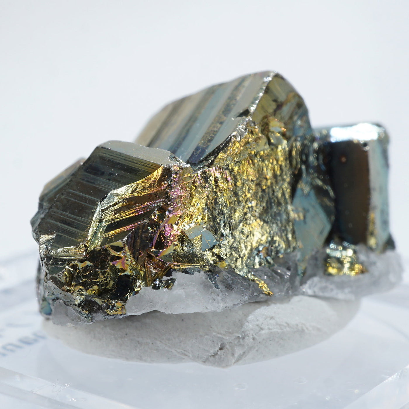 インドネシア産 カラーパイライト (黄鉄鉱)です。メタリックな光沢を放つ発色の美しいパイライトです。まさに大自然が生み出すアートです。【産地】Sekadau, Kalimantan, Indonesia【サイズ】約26mm×27mm×14mm【ご注意】ライトを当てて撮影しております、またご覧になるモニター環境によっても差があり、色合いの違いを感じられる事が有ります。 商品は天然ゆえ写真では確認できない細かな傷や凹み等がある場合もございます。イメージの違いに関しての返品は受付出来かねますのでご了承ください。【その他】価格は税込表示です、送料は全国一律全て無料です。宅配便またはポスト投函便(ヤマト運輸ネコポス)にて配送いたします。発送方法の指定はできません。