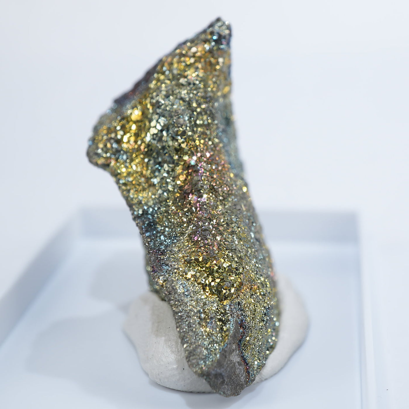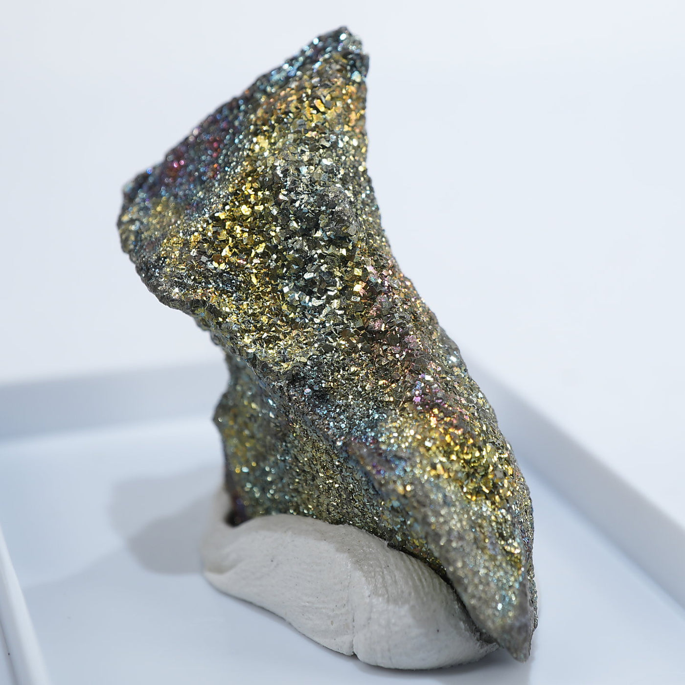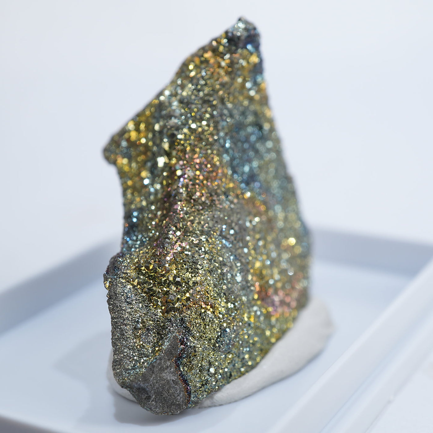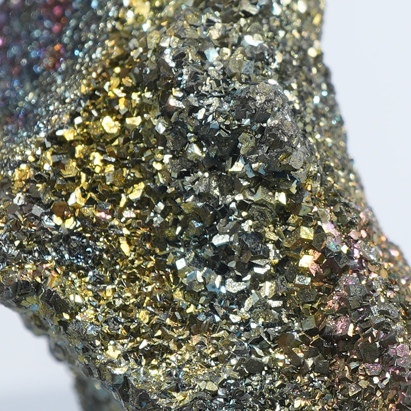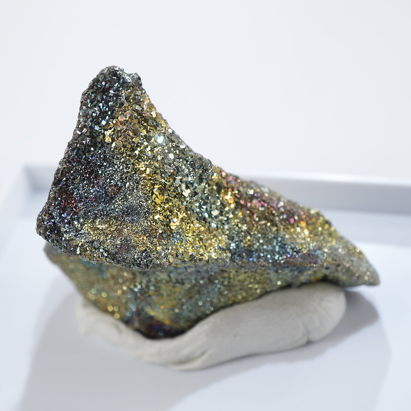 ロシア産のレインボーパイライト (黄鉄鉱)です。発色の美しいパイライトが母岩に広がります。まさに大自然が生み出すアートです。【産地】Ulyanovsk, Ulyanovsk Oblast, Russia【サイズ】約35mm×32mm×15mm【ご注意】ライトを当てて撮影しております、またご覧になるモニター環境によっても差があり、色合いの違いを感じられる事が有ります。 商品は天然ゆえ写真では確認できない細かな傷や凹み等がある場合もございます。イメージの違いに関しての返品は受付出来かねますのでご了承ください。【その他】価格は税込表示です、送料は全国一律全て無料です。宅配便またはポスト投函便(ヤマト運輸ネコポス)にて配送いたします。発送方法の指定はできません。