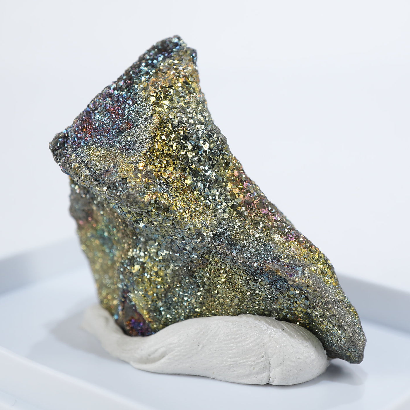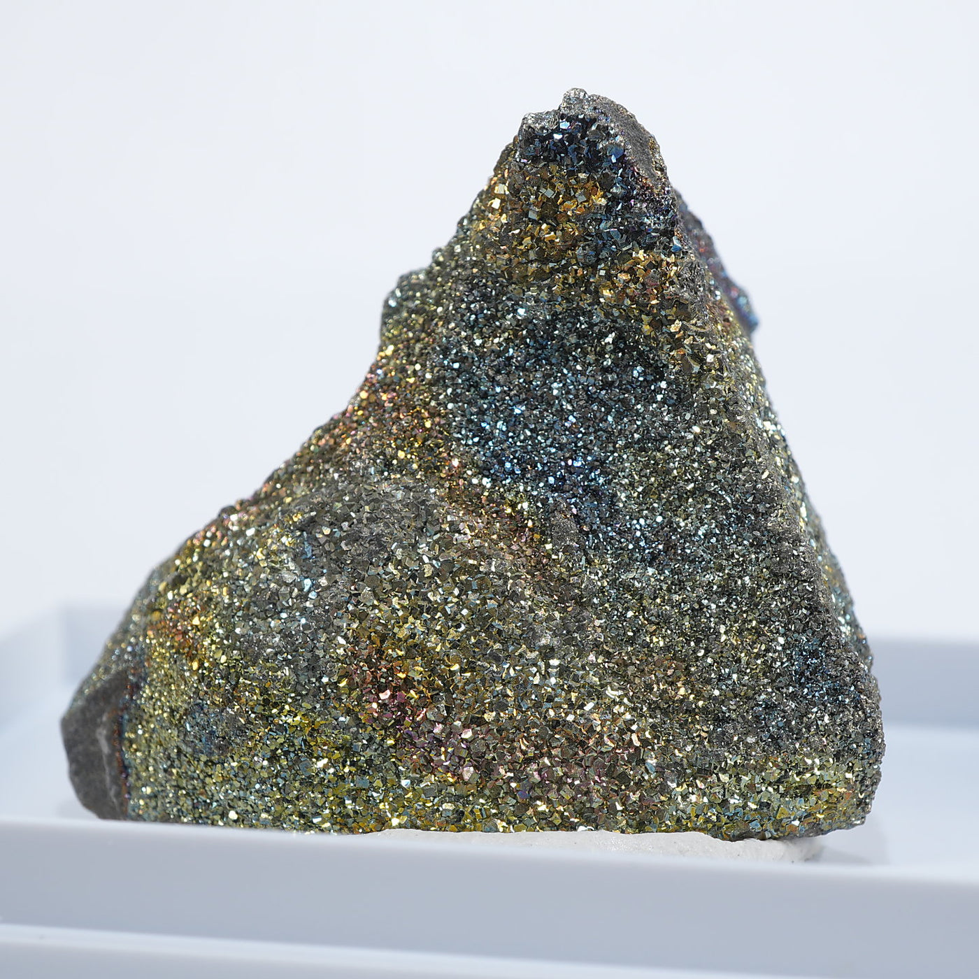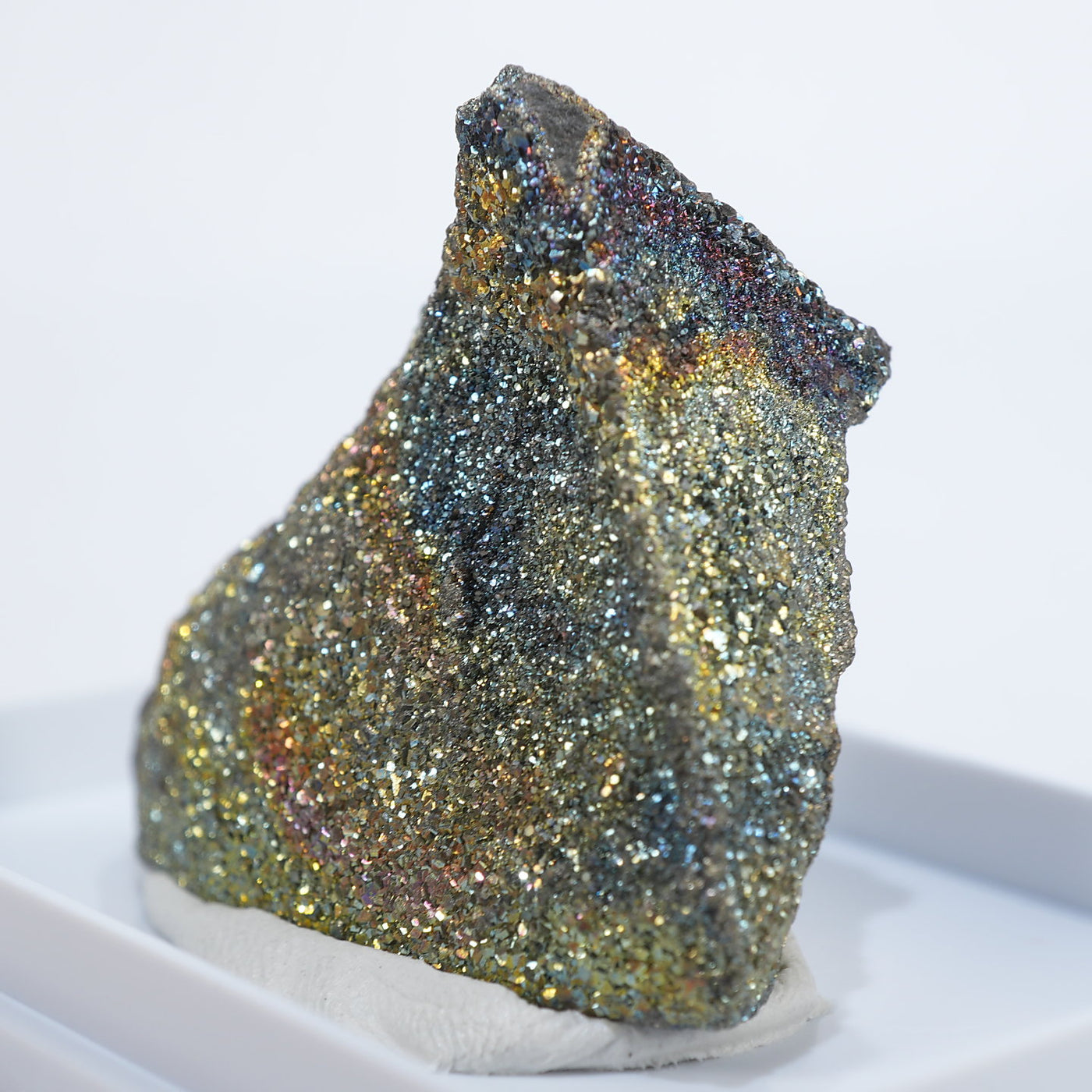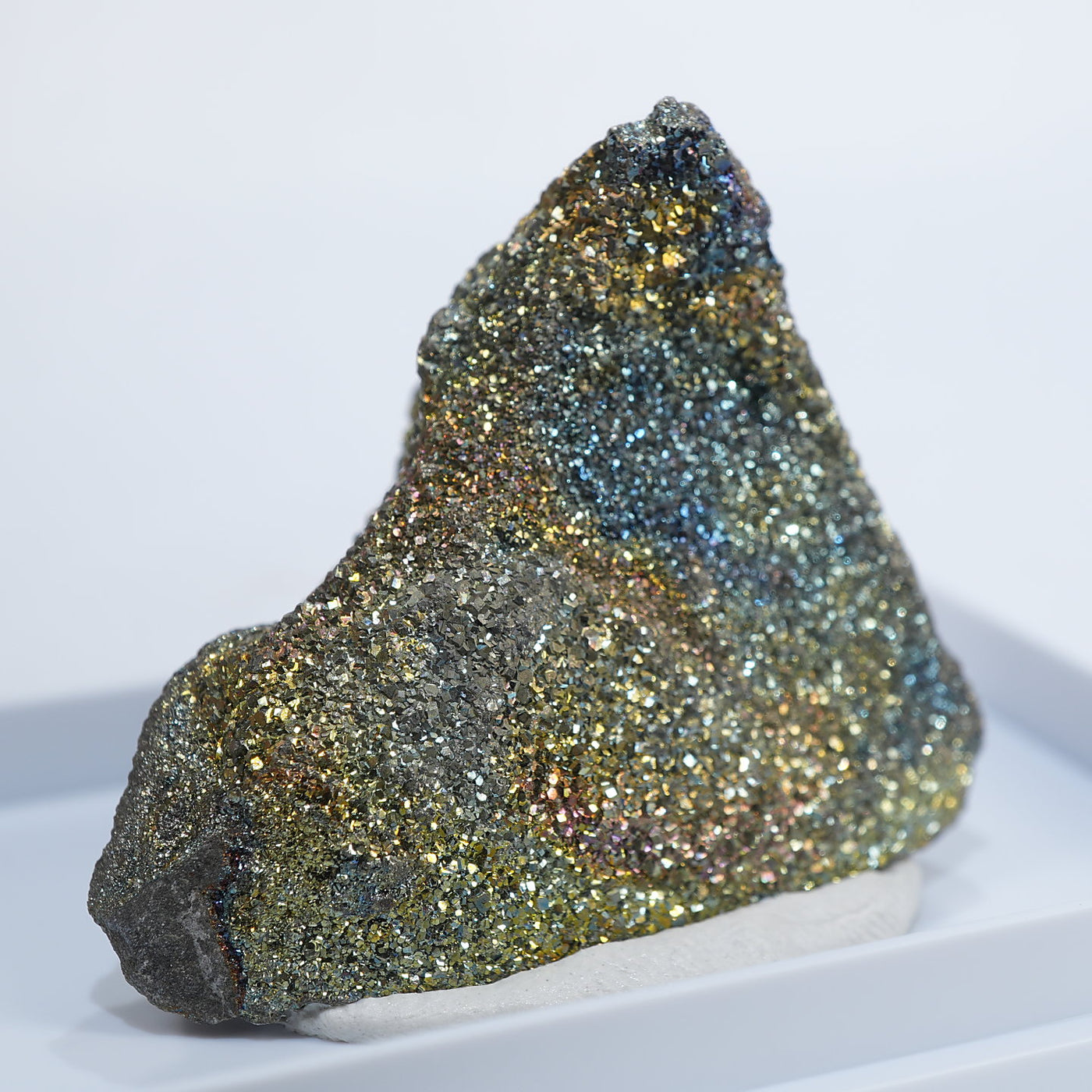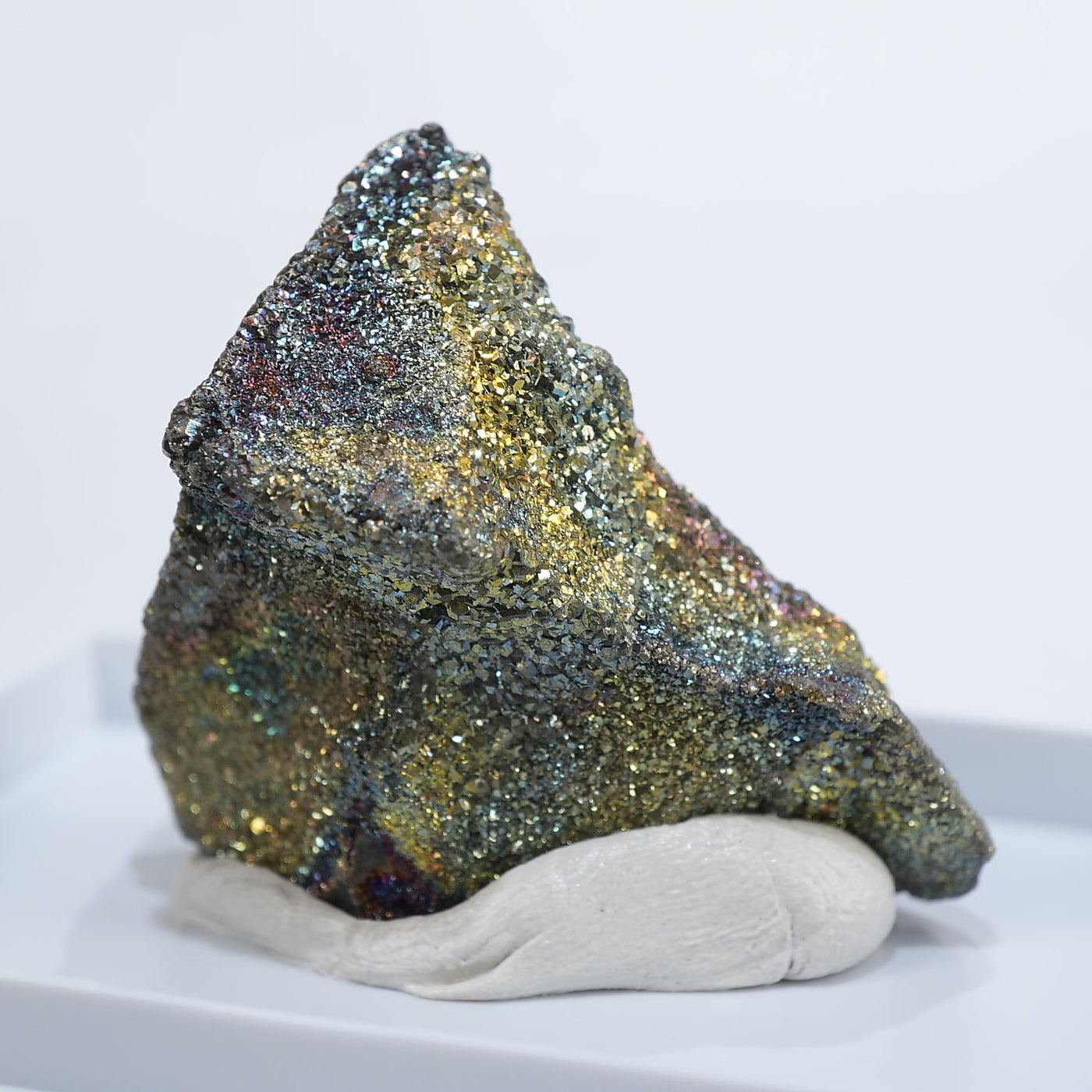 ロシア産のレインボーパイライト (黄鉄鉱)です。発色の美しいパイライトが母岩に広がります。まさに大自然が生み出すアートです。【産地】Ulyanovsk, Ulyanovsk Oblast, Russia【サイズ】約35mm×32mm×15mm【ご注意】ライトを当てて撮影しております、またご覧になるモニター環境によっても差があり、色合いの違いを感じられる事が有ります。 商品は天然ゆえ写真では確認できない細かな傷や凹み等がある場合もございます。イメージの違いに関しての返品は受付出来かねますのでご了承ください。【その他】価格は税込表示です、送料は全国一律全て無料です。宅配便またはポスト投函便(ヤマト運輸ネコポス)にて配送いたします。発送方法の指定はできません。