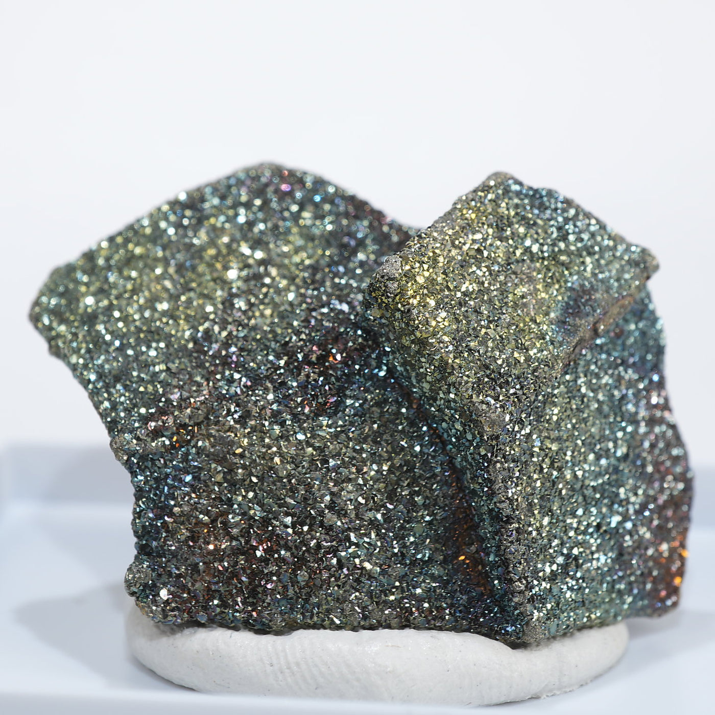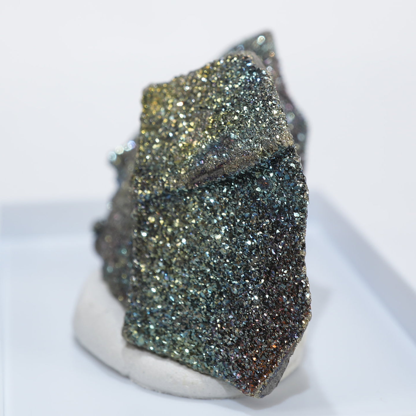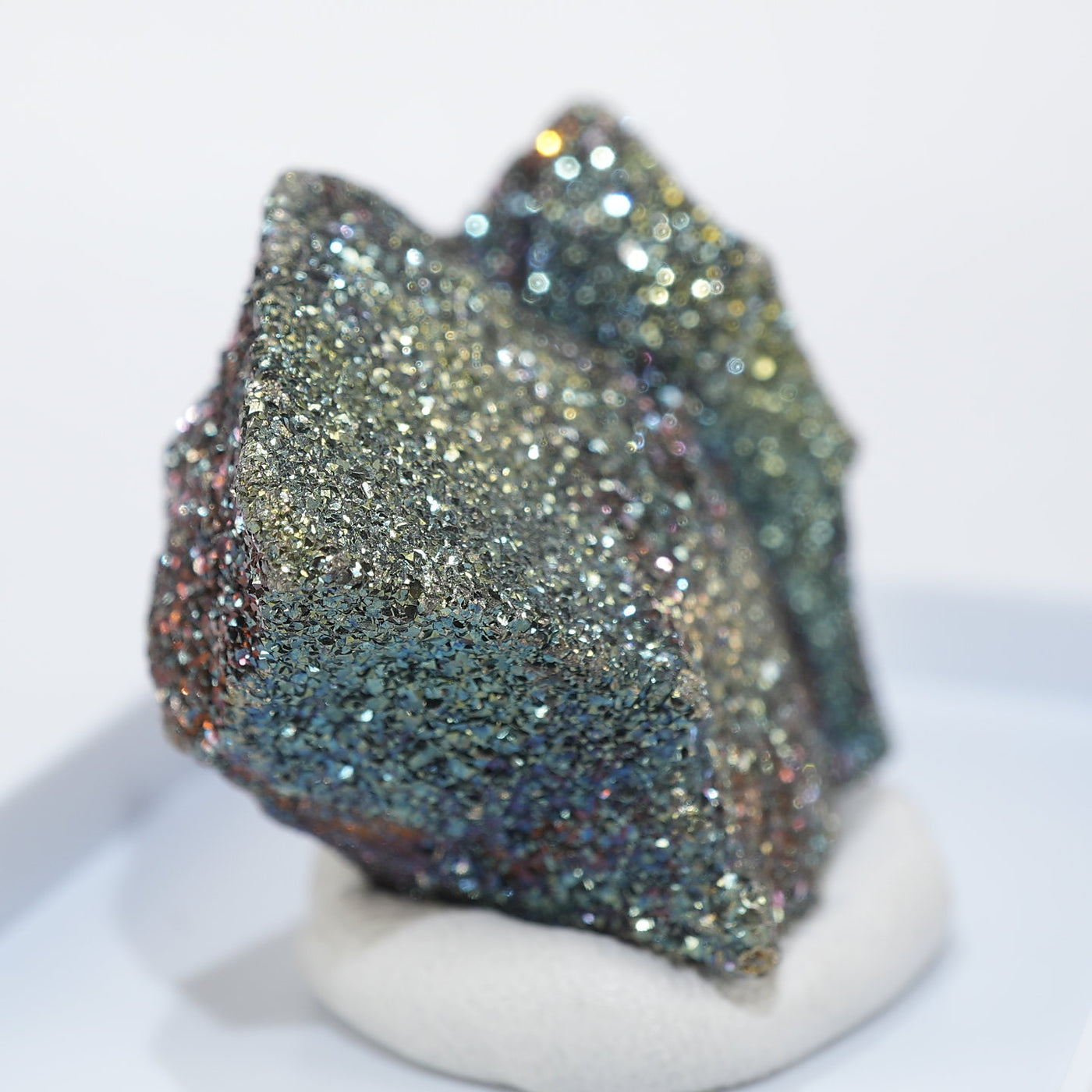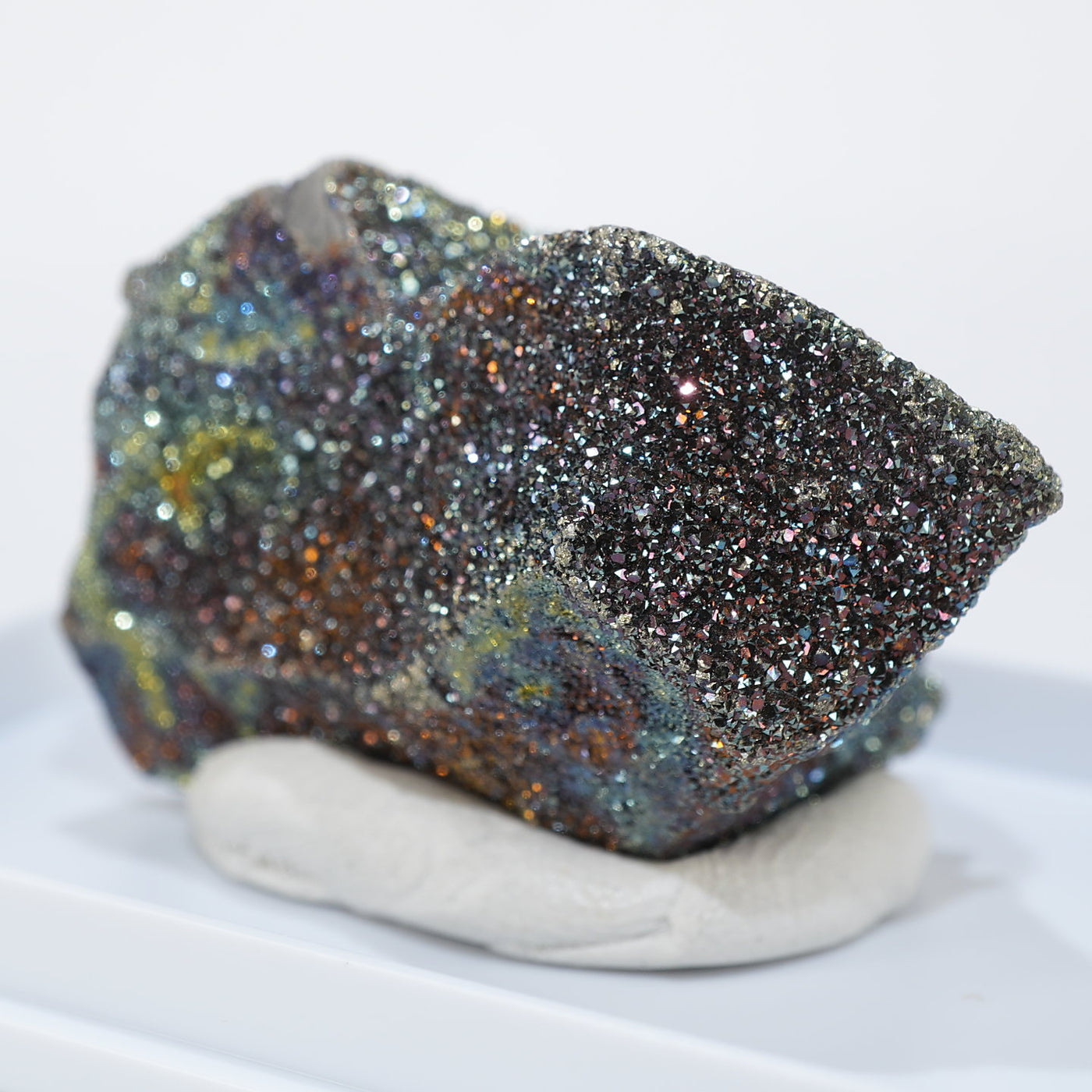 ロシア産のレインボーパイライト (黄鉄鉱)です。発色の美しいパイライトが母岩に広がります。まさに大自然が生み出すアートです。【産地】Ulyanovsk, Ulyanovsk Oblast, Russia【サイズ】約37mm×26mm×19mm【ご注意】ライトを当てて撮影しております、またご覧になるモニター環境によっても差があり、色合いの違いを感じられる事が有ります。 商品は天然ゆえ写真では確認できない細かな傷や凹み等がある場合もございます。イメージの違いに関しての返品は受付出来かねますのでご了承ください。【その他】価格は税込表示です、送料は全国一律全て無料です。宅配便またはポスト投函便(ヤマト運輸ネコポス)にて配送いたします。発送方法の指定はできません。