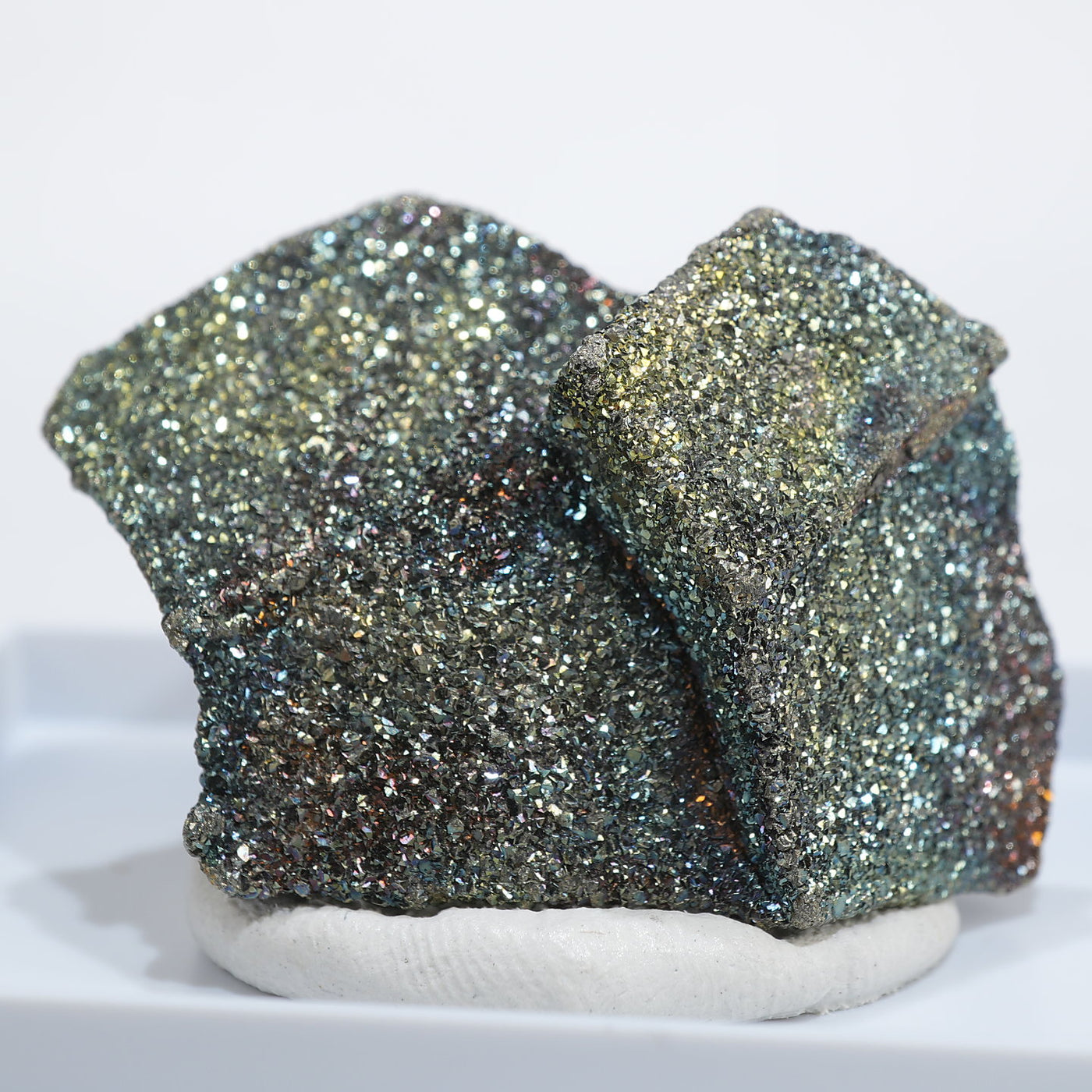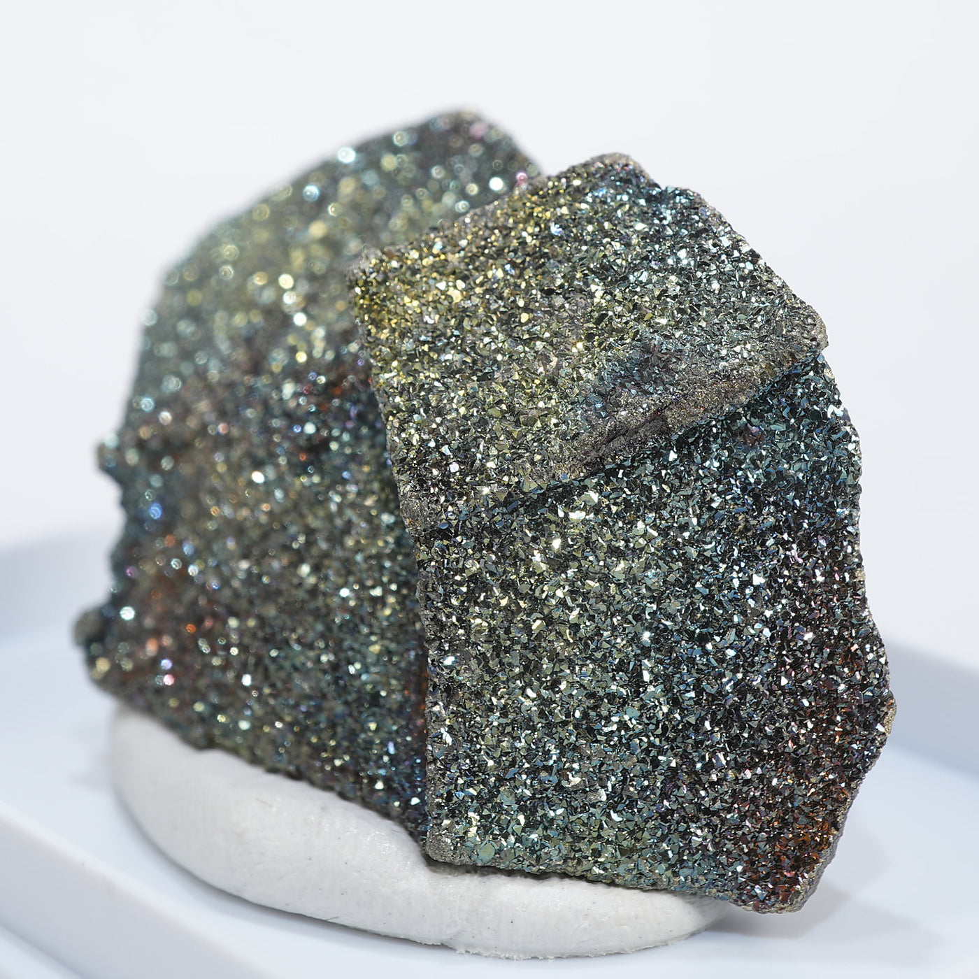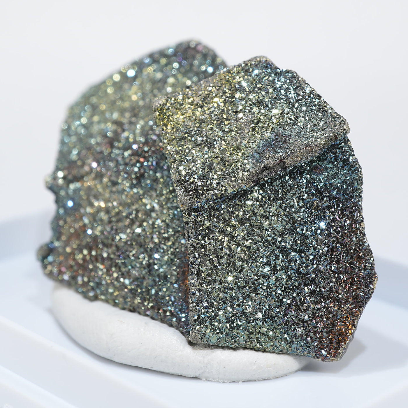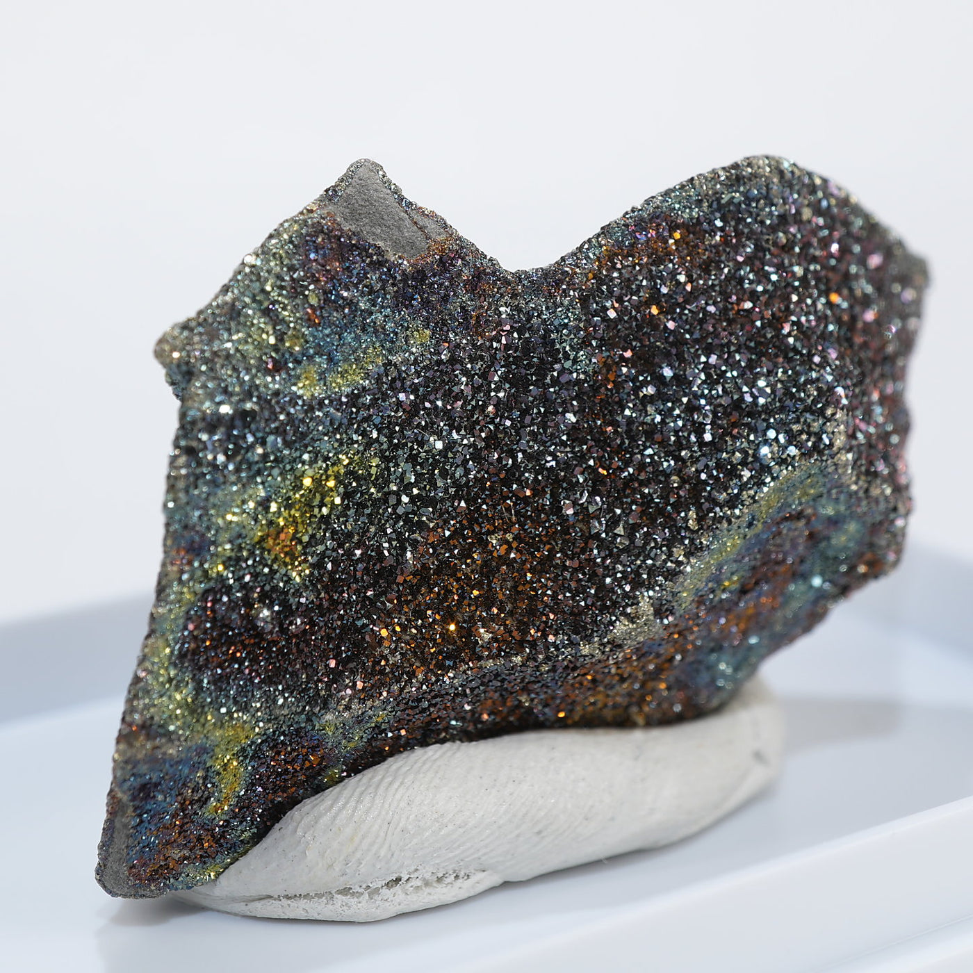 ロシア産のレインボーパイライト (黄鉄鉱)です。発色の美しいパイライトが母岩に広がります。まさに大自然が生み出すアートです。【産地】Ulyanovsk, Ulyanovsk Oblast, Russia【サイズ】約37mm×26mm×19mm【ご注意】ライトを当てて撮影しております、またご覧になるモニター環境によっても差があり、色合いの違いを感じられる事が有ります。 商品は天然ゆえ写真では確認できない細かな傷や凹み等がある場合もございます。イメージの違いに関しての返品は受付出来かねますのでご了承ください。【その他】価格は税込表示です、送料は全国一律全て無料です。宅配便またはポスト投函便(ヤマト運輸ネコポス)にて配送いたします。発送方法の指定はできません。