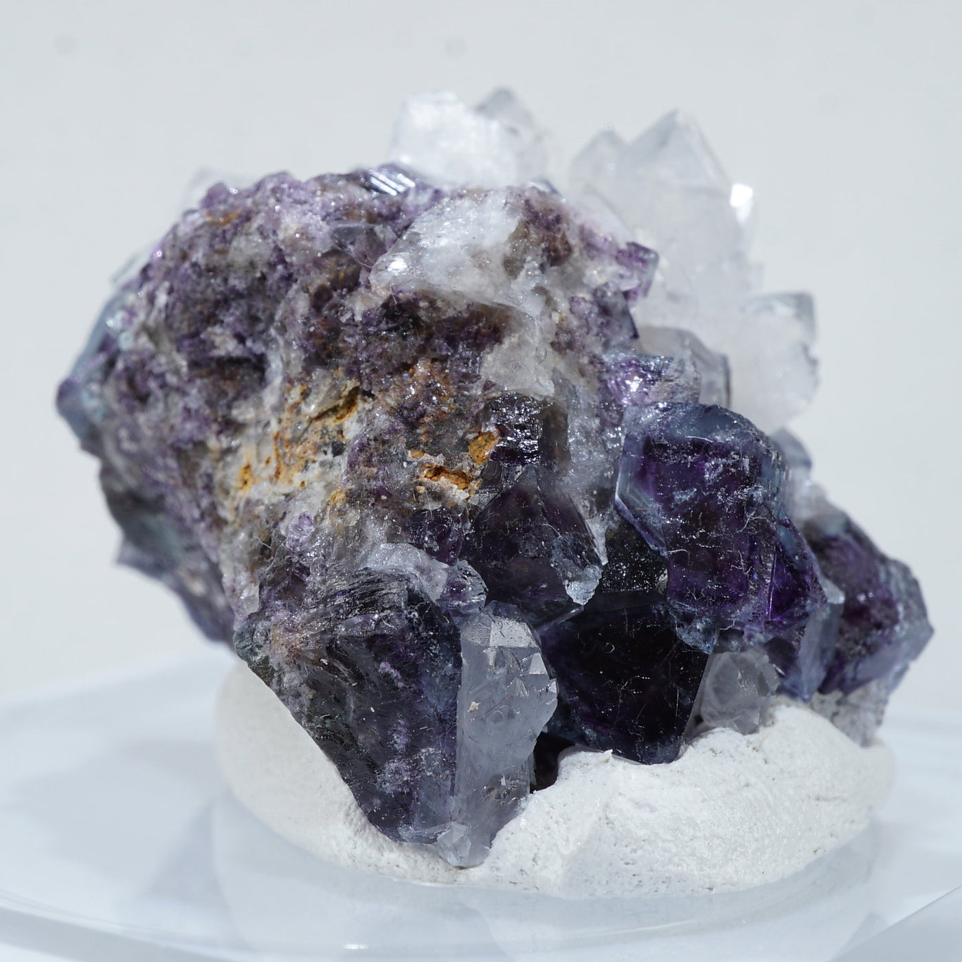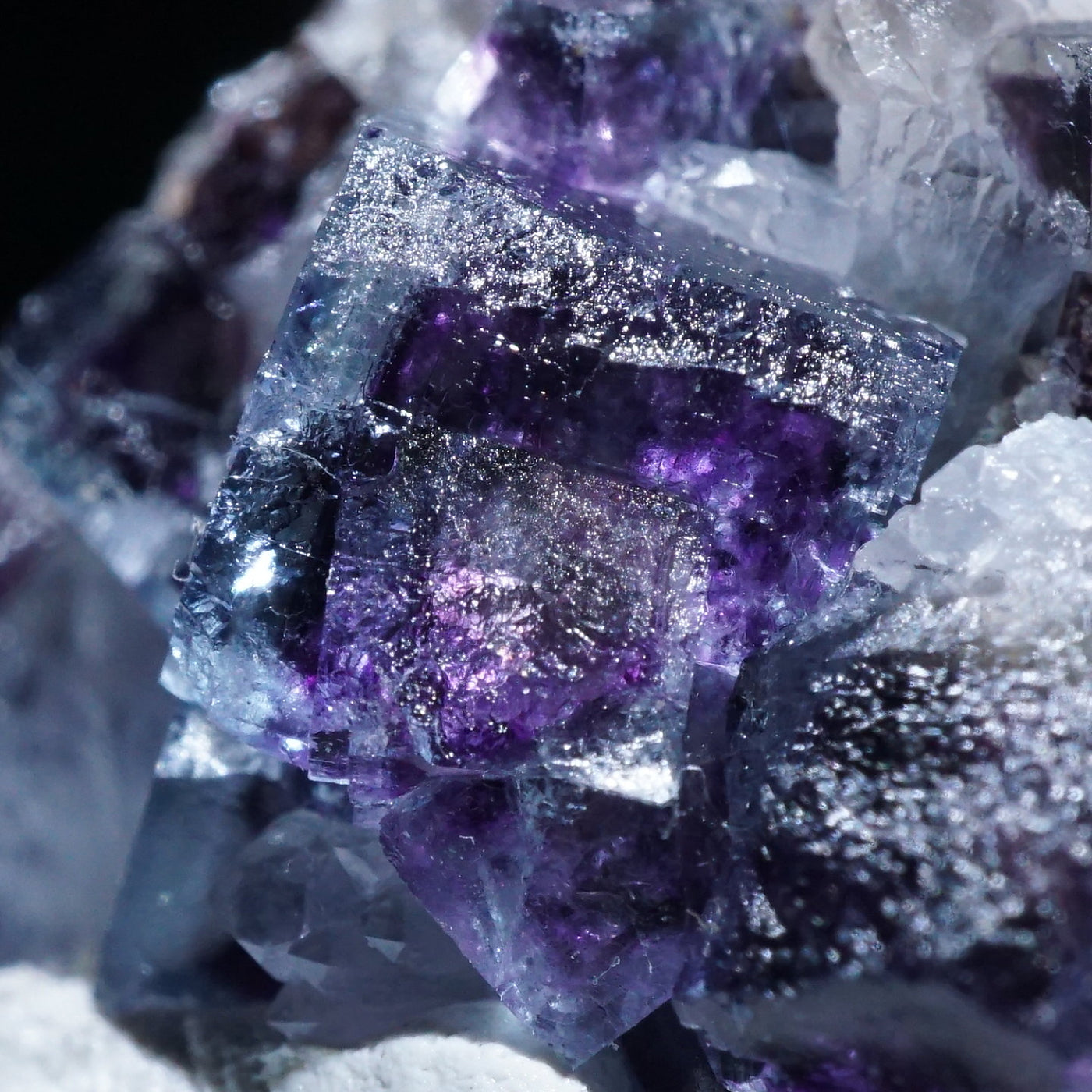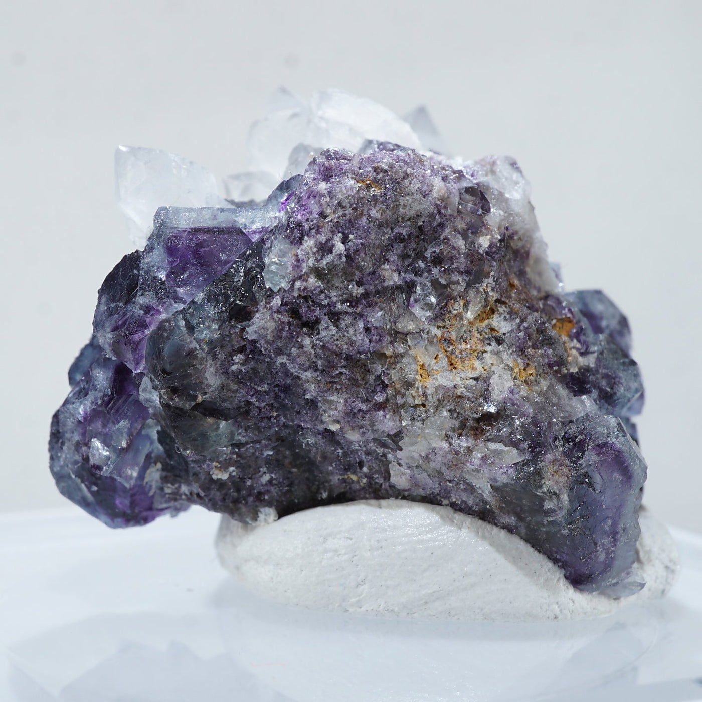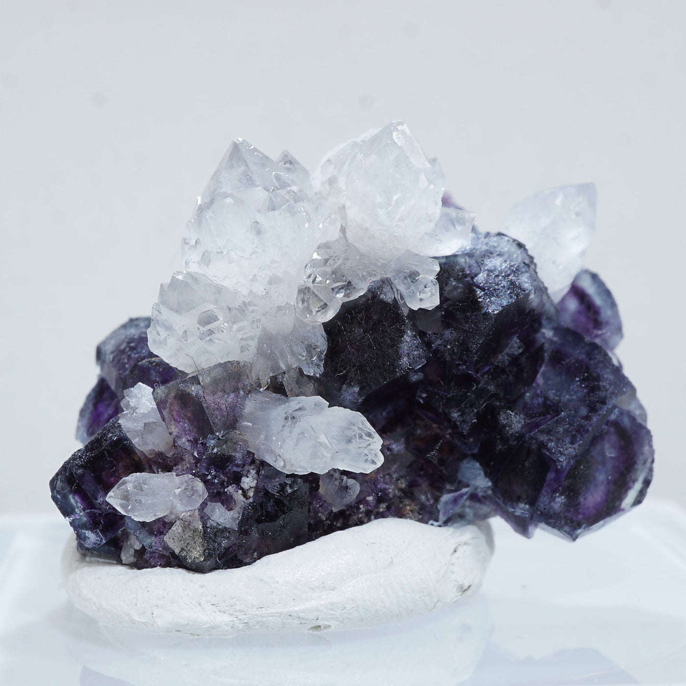 内側は濃い紫色、外側は淡い水色になっています。光を透過させると色のコントラストが際立ちます。紫外線ライトを当てると蛍光します。