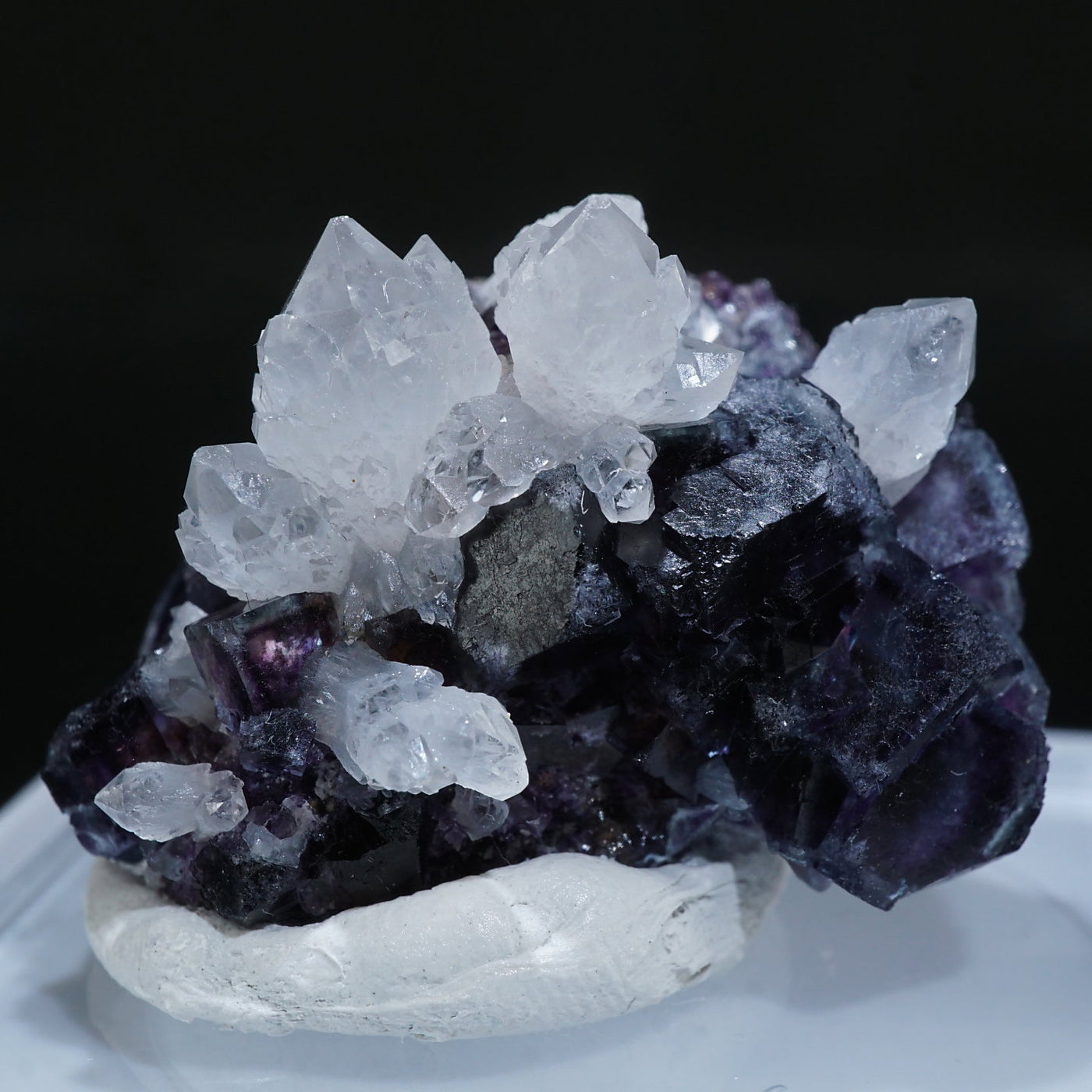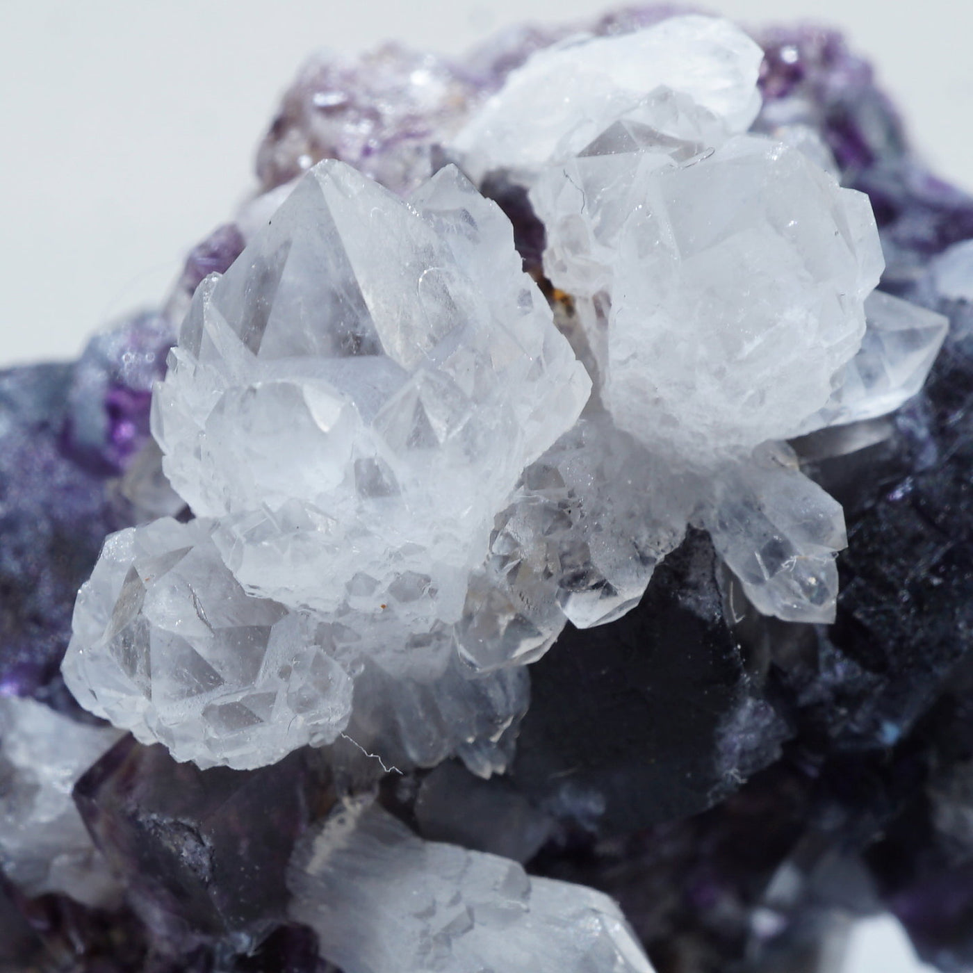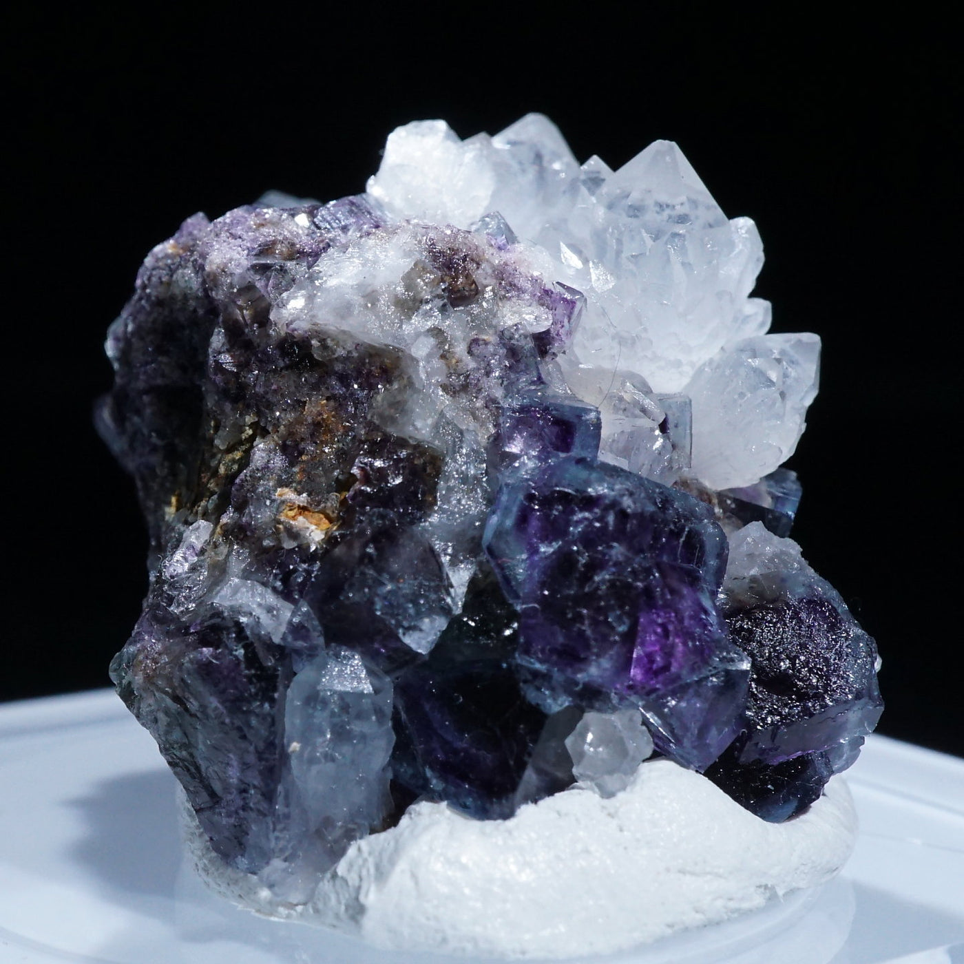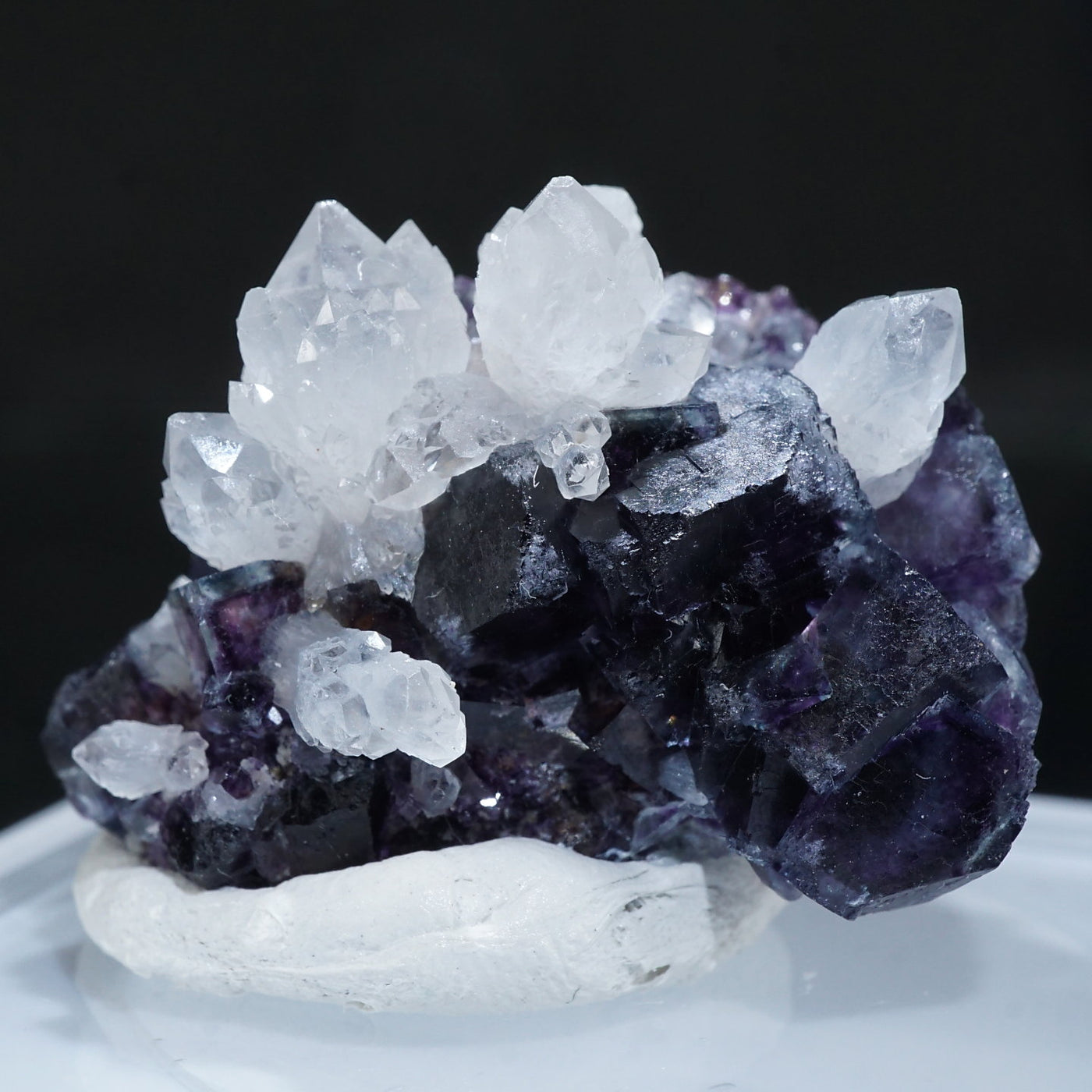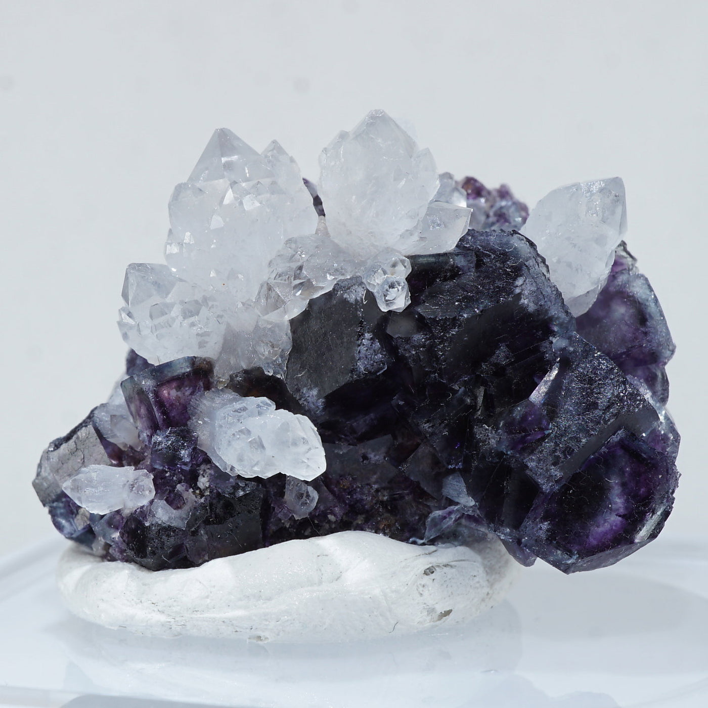 内側は濃い紫色、外側は淡い水色になっています。光を透過させると色のコントラストが際立ちます。紫外線ライトを当てると蛍光します。