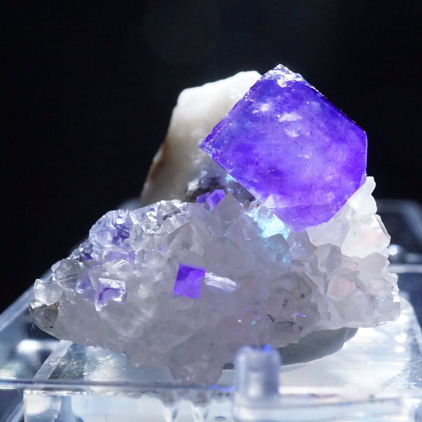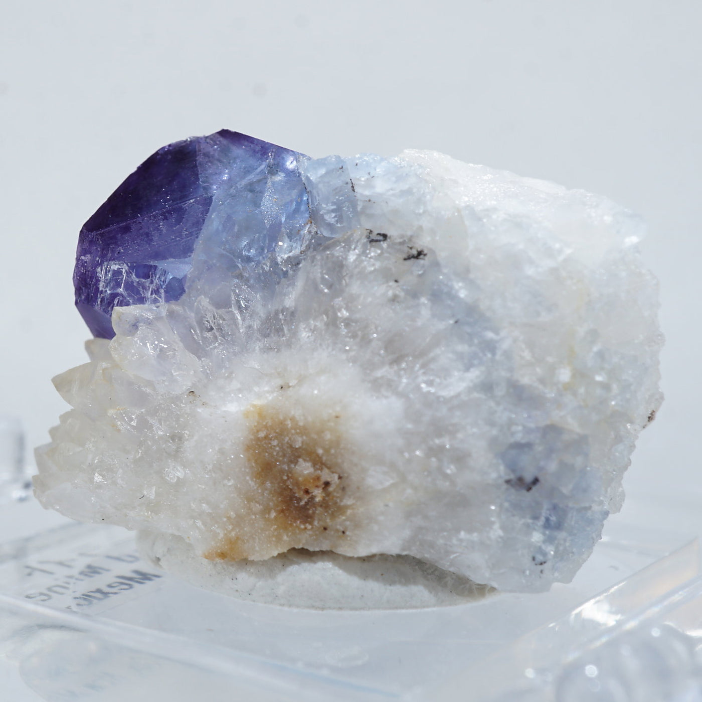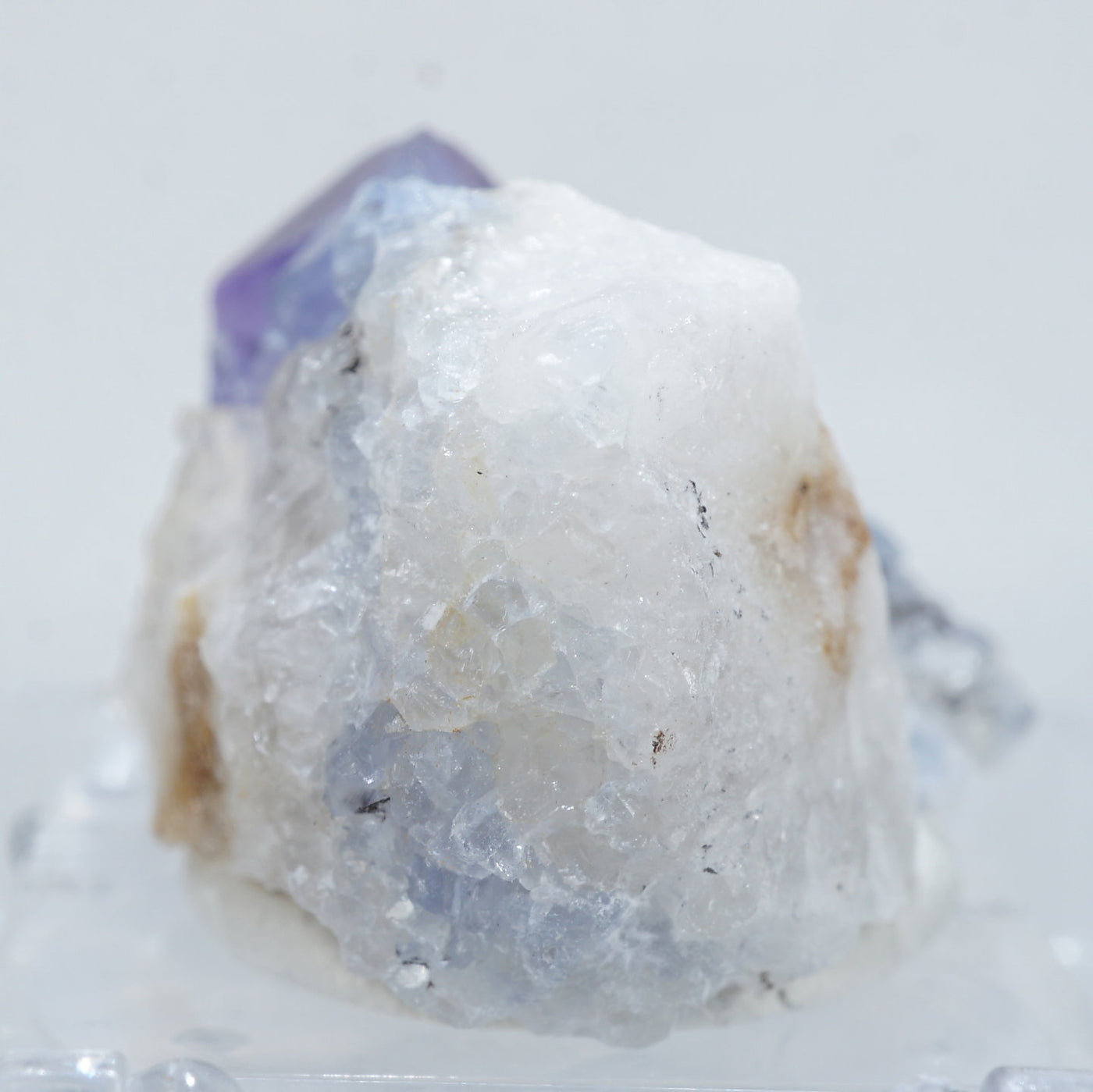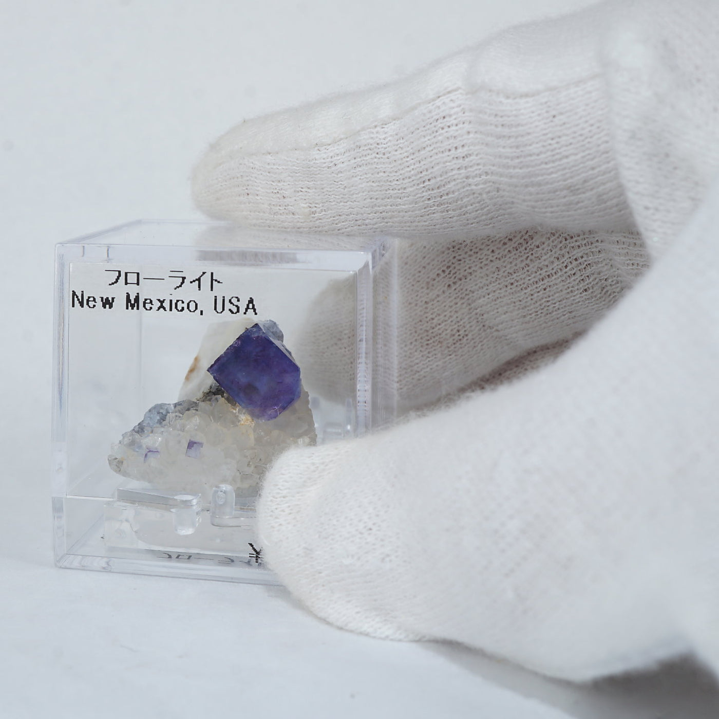 アメリカ・ニューメキシコ州産のフローライトです。淡い紫がかったブルーが綺麗です。フローライトは紫外線ライトを当てると蛍光します。※撮影に使用しているライトは、紫外線ライト365nm5wタイプです。【産地】Blanchard Mine, Socorro Co., New Mexico, USA