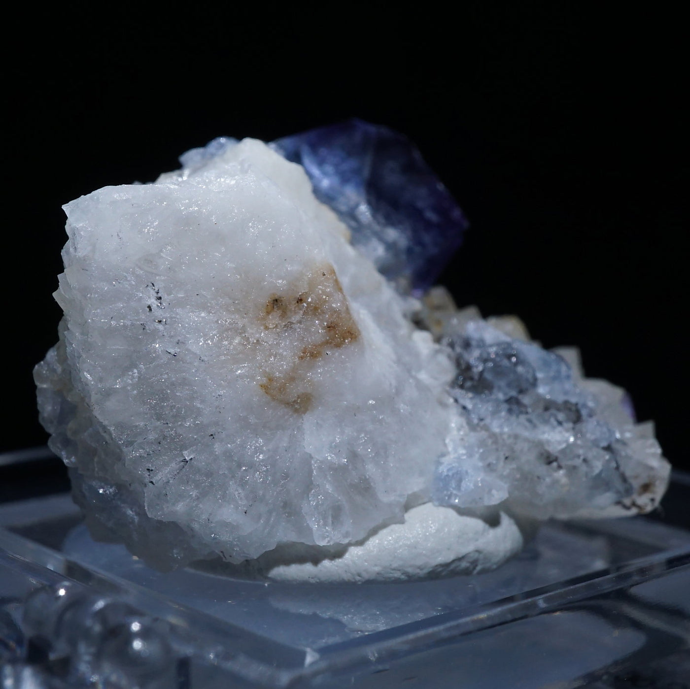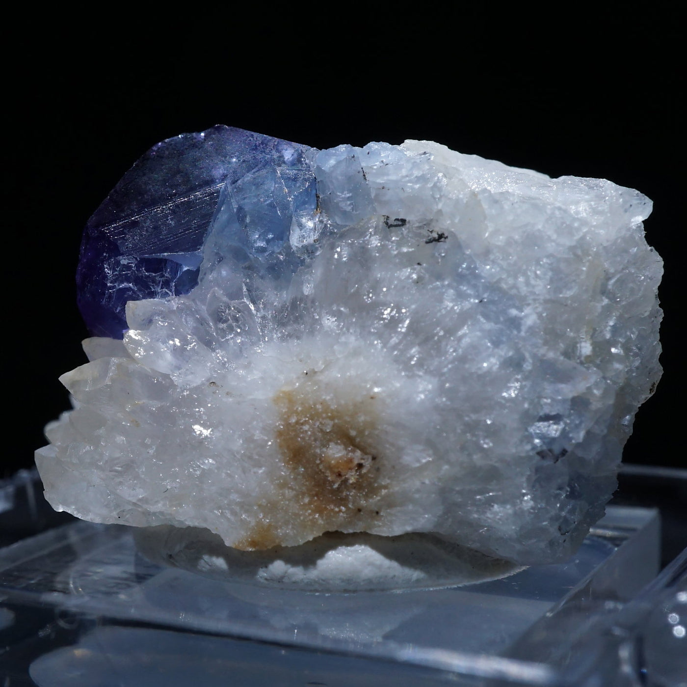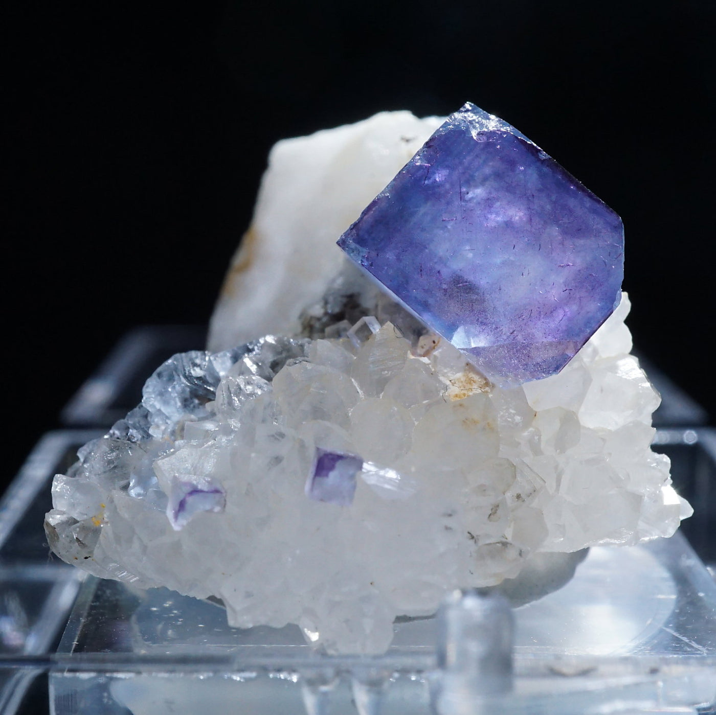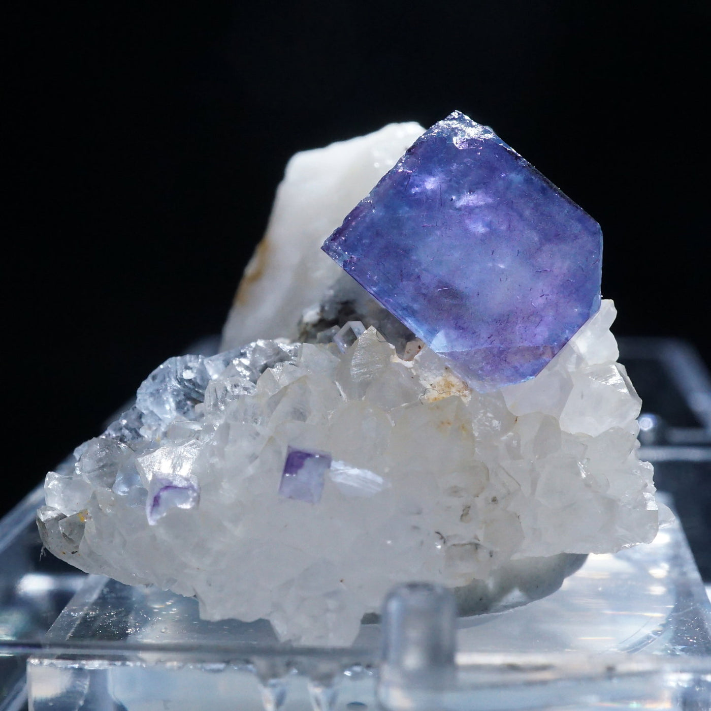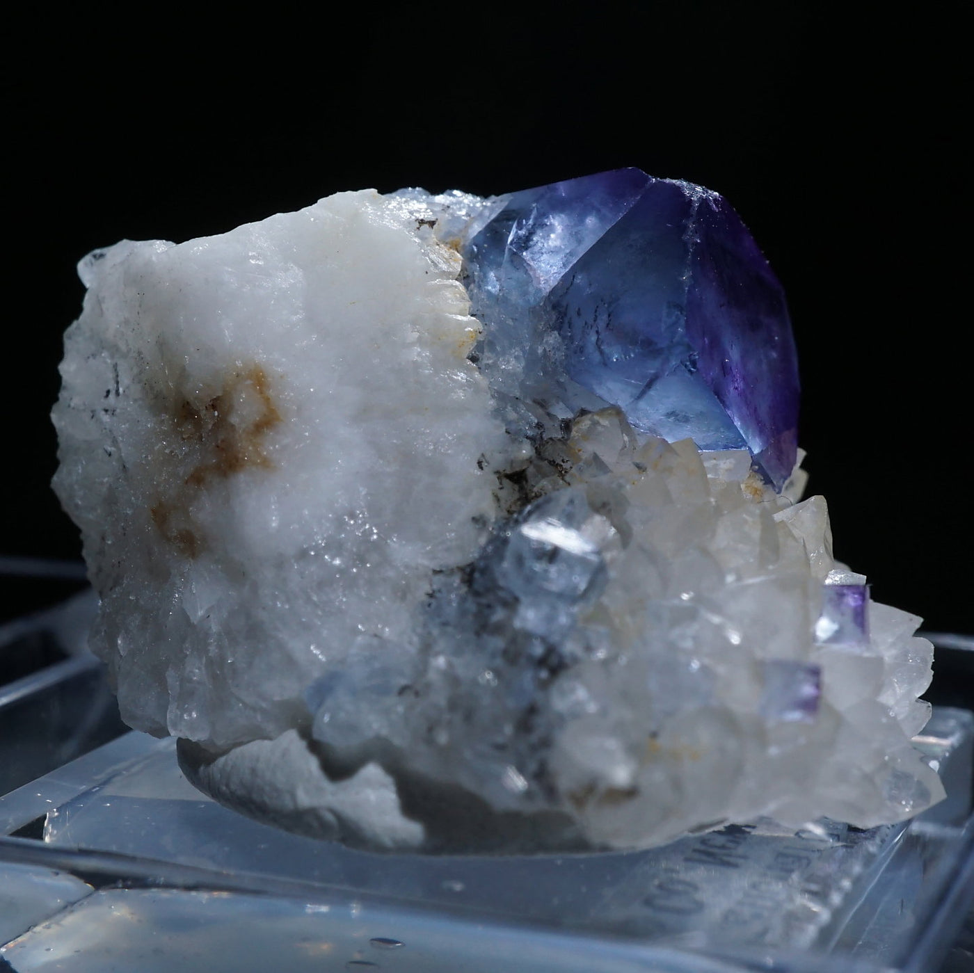 アメリカ・ニューメキシコ州産のフローライトです。淡い紫がかったブルーが綺麗です。フローライトは紫外線ライトを当てると蛍光します。※撮影に使用しているライトは、紫外線ライト365nm5wタイプです。【産地】Blanchard Mine, Socorro Co., New Mexico, USA