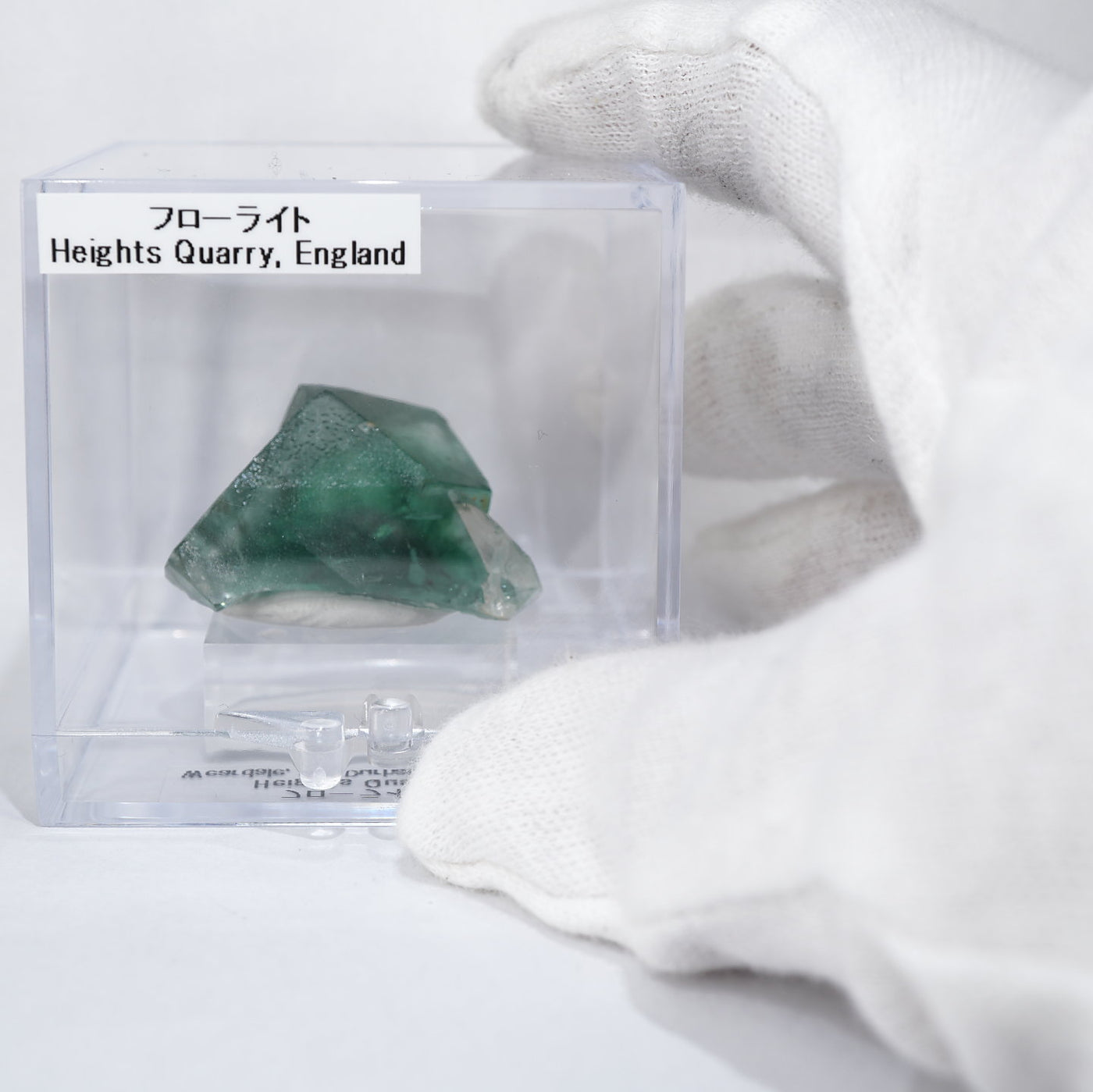 イギリスHeights Quarry産のフローライトです。透明感と艶のあるグリーンが美しい良質な標本です。です。紫外線ライトを当てると蛍光します。※撮影に使用しているライトは、紫外線ライト365nm5wタイプです。【産地】Heights Quarry, Weardale, Co. Durham, England【サイズ】約33mm×23mm×18mm【ご注意】ライトを当てて撮影しております、またご覧になるモニター環境によっても差があり、色合いの違いを感じられる事が有ります。 商品は天然ゆえ写真では確認できない細かな傷や凹み等がある場合もございます。イメージの違いに関しての返品は受付出来かねますのでご了承ください。【その他】価格は税込表示です、送料は全国一律全て無料です。宅配便またはポスト投函便(ヤマト運輸ネコポス)にて配送いたします。発送方法の指定はできません。