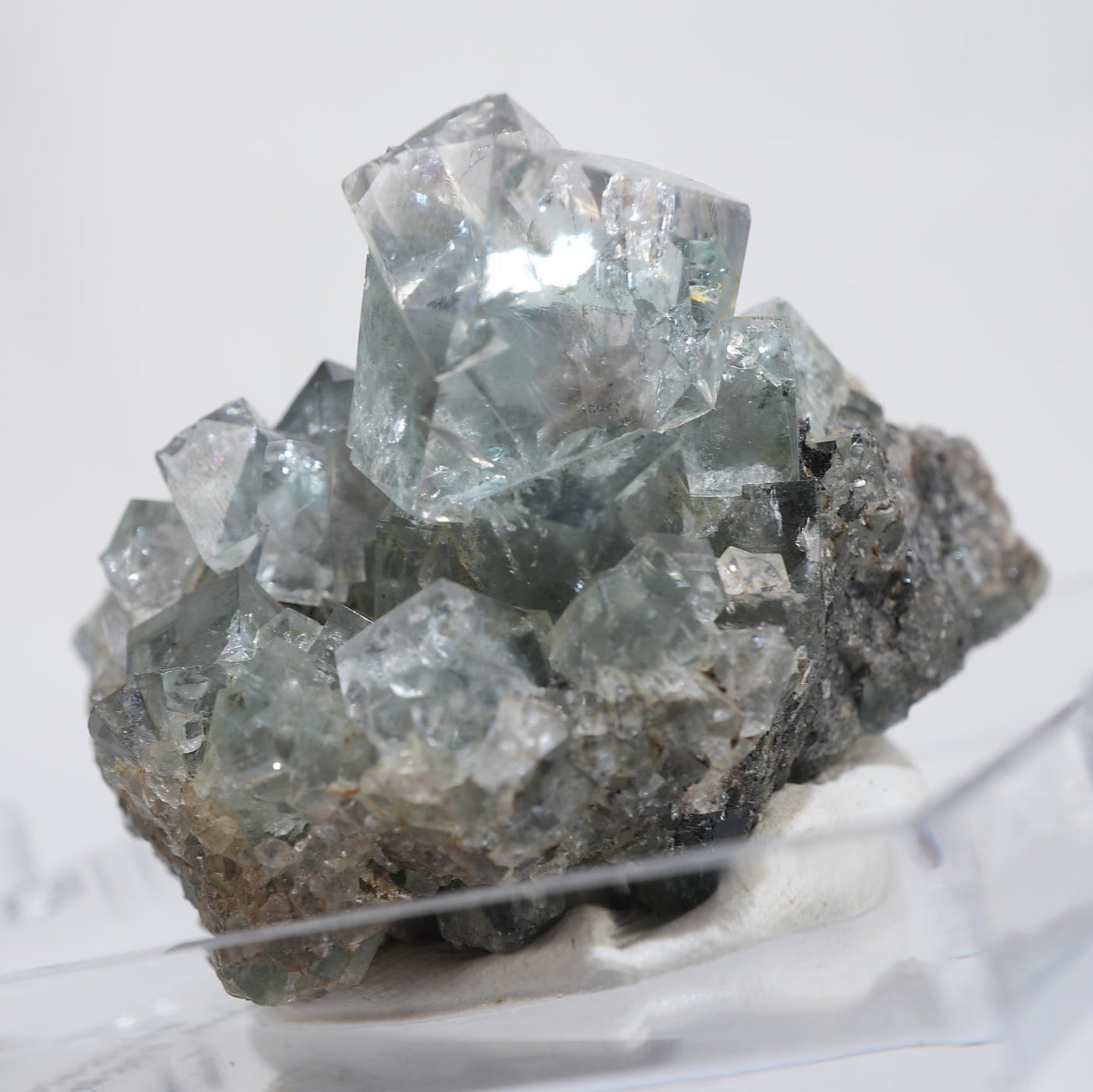 イギリスHeights Quarry産のフローライトです。透明感と照りがある淡いグリーンが特徴です。母岩とのバランスのよい標本です。紫外線ライトを当てると蛍光します。※撮影に使用しているライトは、紫外線ライト365nm5wタイプです。【産地】Heights Quarry, Westgate, Weardale, Co. Durham, England【サイズ】約38mm×43mm×25mm【ご注意】ライトを当てて撮影しております、またご覧になるモニター環境によっても差があり、色合いの違いを感じられる事が有ります。 商品は天然ゆえ写真では確認できない細かな傷や凹み等がある場合もございます。イメージの違いに関しての返品は受付出来かねますのでご了承ください。【その他】価格は税込表示です、送料は全国一律全て無料です。宅配便またはポスト投函便(ヤマト運輸ネコポス)にて配送いたします。発送方法の指定はできません。