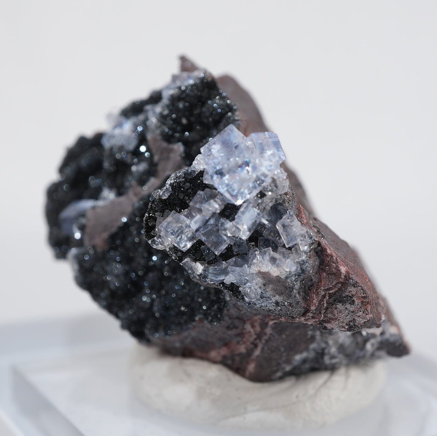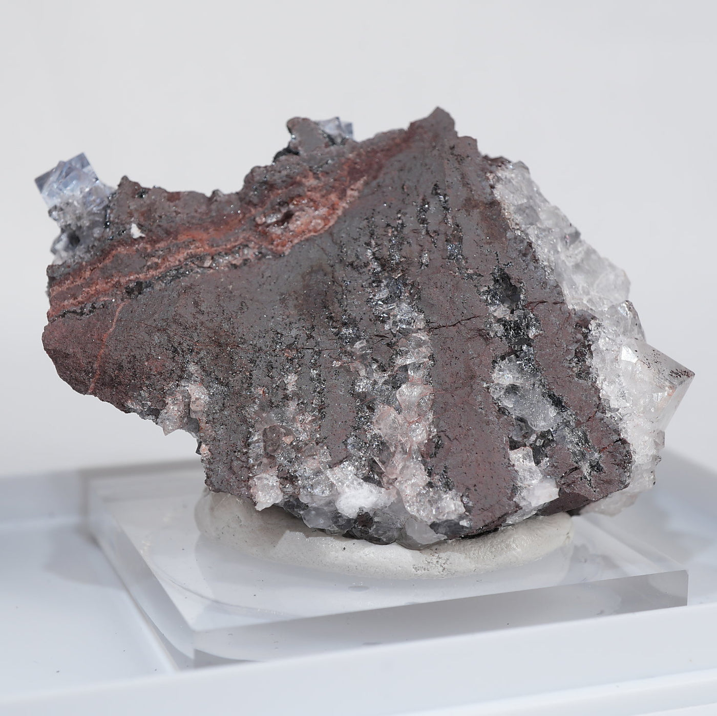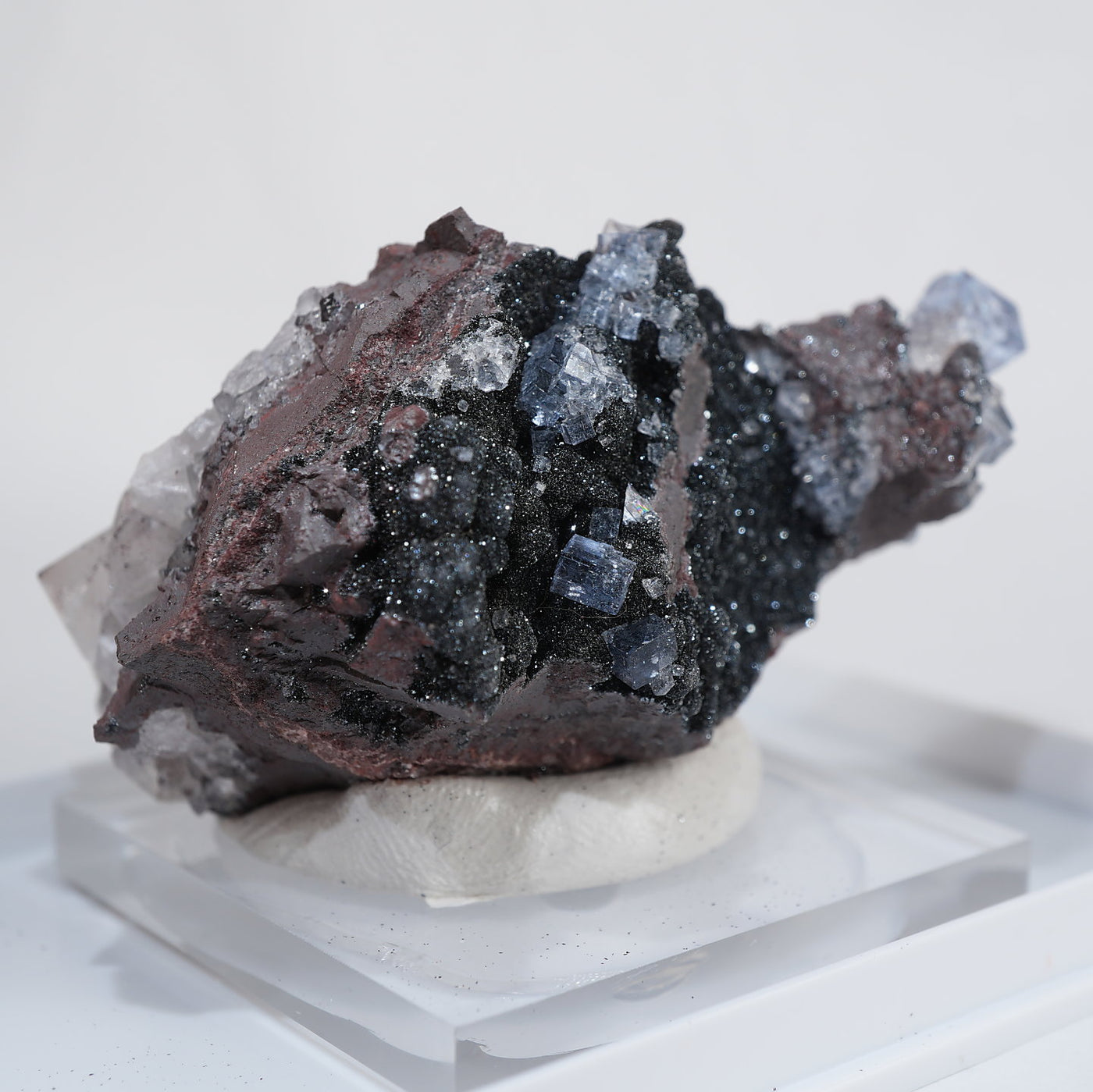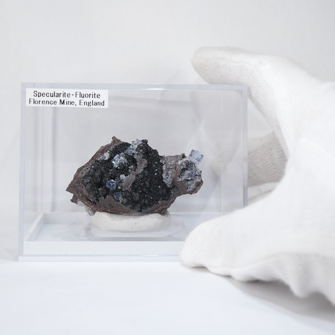 イギリス Florence(フローレンス) Mine産のSpecularite・Fluoriteです。赤鉄鉱で有名なフローレンス鉱山の貴重なフローライトです。照りのあるほのかに水色の小さな結晶が母岩に点在しています。鏡鉄鉱の共生も魅力です。紫外線ライトを当てると蛍光します。※撮影に使用しているライトは、紫外線ライト365nm5wタイプです。【産地】Florence Mine Egremont, West Cumbria, England【サイズ】約52mm×38mm×28mm【ご注意】ライトを当てて撮影しております、またご覧になるモニター環境によっても差があり、色合いの違いを感じられる事が有ります。 商品は天然ゆえ写真では確認できない細かな傷や凹み等がある場合もございます。イメージの違いに関しての返品は受付出来かねますのでご了承ください。【その他】価格は税込表示です、送料は全国一律全て無料です。宅配便またはポスト投函便(ヤマト運輸ネコポス)にて配送いたします。発送方法の指定はできません。