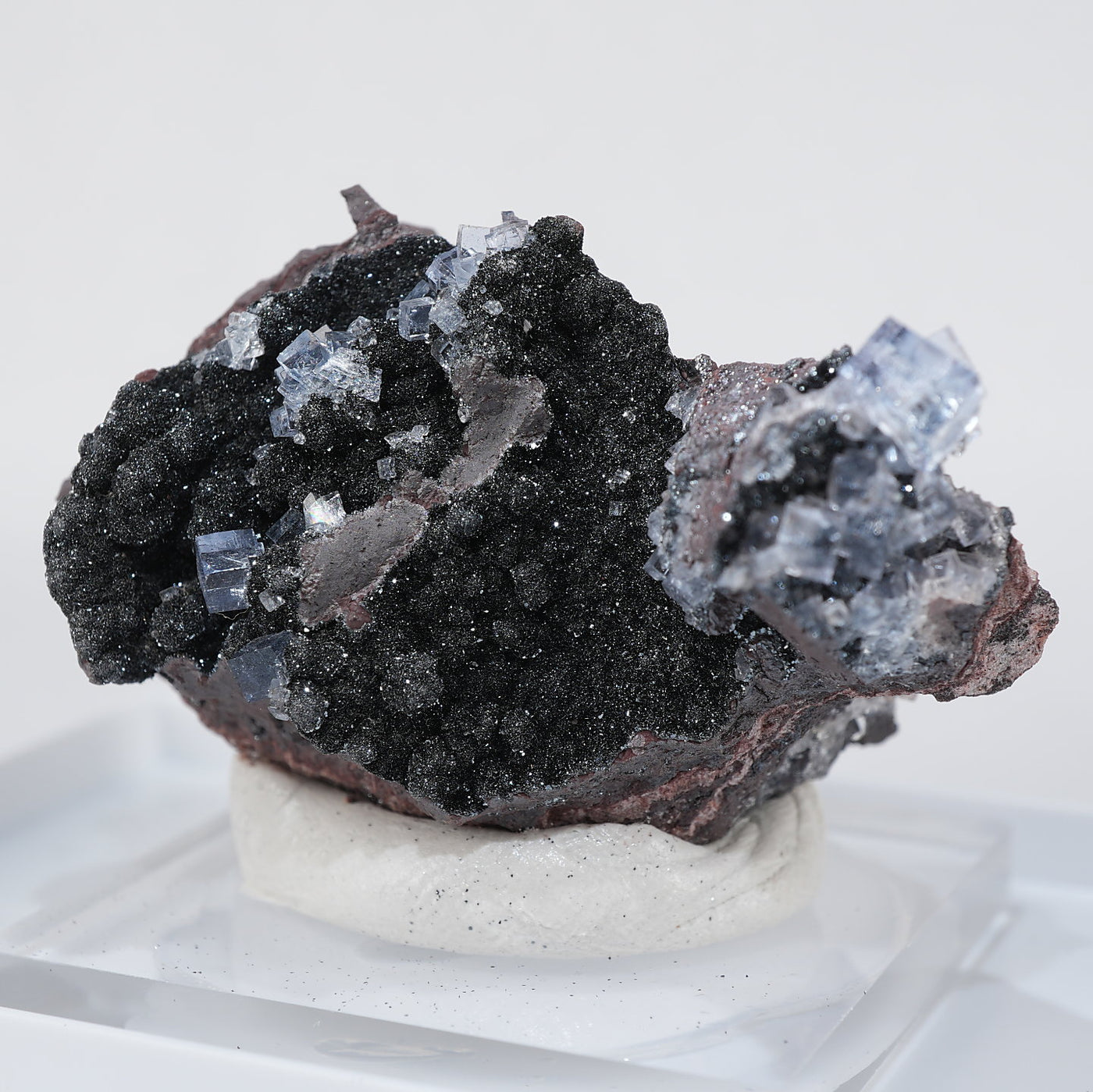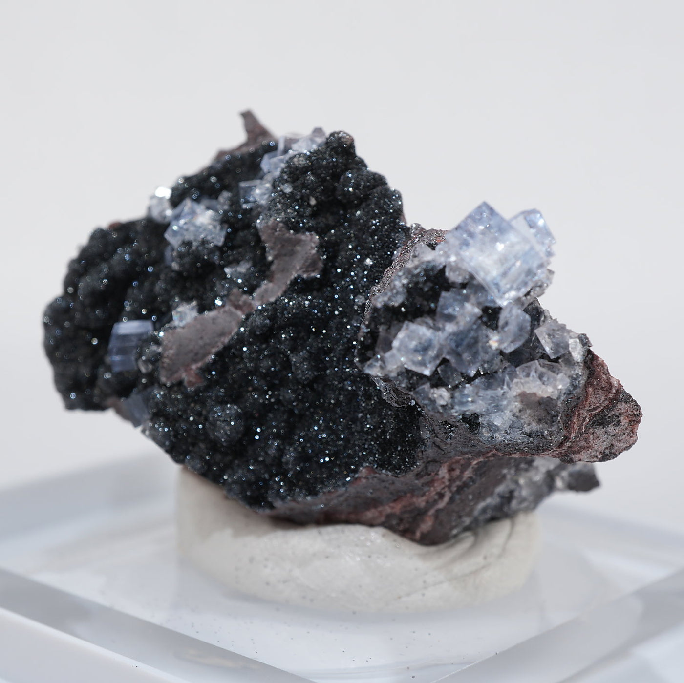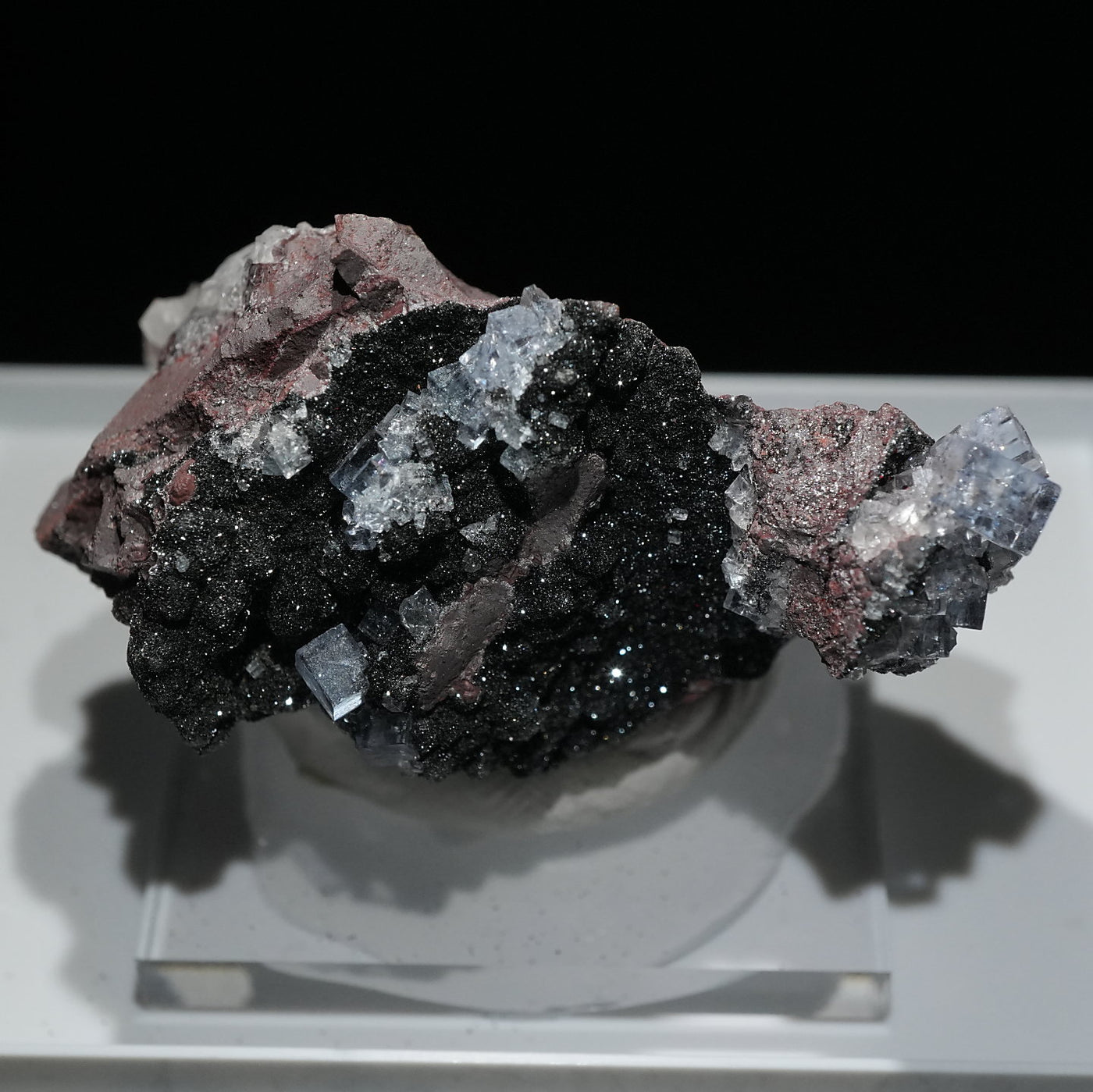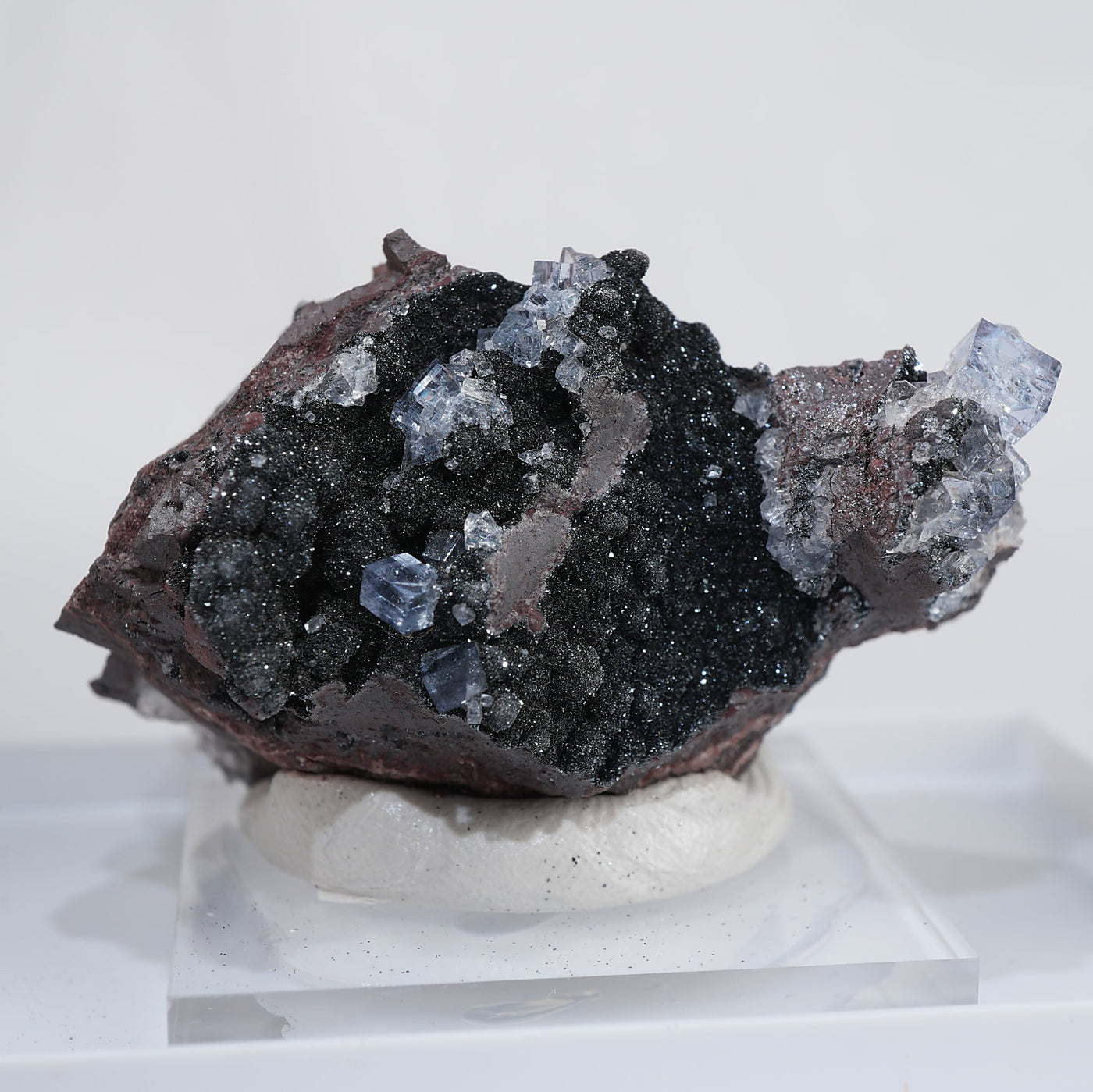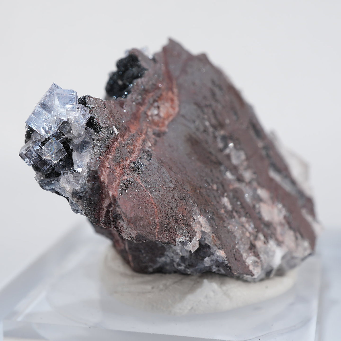 イギリス Florence(フローレンス) Mine産のSpecularite・Fluoriteです。赤鉄鉱で有名なフローレンス鉱山の貴重なフローライトです。照りのあるほのかに水色の小さな結晶が母岩に点在しています。鏡鉄鉱の共生も魅力です。紫外線ライトを当てると蛍光します。※撮影に使用しているライトは、紫外線ライト365nm5wタイプです。【産地】Florence Mine Egremont, West Cumbria, England【サイズ】約52mm×38mm×28mm【ご注意】ライトを当てて撮影しております、またご覧になるモニター環境によっても差があり、色合いの違いを感じられる事が有ります。 商品は天然ゆえ写真では確認できない細かな傷や凹み等がある場合もございます。イメージの違いに関しての返品は受付出来かねますのでご了承ください。【その他】価格は税込表示です、送料は全国一律全て無料です。宅配便またはポスト投函便(ヤマト運輸ネコポス)にて配送いたします。発送方法の指定はできません。