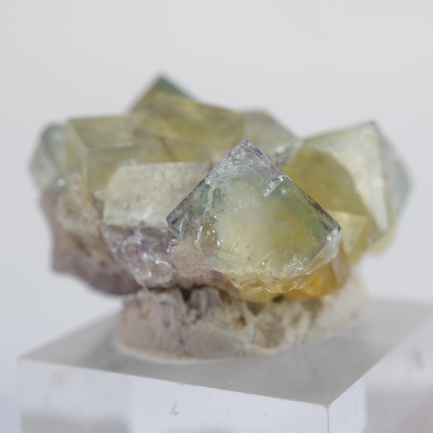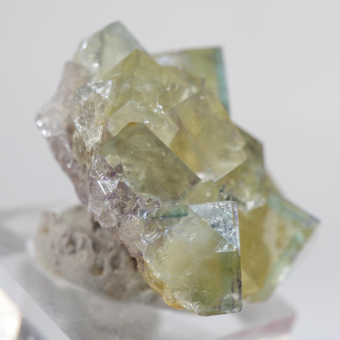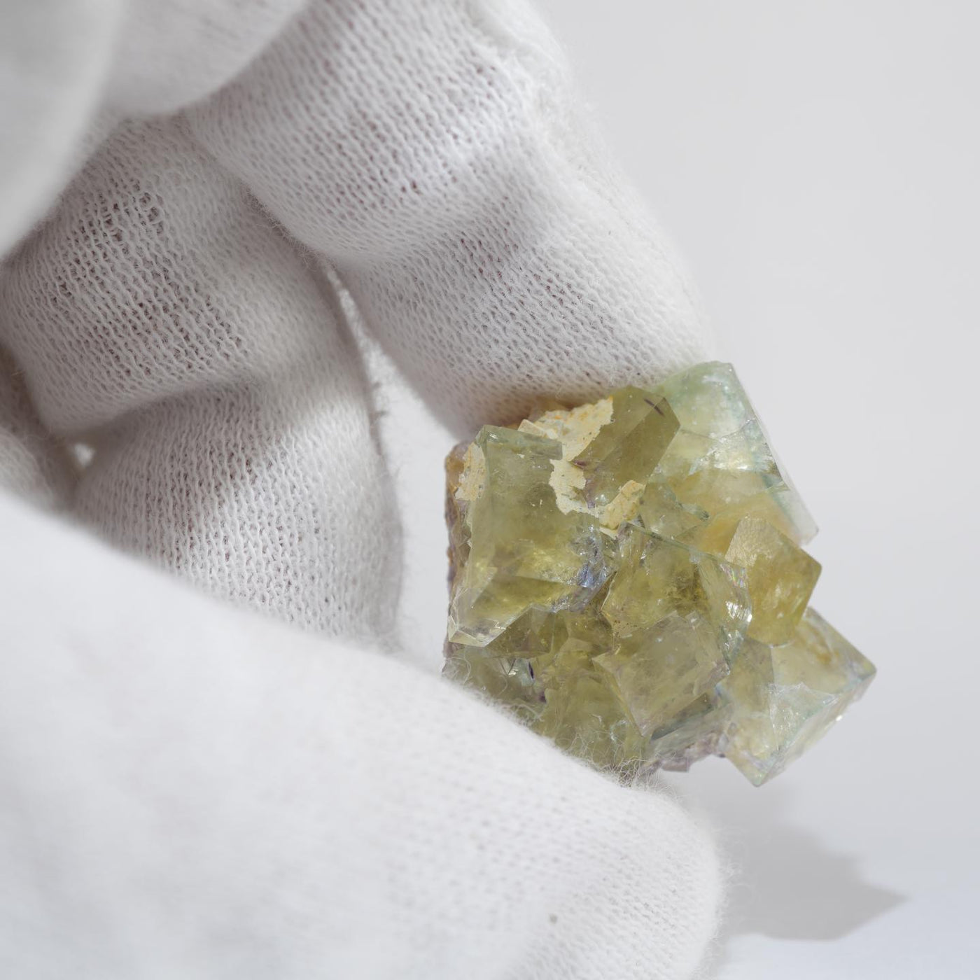 人気のナミビアOkorusu(オコルス)産のフローライトです。透明感のある淡いイエローが印象的な標本です。紫外線ライトを当てると蛍光します。