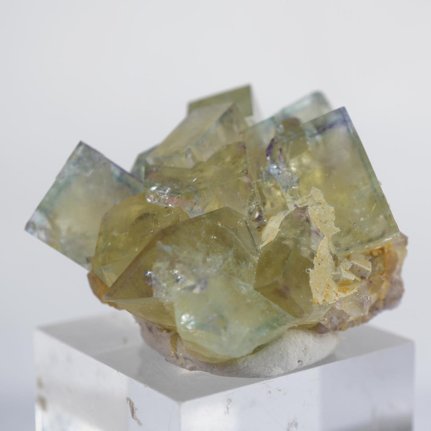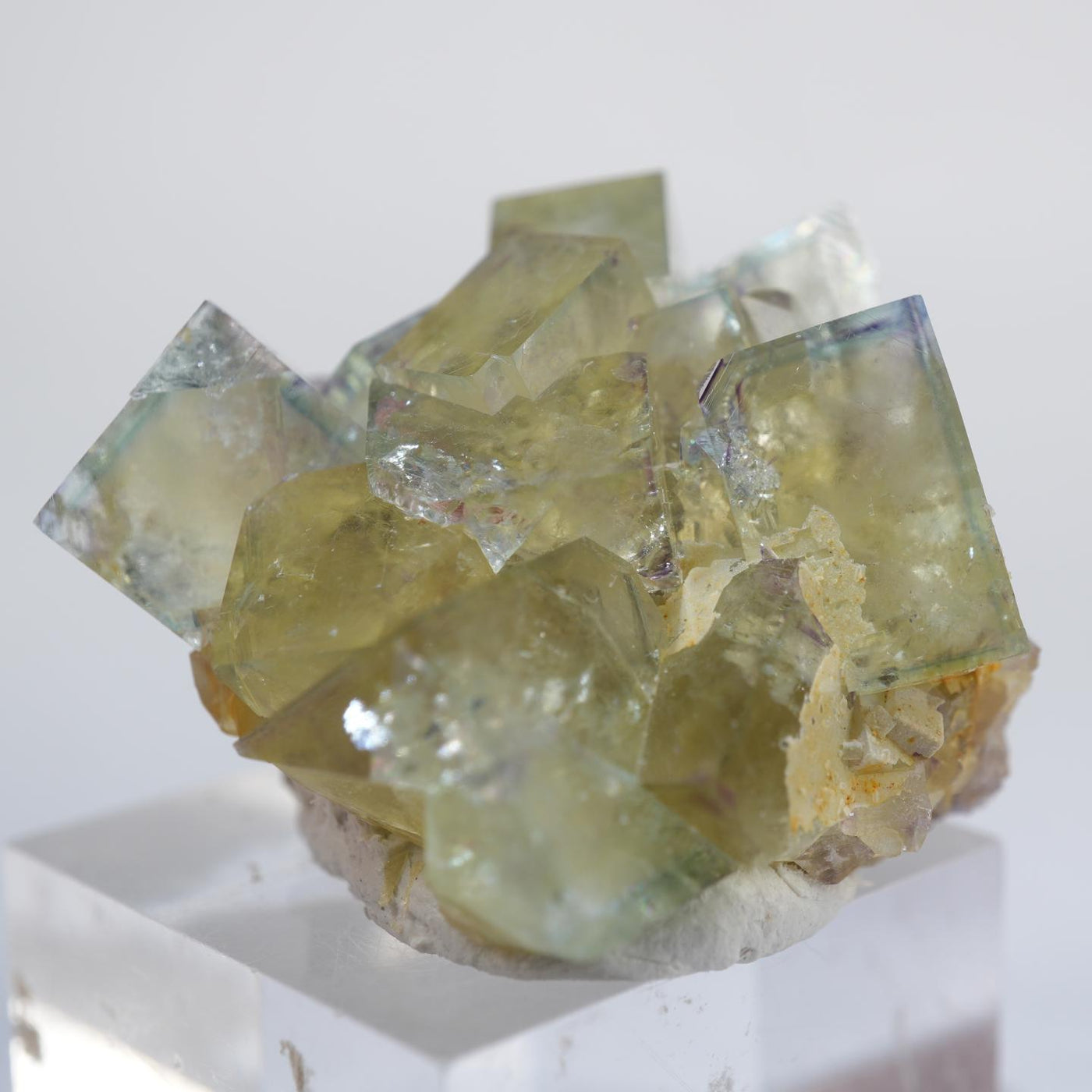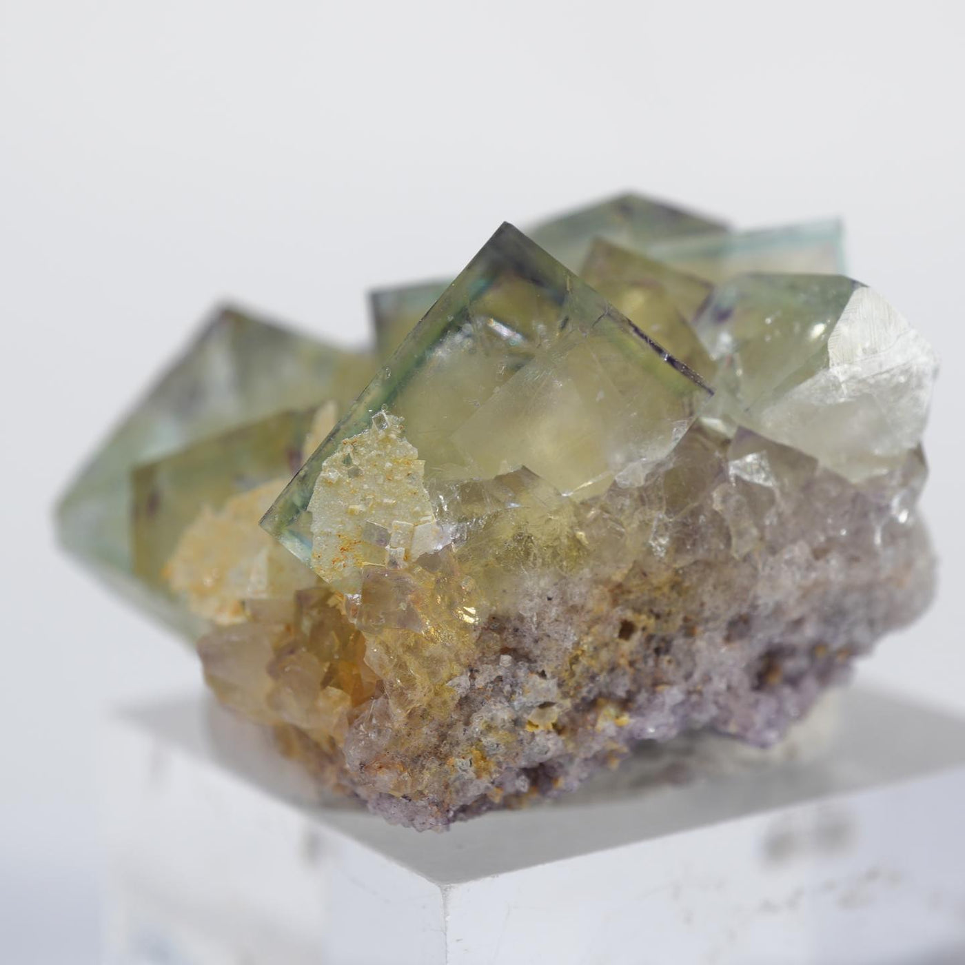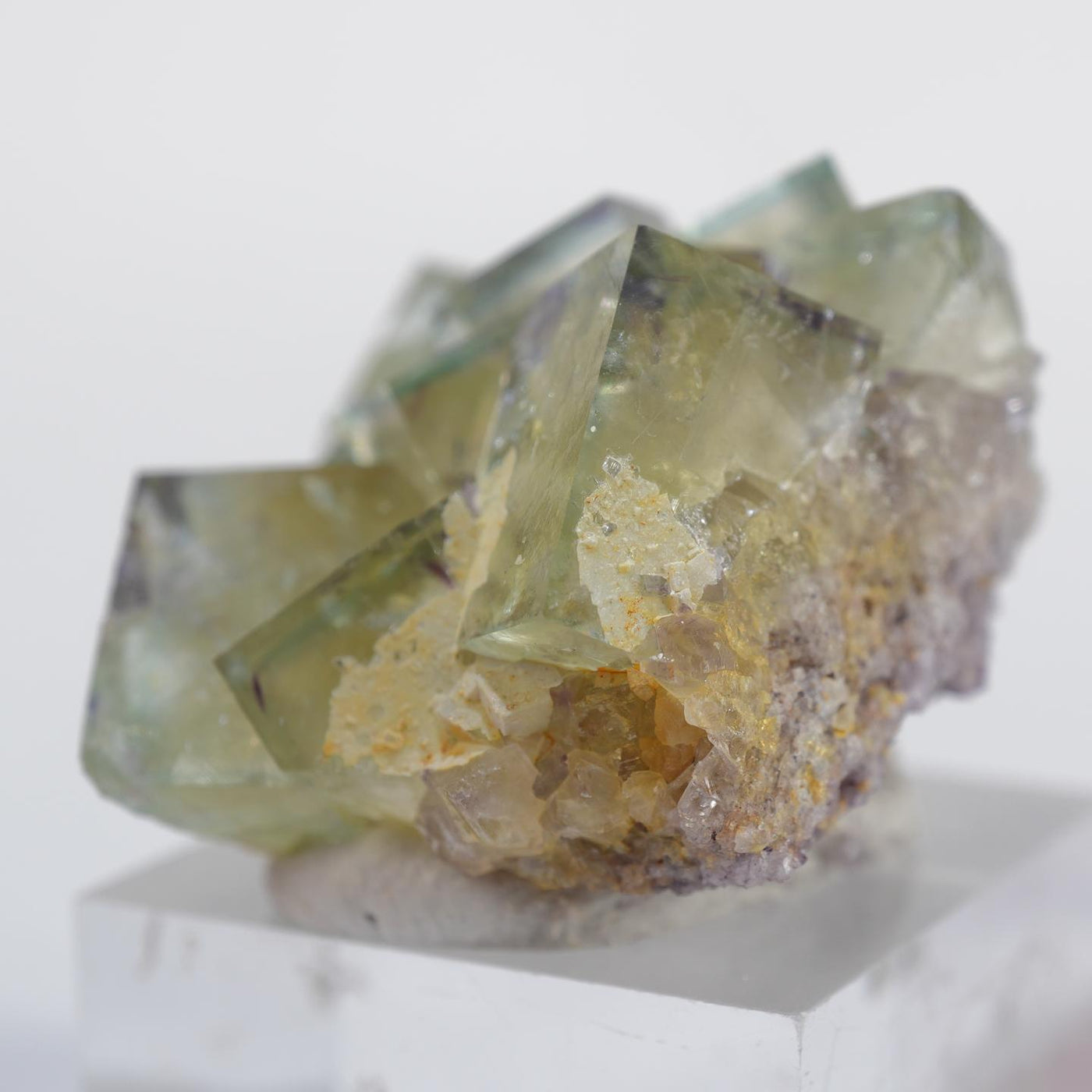 人気のナミビアOkorusu(オコルス)産のフローライトです。透明感のある淡いイエローが印象的な標本です。紫外線ライトを当てると蛍光します。