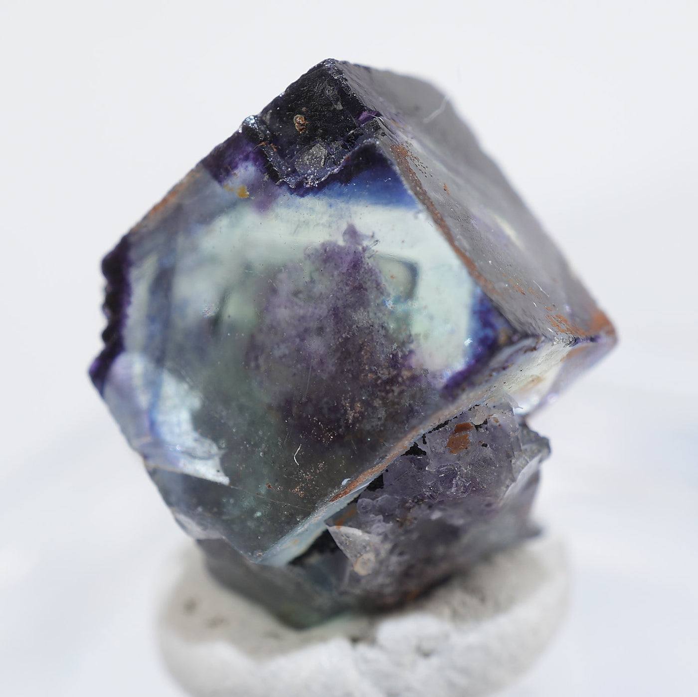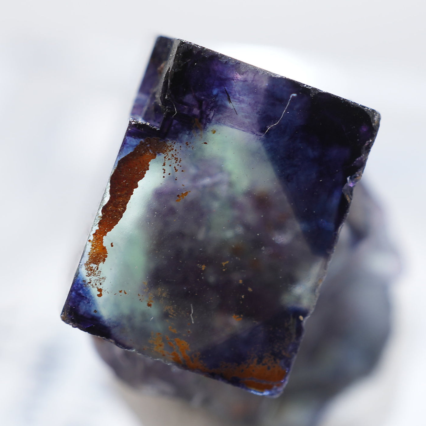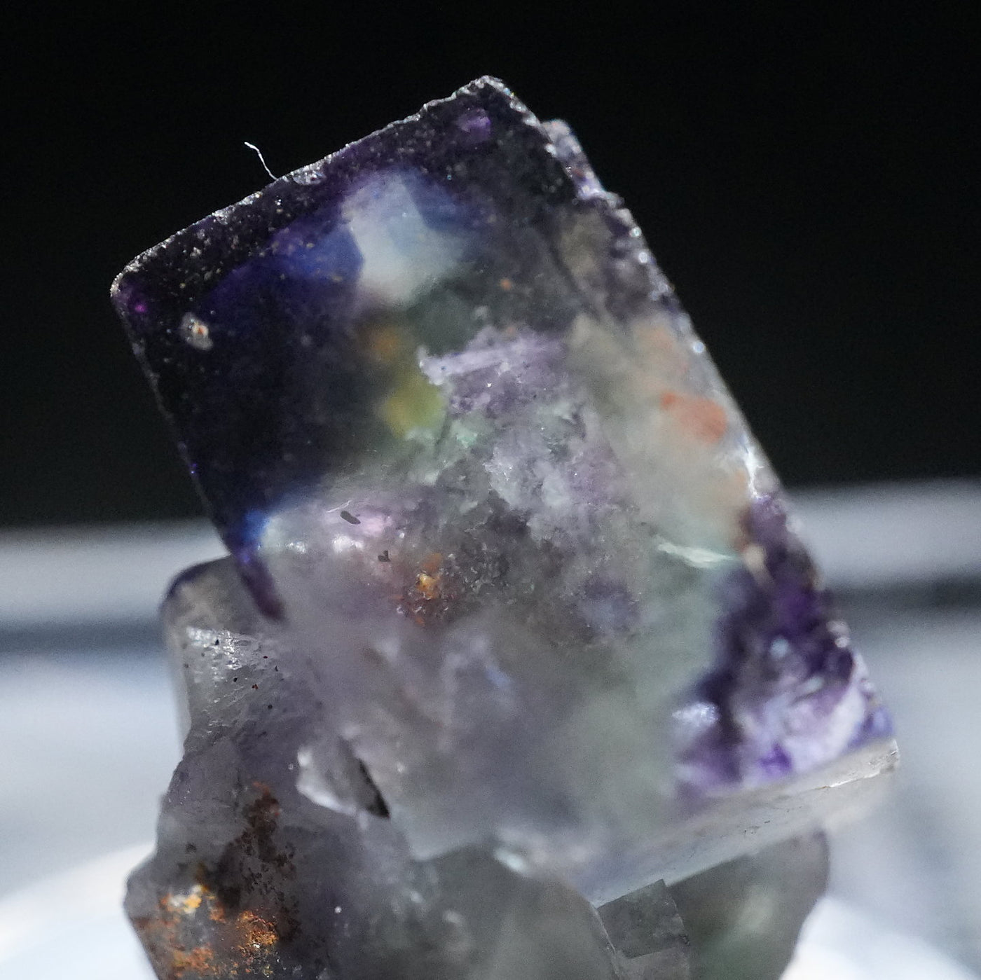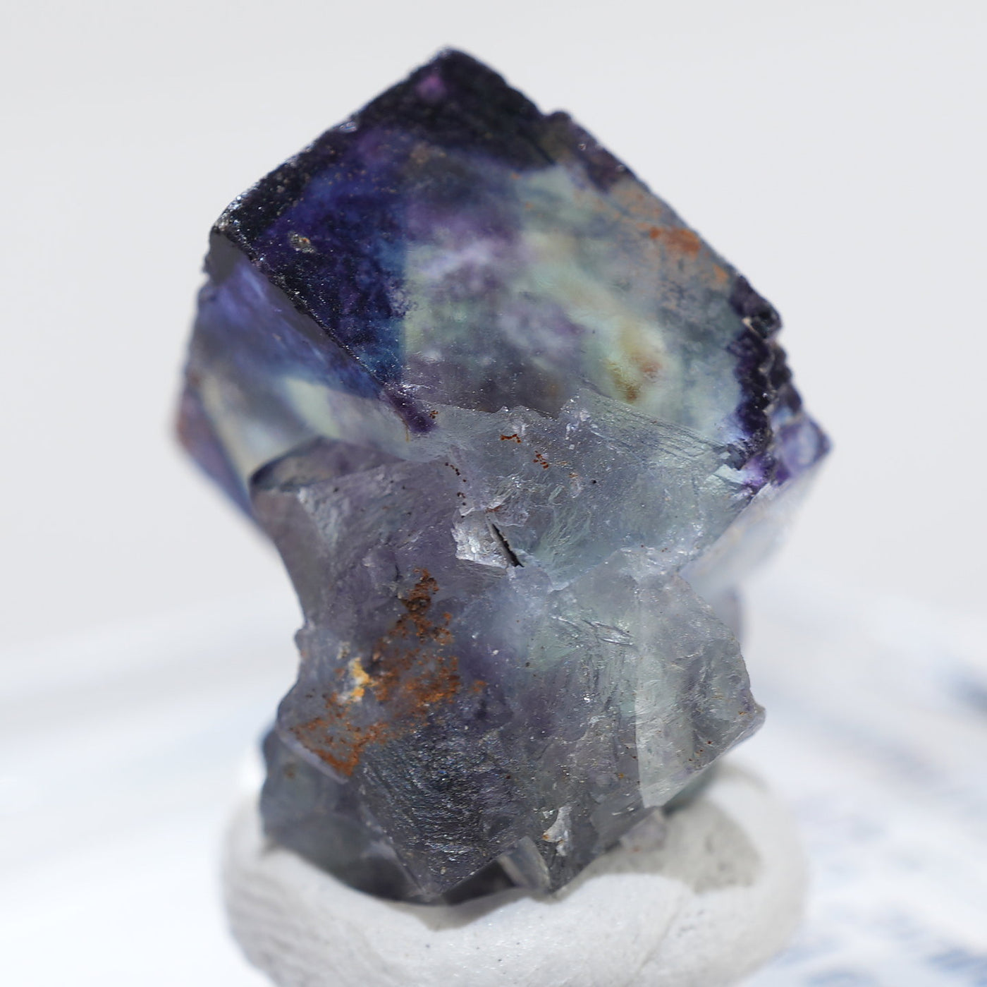人気のナミビア産のフローライトです。淡いグリーンを縁取るように四隅が濃紫色~紺色になっています。光を透過させると色のコントラストがより一層際立ち綺麗です。紫外線ライトを当てると蛍光します。※撮影に使用しているライトは、紫外線ライト365nm5wタイプです。