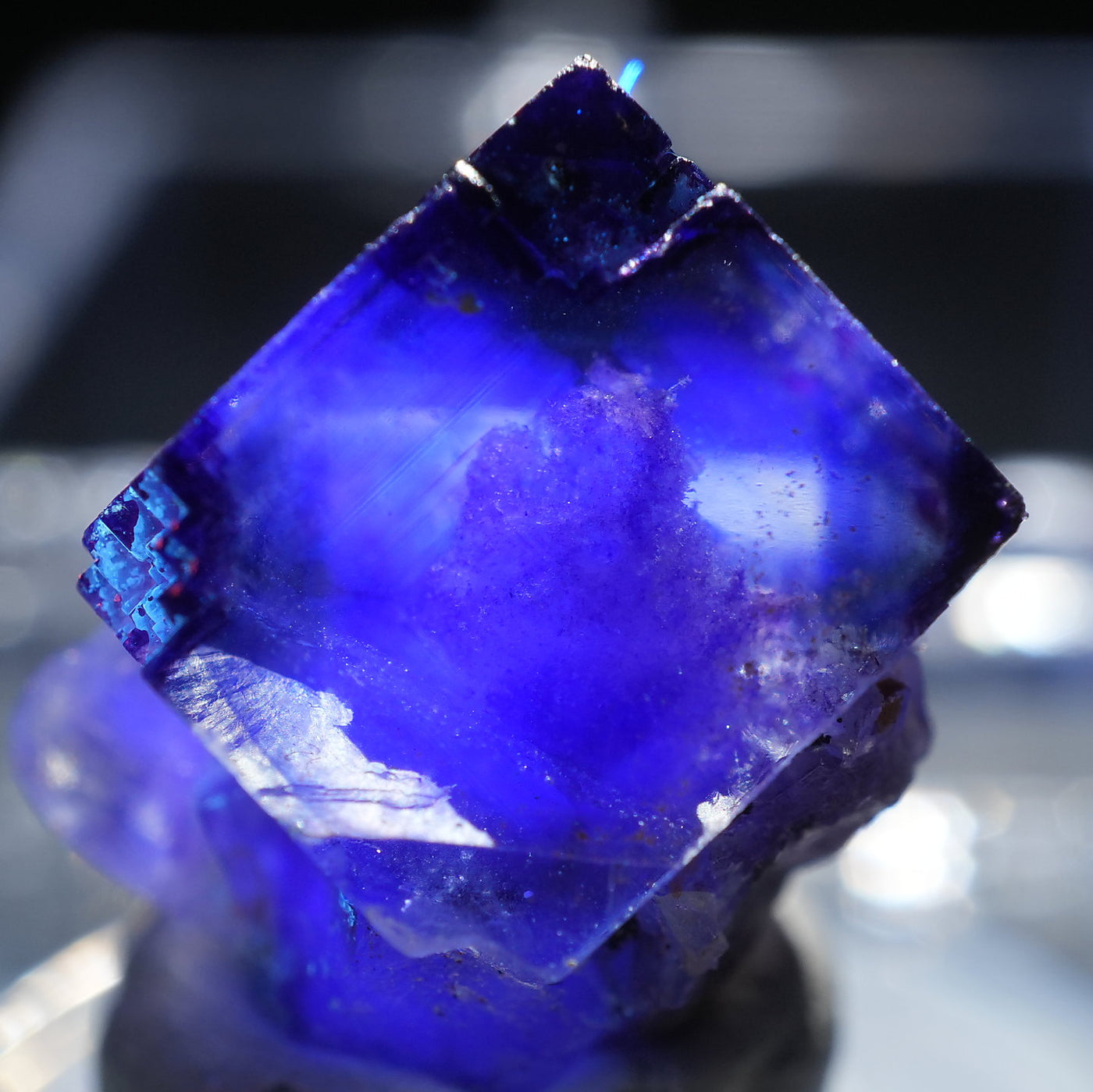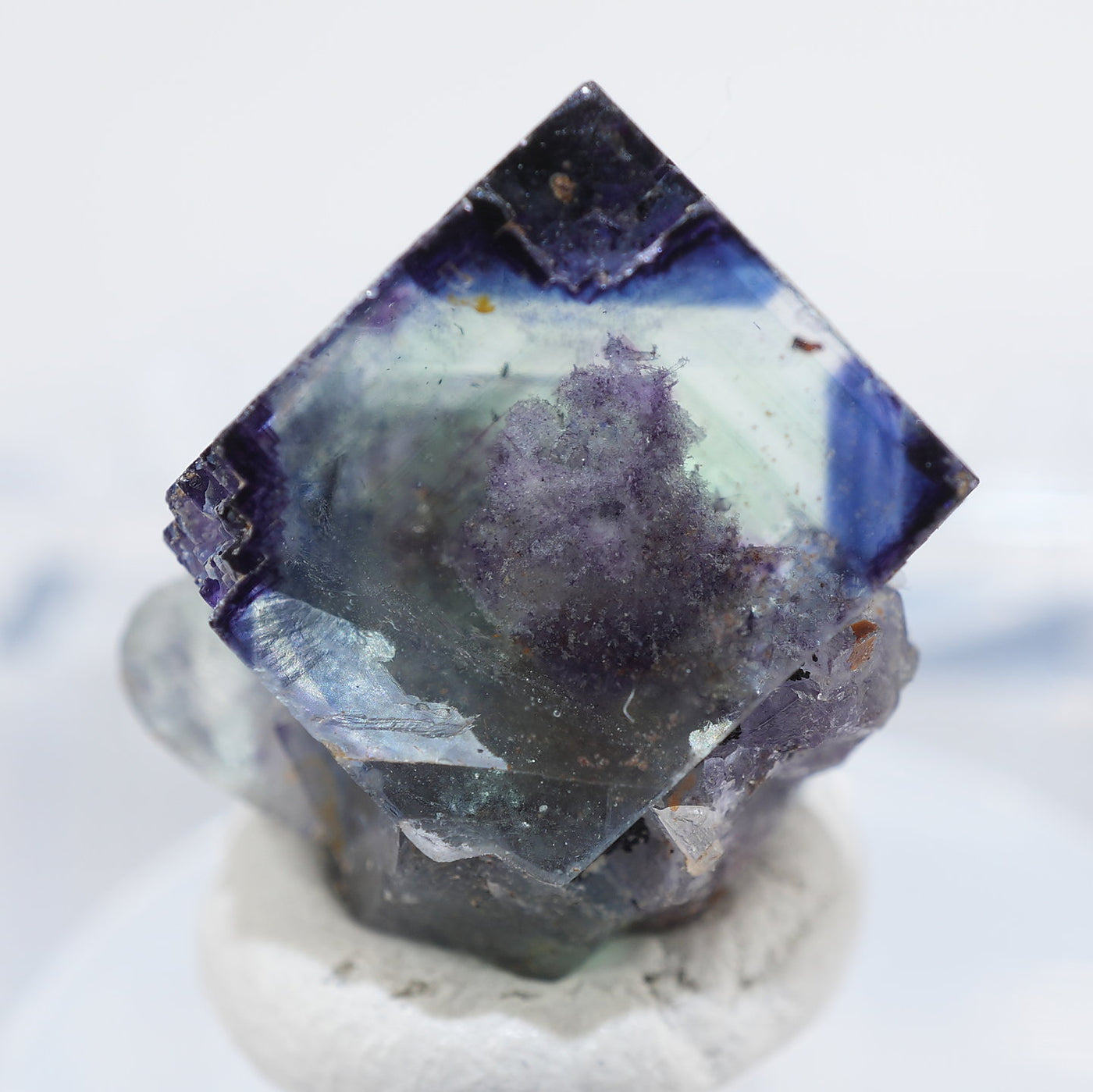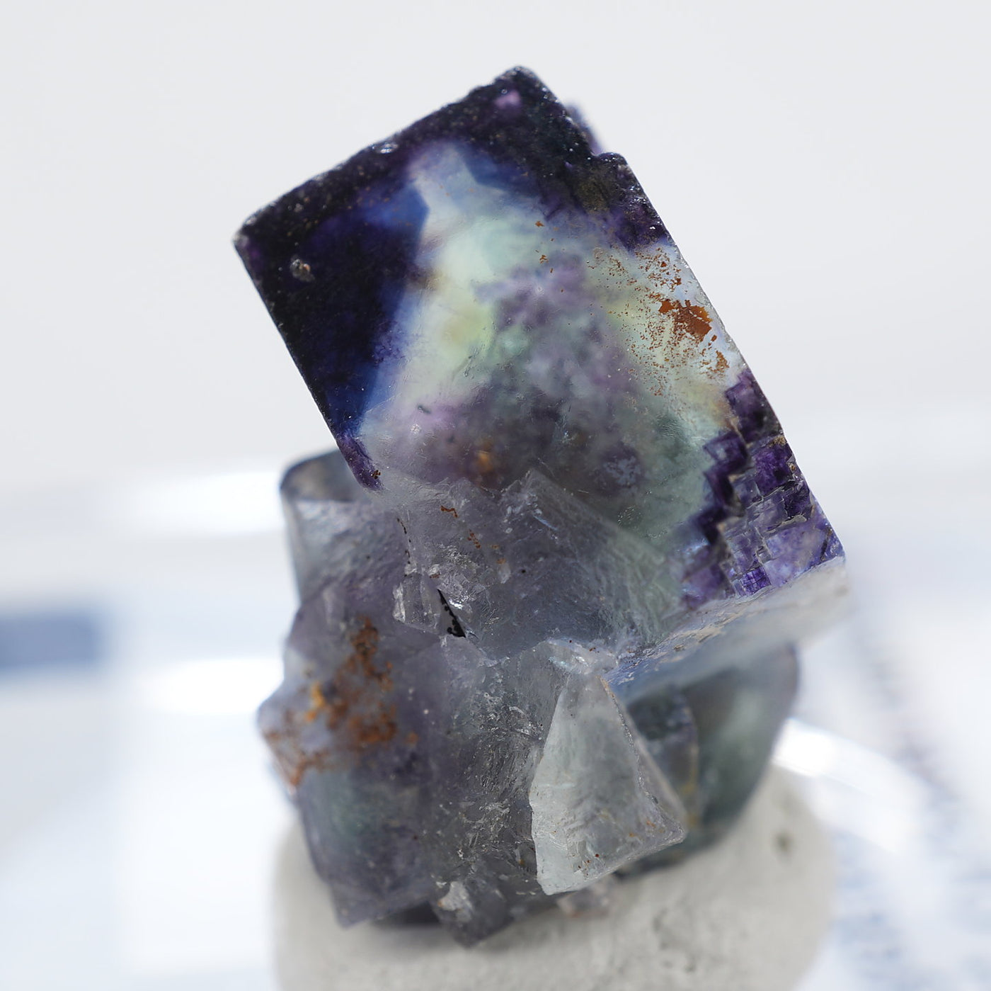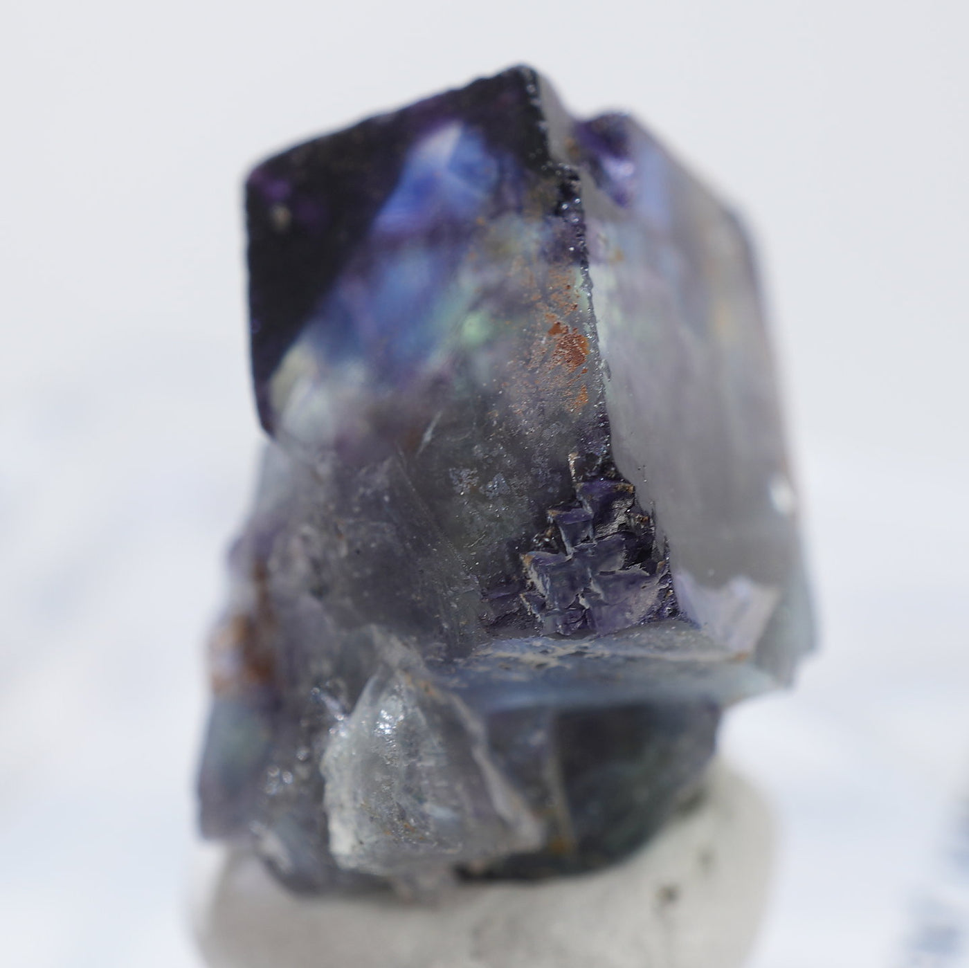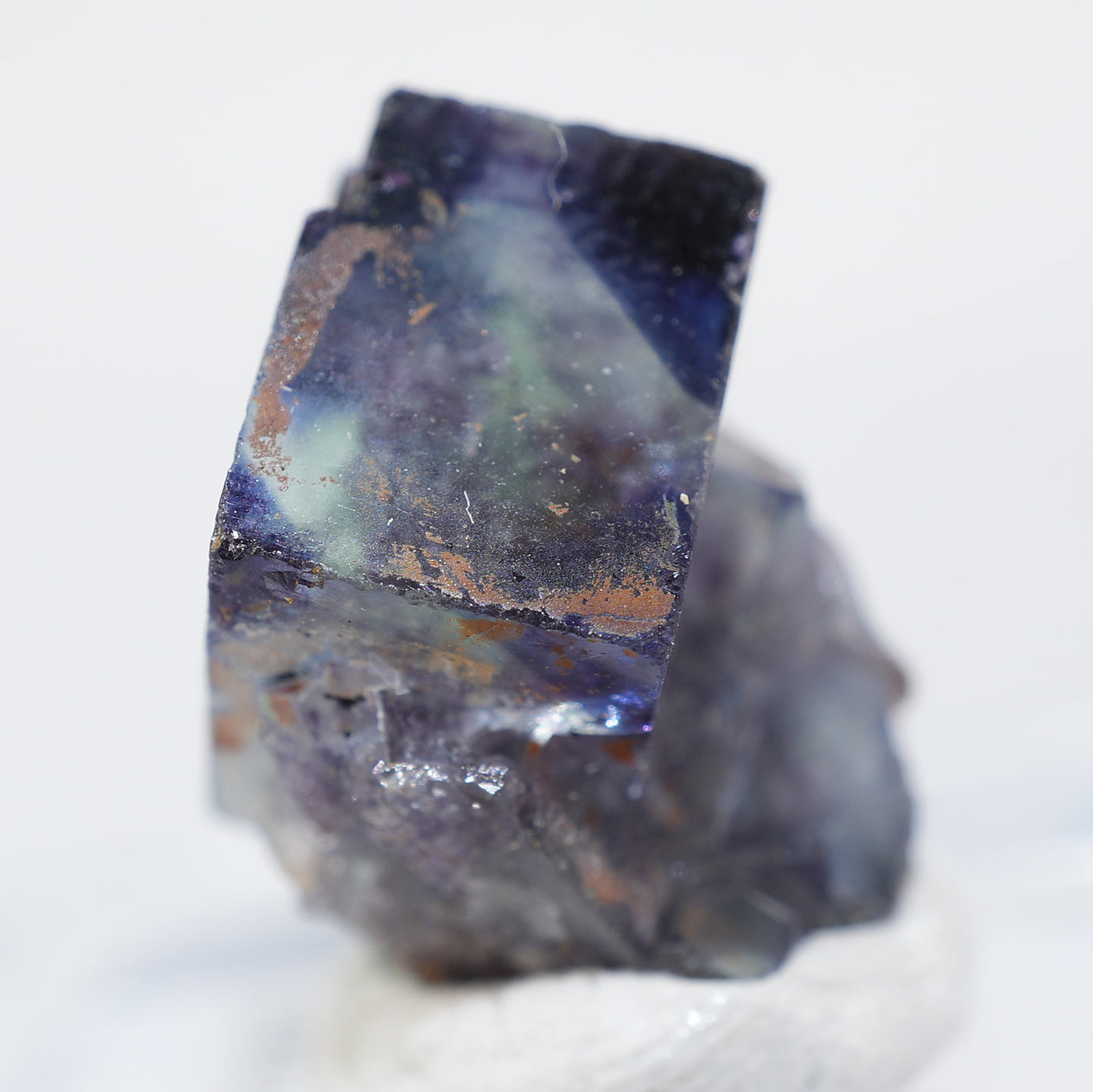 人気のナミビア産のフローライトです。淡いグリーンを縁取るように四隅が濃紫色~紺色になっています。光を透過させると色のコントラストがより一層際立ち綺麗です。紫外線ライトを当てると蛍光します。※撮影に使用しているライトは、紫外線ライト365nm5wタイプです。