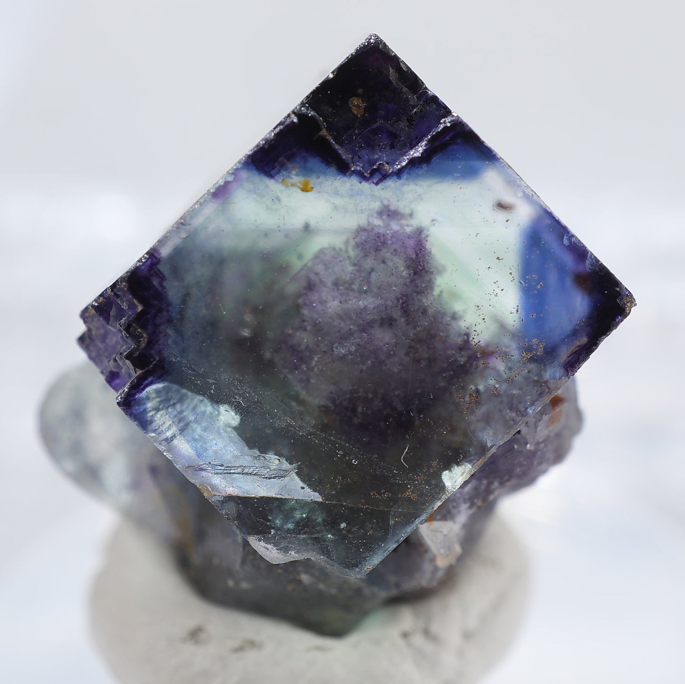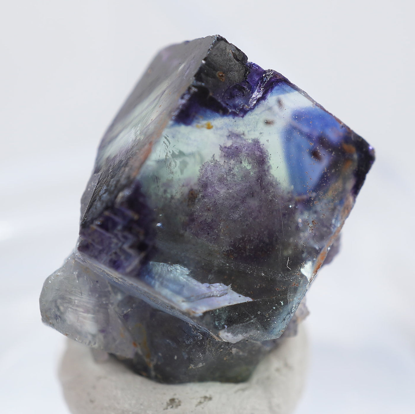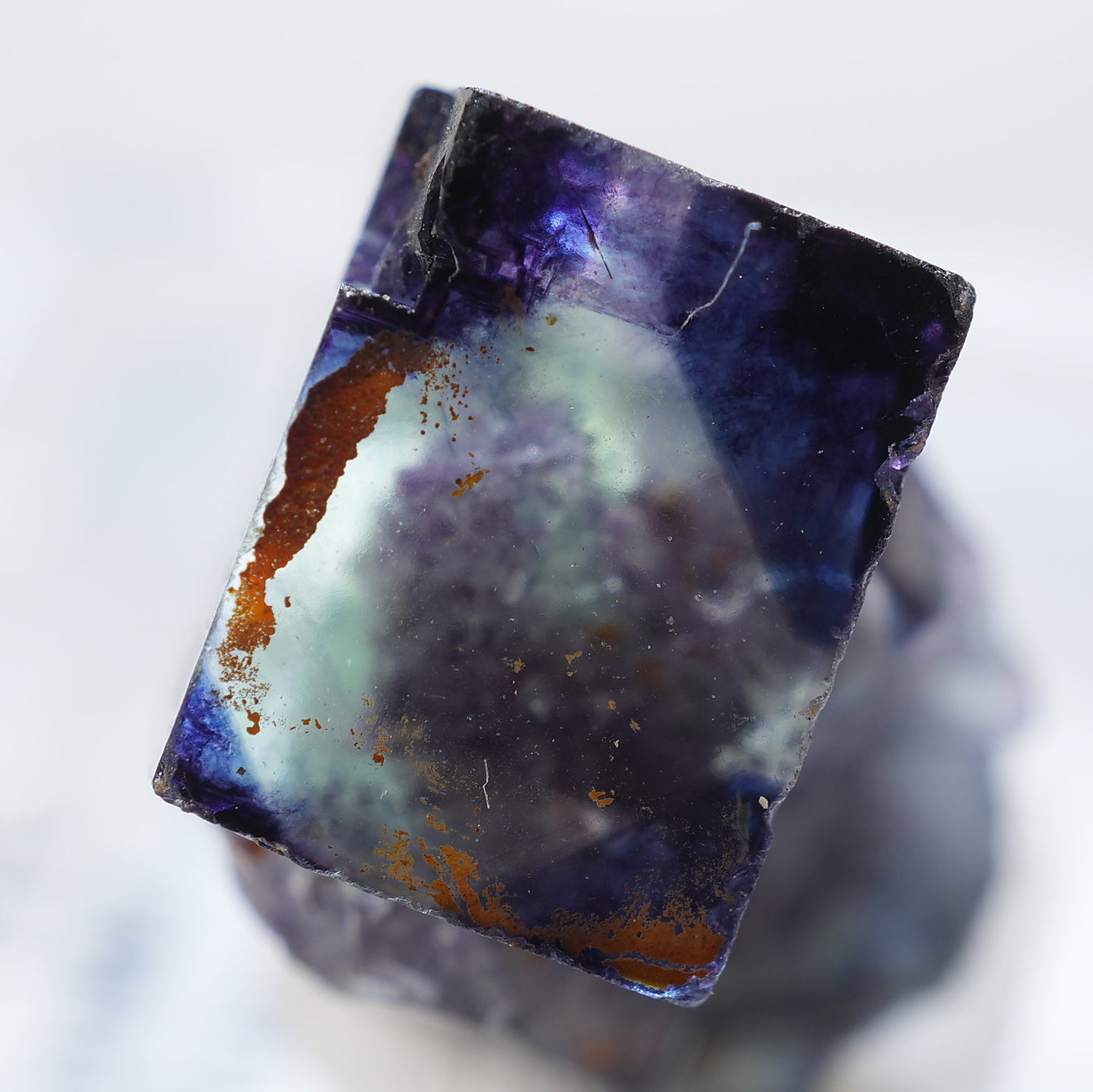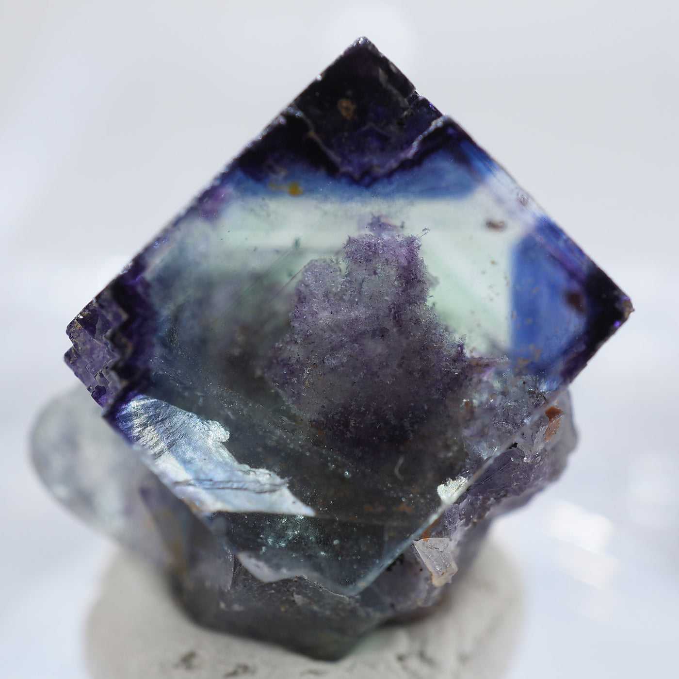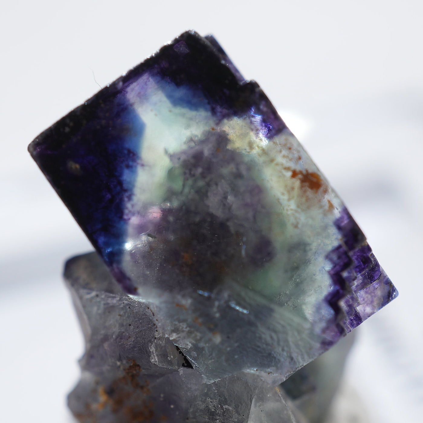 人気のナミビア産のフローライトです。淡いグリーンを縁取るように四隅が濃紫色~紺色になっています。光を透過させると色のコントラストがより一層際立ち綺麗です。紫外線ライトを当てると蛍光します。※撮影に使用しているライトは、紫外線ライト365nm5wタイプです。