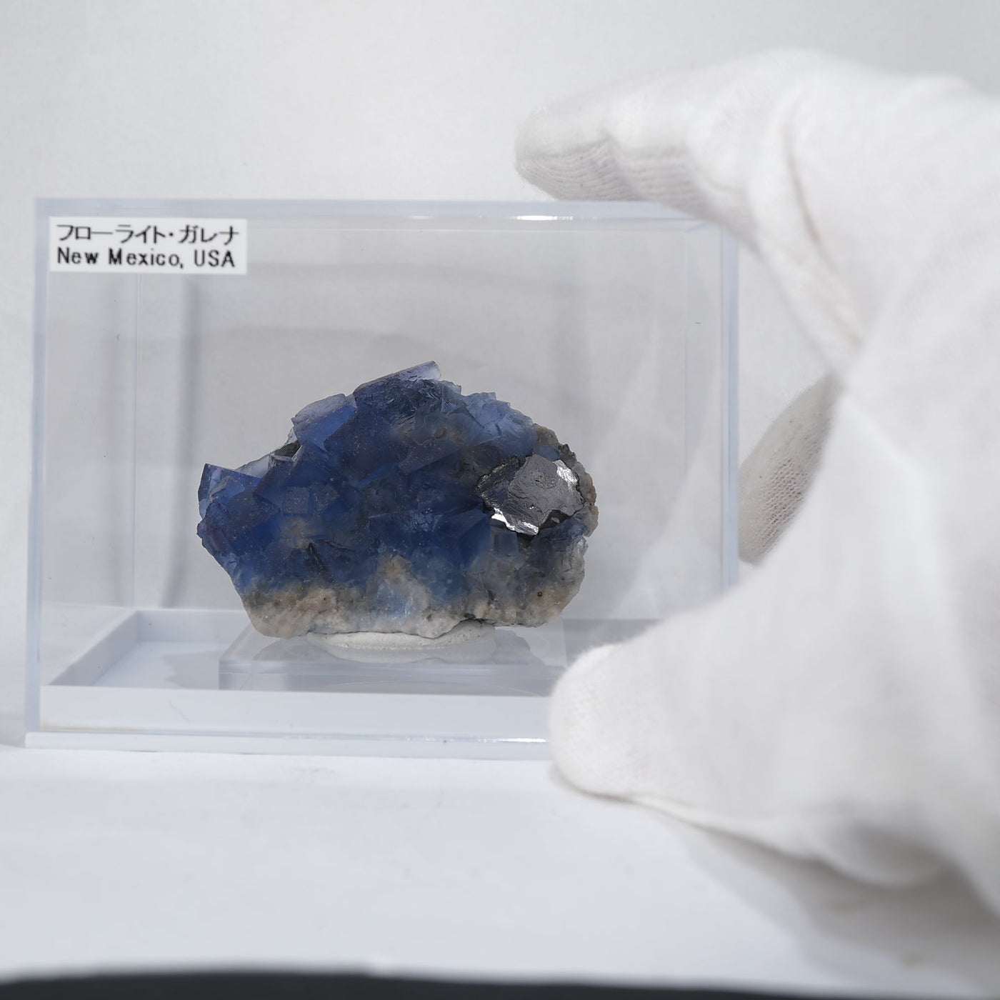 アメリカ・ニューメキシコ州産のフローライトです。深みのあるブルーのフローライトが母岩全体に広がっています。ガレナの共生も魅力です。フローライトは紫外線ライトを当てると蛍光します。※撮影に使用しているライトは、紫外線ライト365nm5wタイプです。【産地】 Blanchard Mine, Bingham, New Mexico, USA【サイズ】約51mm×35mm×28mm【ご注意】ライトを当てて撮影しております、またご覧になるモニター環境によっても差があり、色合いの違いを感じられる事が有ります。 商品は天然ゆえ写真では確認できない細かな傷や凹み等がある場合もございます。イメージの違いに関しての返品は受付出来かねますのでご了承ください。【その他】価格は税込表示です、送料は全国一律全て無料です。宅配便またはポスト投函便(ヤマト運輸ネコポス)にて配送いたします。発送方法の指定はできません。