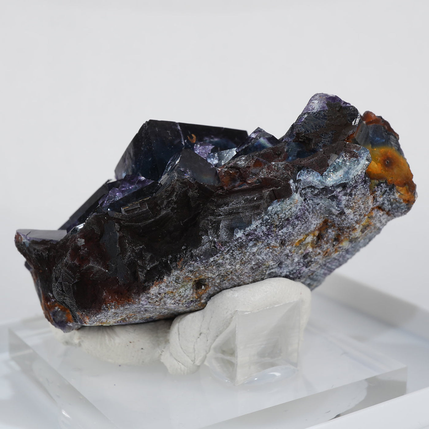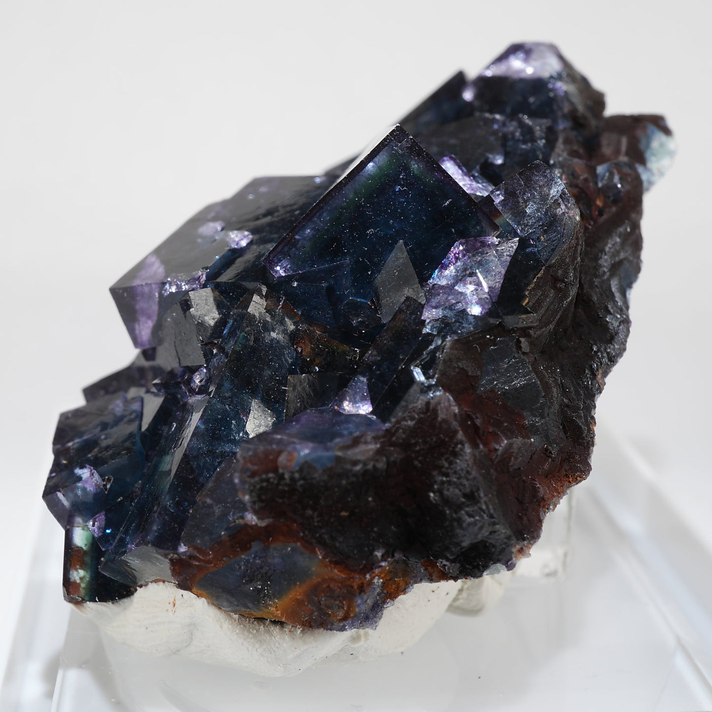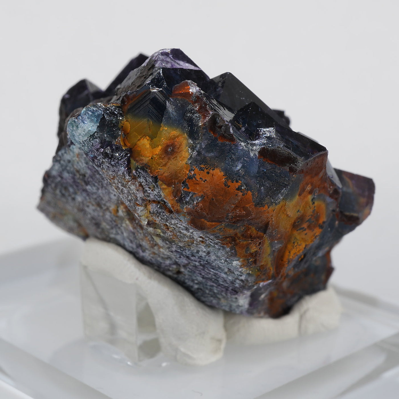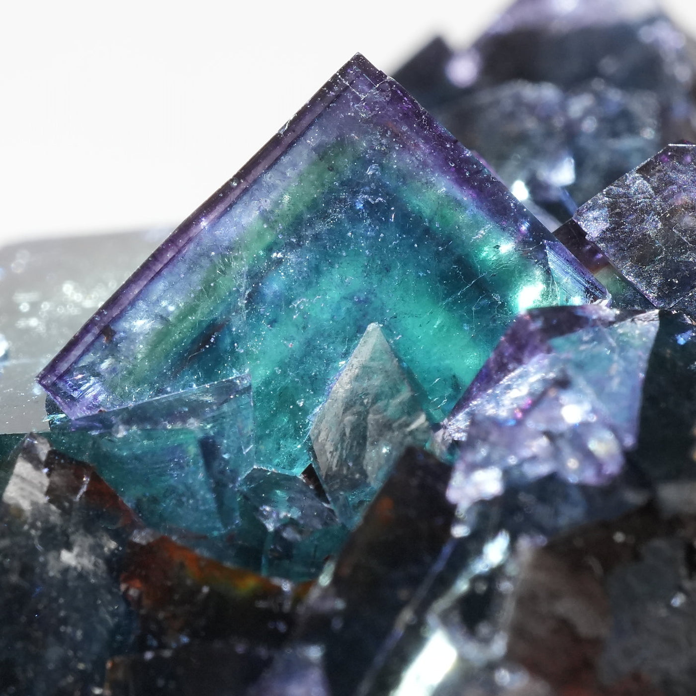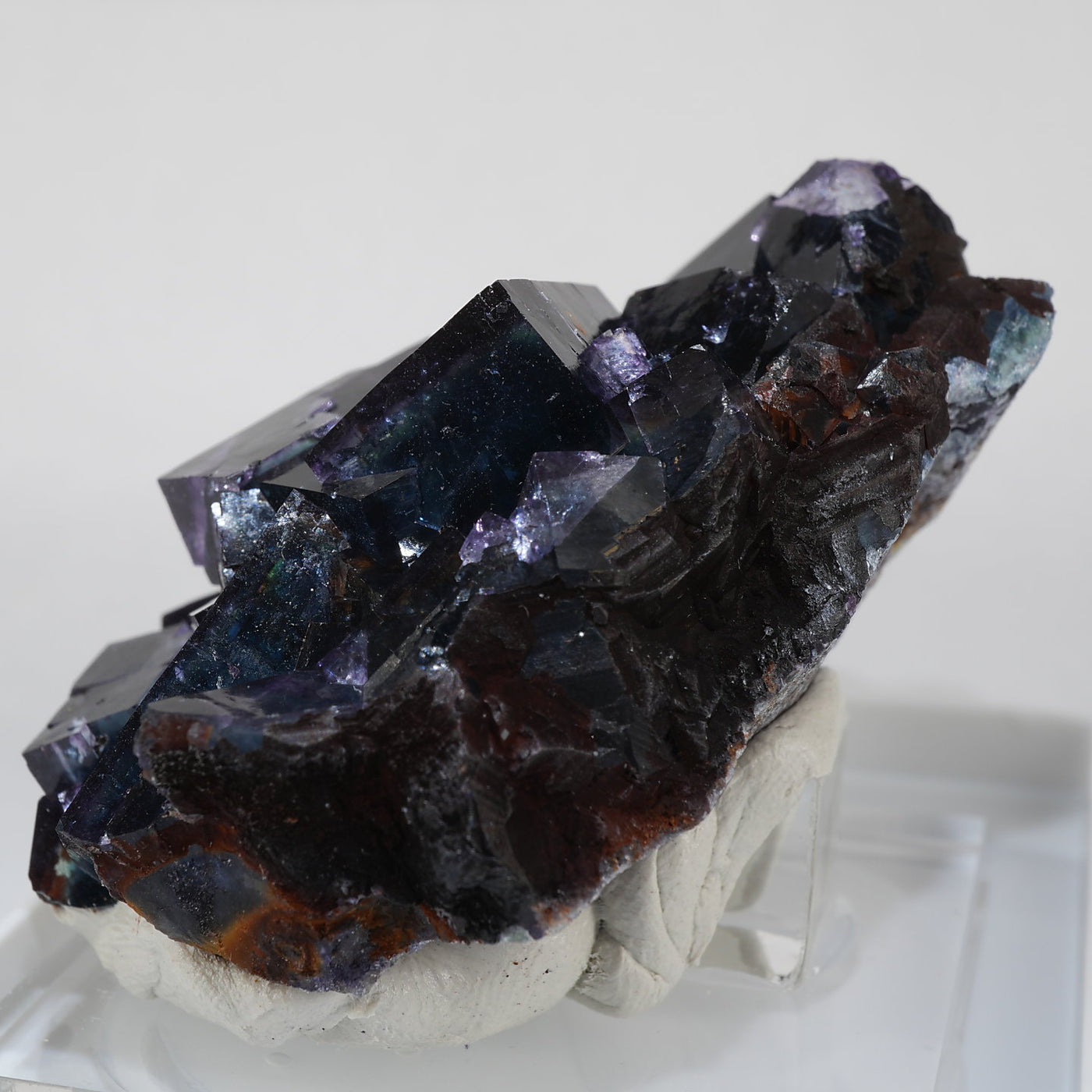 人気のナミビアOkorusu(Blue Lake Pocket)産のフローライトです。深みのある濃いブルーグリーンと照りのある表面が美しい標本です。光を透過させるとパープルのゾーニングが際立ちます。紫外線ライトを当てると蛍光します。