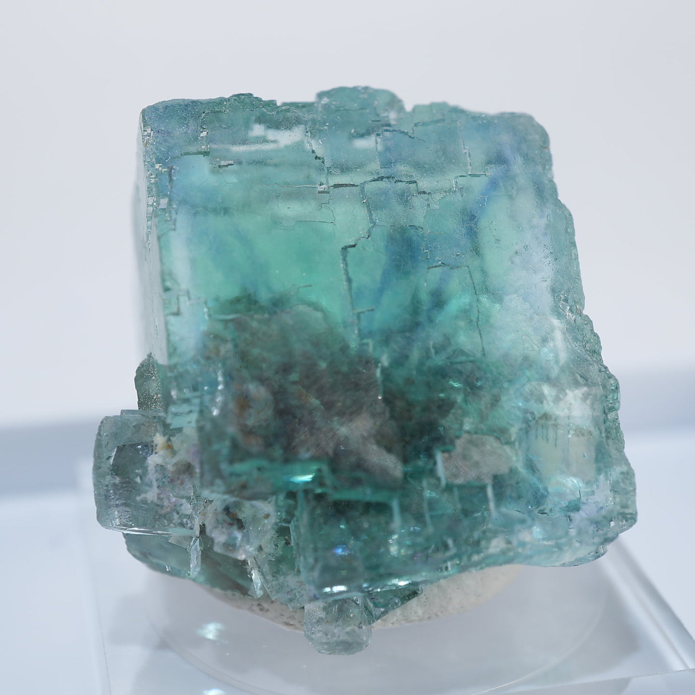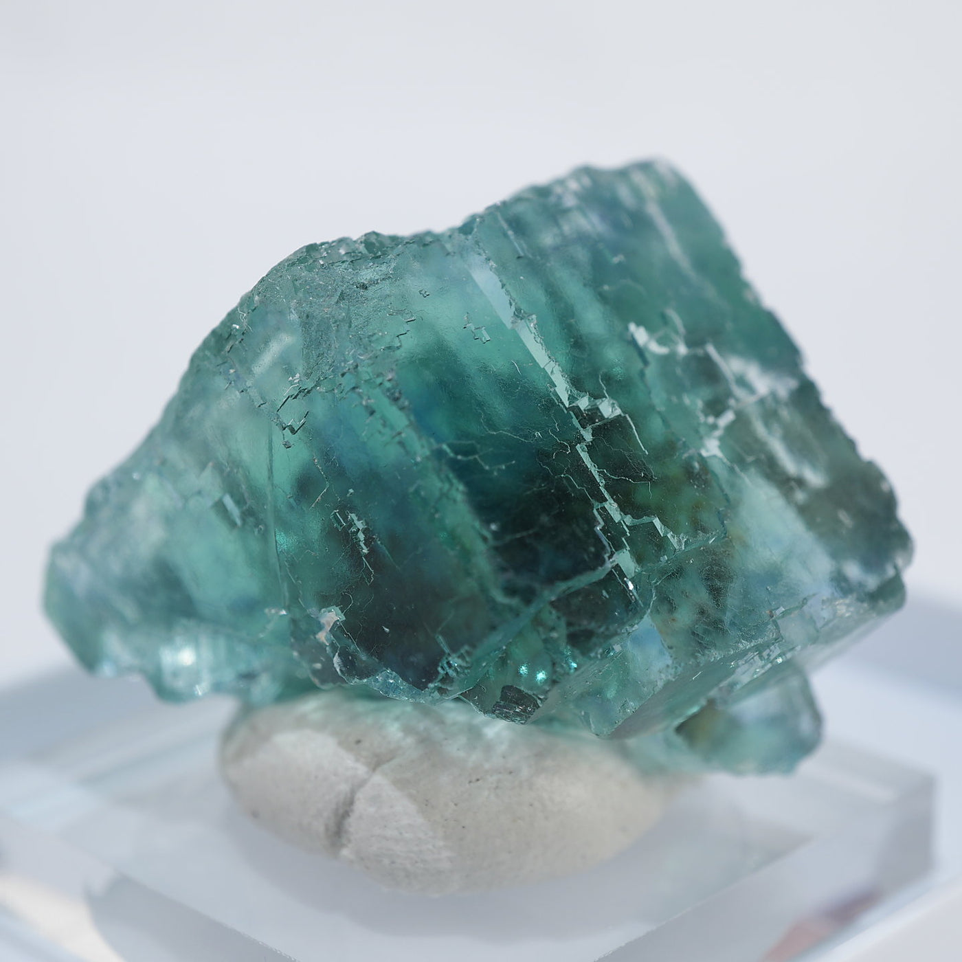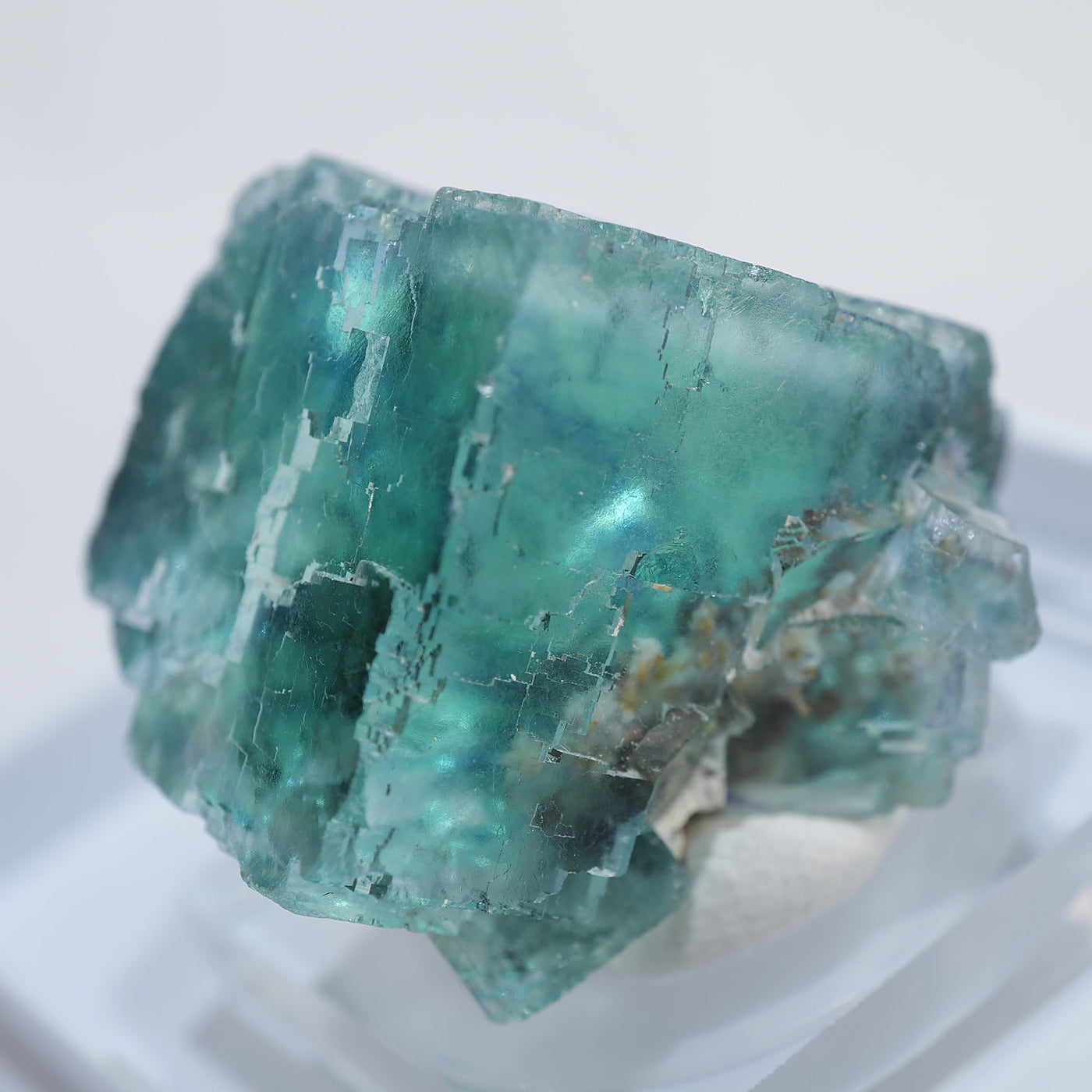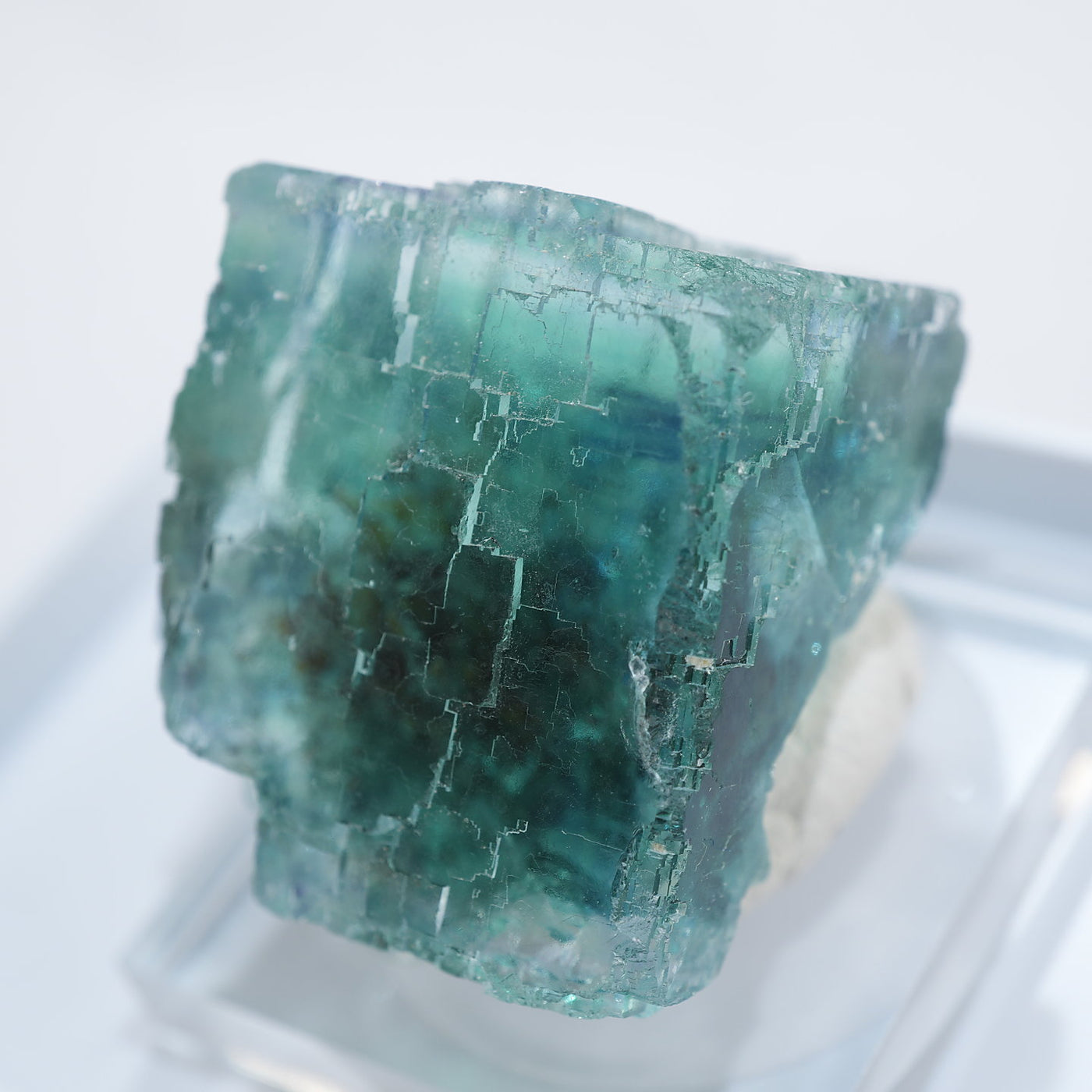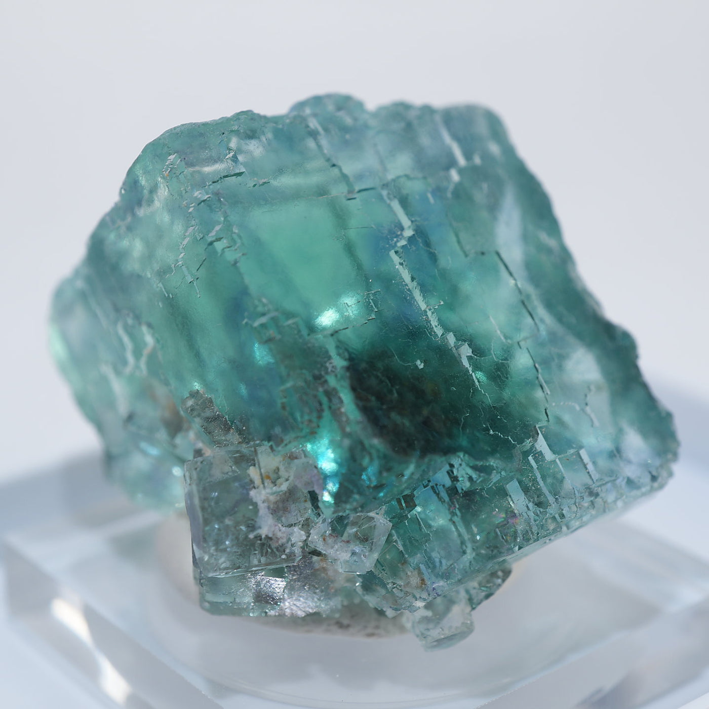 人気のナミビアOkorusu(オコルス)産のフローライトです。透明感のある鮮やかな緑色と表面の凹凸が特徴的な美しい標本です。紫外線ライトを当てると蛍光します。