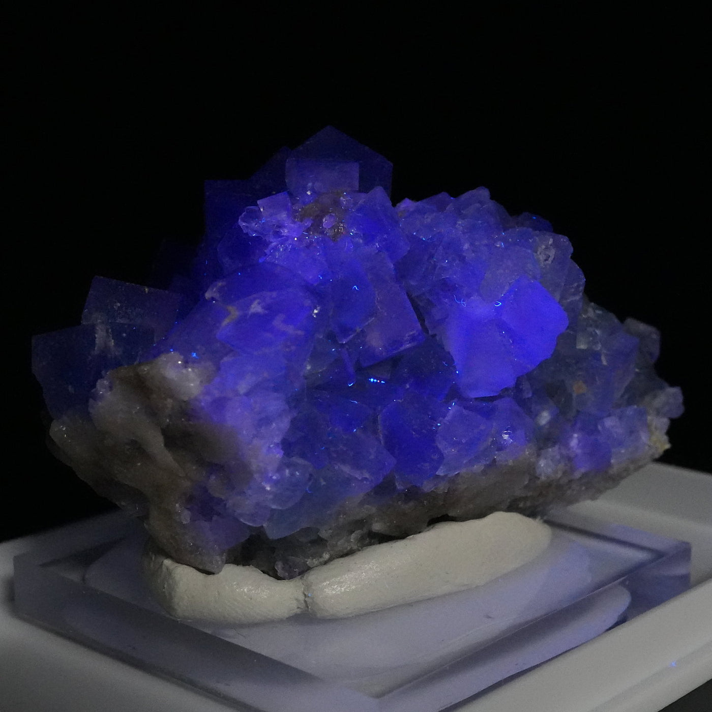 アメリカ・ニューメキシコ州産のフローライトです。淡いブルーのフローライトが母岩全体に広がっています。紫外線ライトを当てると蛍光します。※撮影に使用しているライトは、紫外線ライト365nm5wタイプです。【産地】 Blanchard Mine, Bingham, New Mexico, USA【サイズ】約57mm×32mm×40mm【ご注意】ライトを当てて撮影しております、またご覧になるモニター環境によっても差があり、色合いの違いを感じられる事が有ります。 商品は天然ゆえ写真では確認できない細かな傷や凹み等がある場合もございます。イメージの違いに関しての返品は受付出来かねますのでご了承ください。【その他】価格は税込表示です、送料は全国一律全て無料です。宅配便またはポスト投函便(ヤマト運輸ネコポス)にて配送いたします。発送方法の指定はできません。
