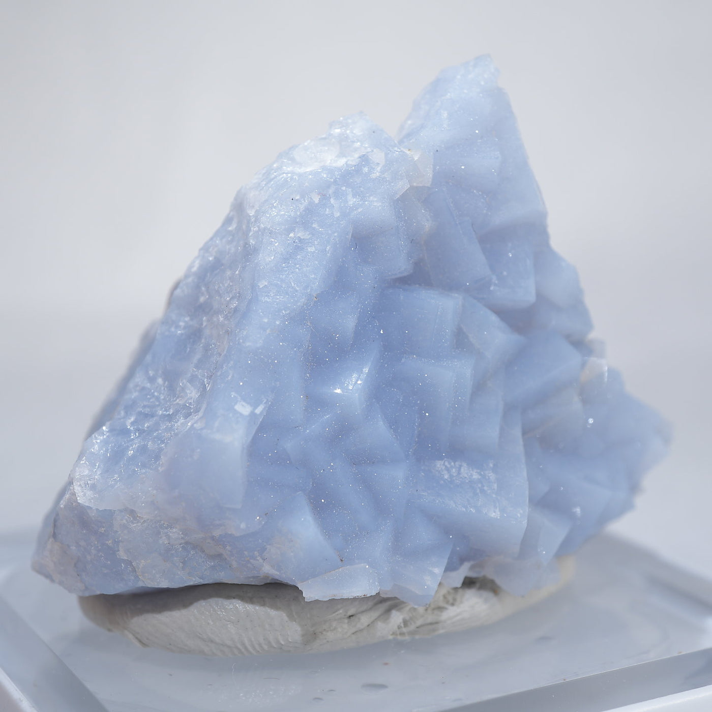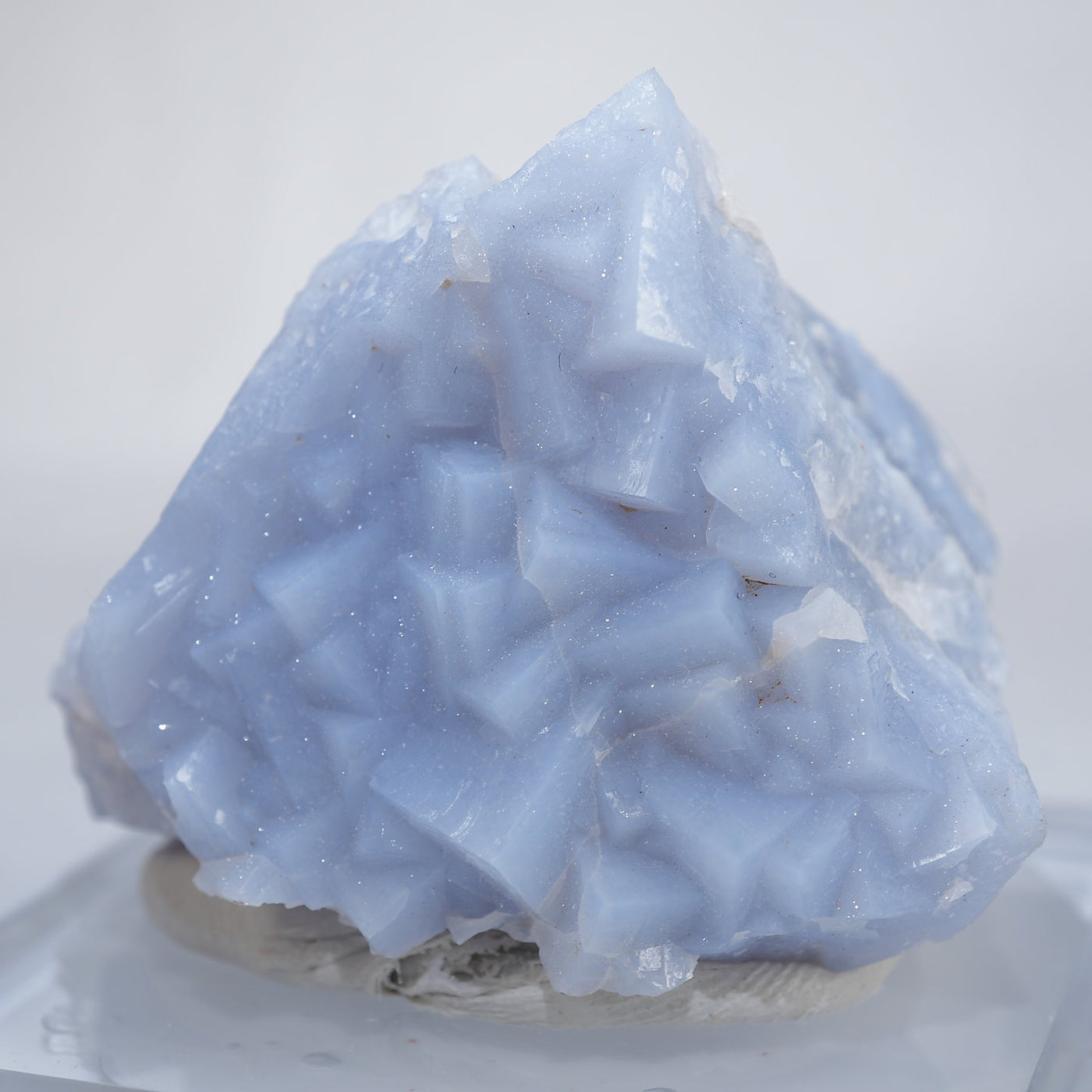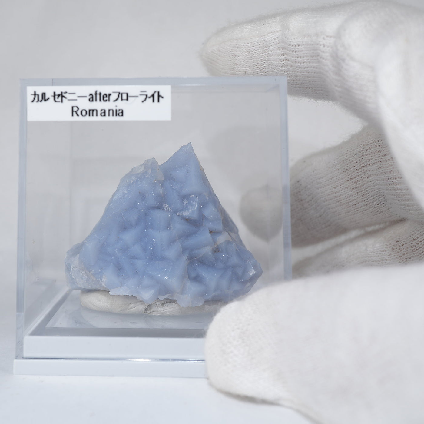 ルーマニア・トレスティアのフローライト仮晶です。カルセドニーに変化しており、マットな質感と薄い群青色に癒されます。鉱物としても興味深いものです。■仮晶(pseudomorph)仮晶もしくは仮像とも呼ばれ、鉱物の結晶形が保たれたまま中身が別の鉱物に置き換わり、本来からはあり得ない形となる現象とされる。仮晶になる原因としては温度や圧力の変化による場合、化学反応を起こし組成が変化したり取り残される場合、鉱物が溶け去った後に他の鉱物が埋まったり覆ったりして変化する場合が主に挙げられる。【産地】Trestia, Maramures, Romania【サイズ】約30mm×40mm×25mm【ご注意】ライトを当てて撮影しております、またご覧になるモニター環境によっても差があり、色合いの違いを感じられる事が有ります。 商品は天然ゆえ写真では確認できない細かな傷や凹み等がある場合もございます。イメージの違いに関しての返品は受付出来かねますのでご了承ください。【その他】価格は税込表示です、送料は全国一律全て無料です。宅配便またはポスト投函便(ヤマト運輸ネコポス)にて配送いたします。発送方法の指定はできません。