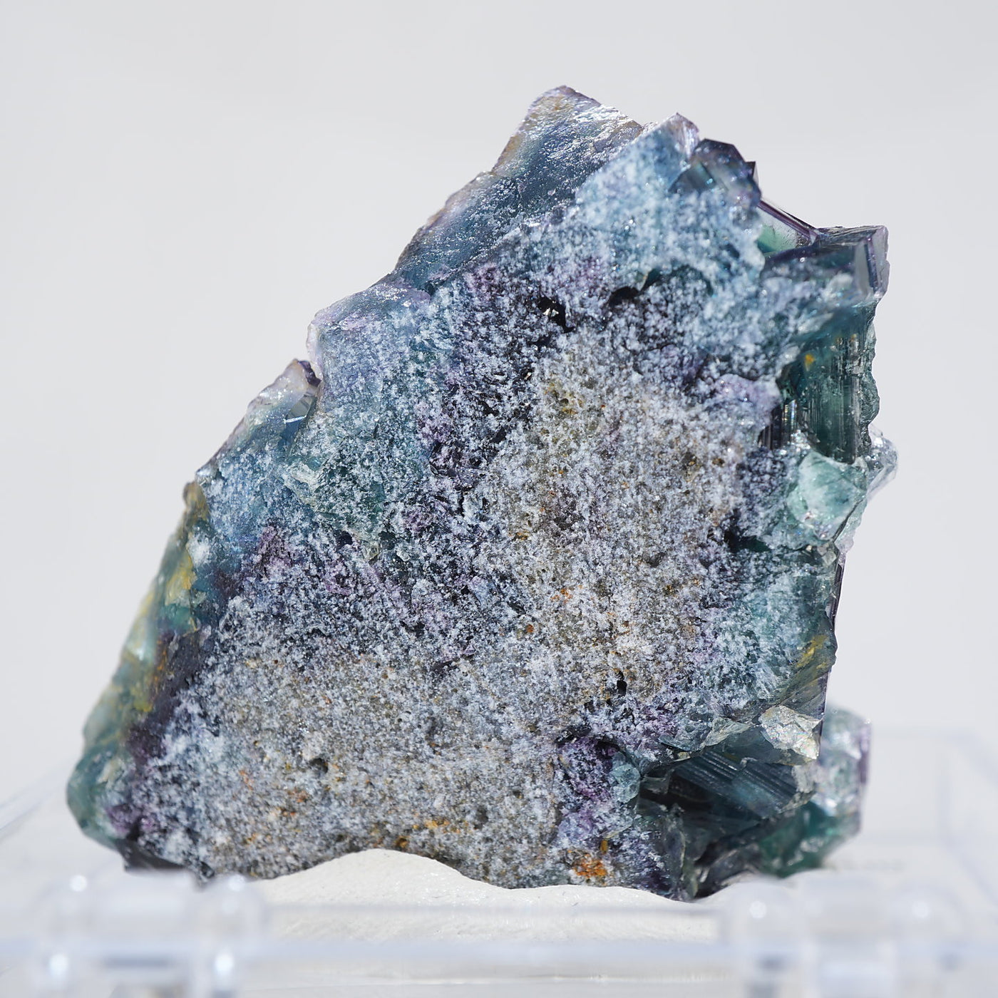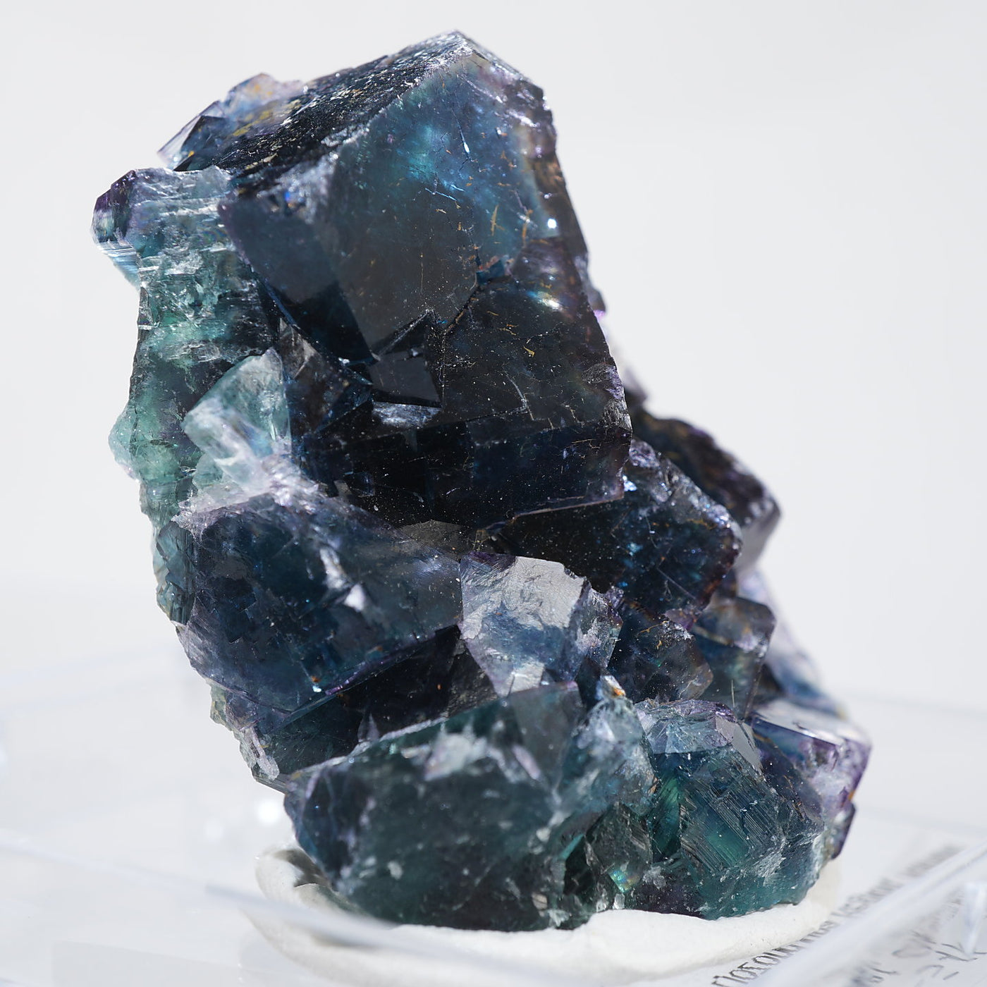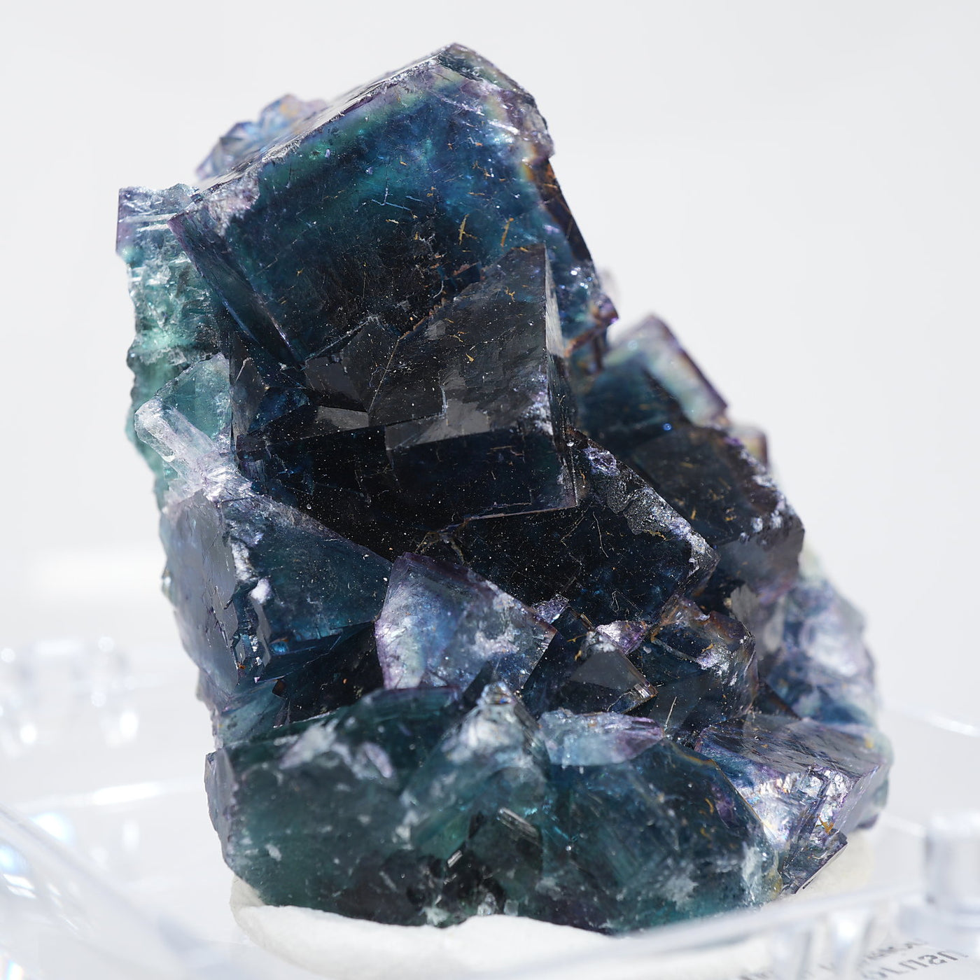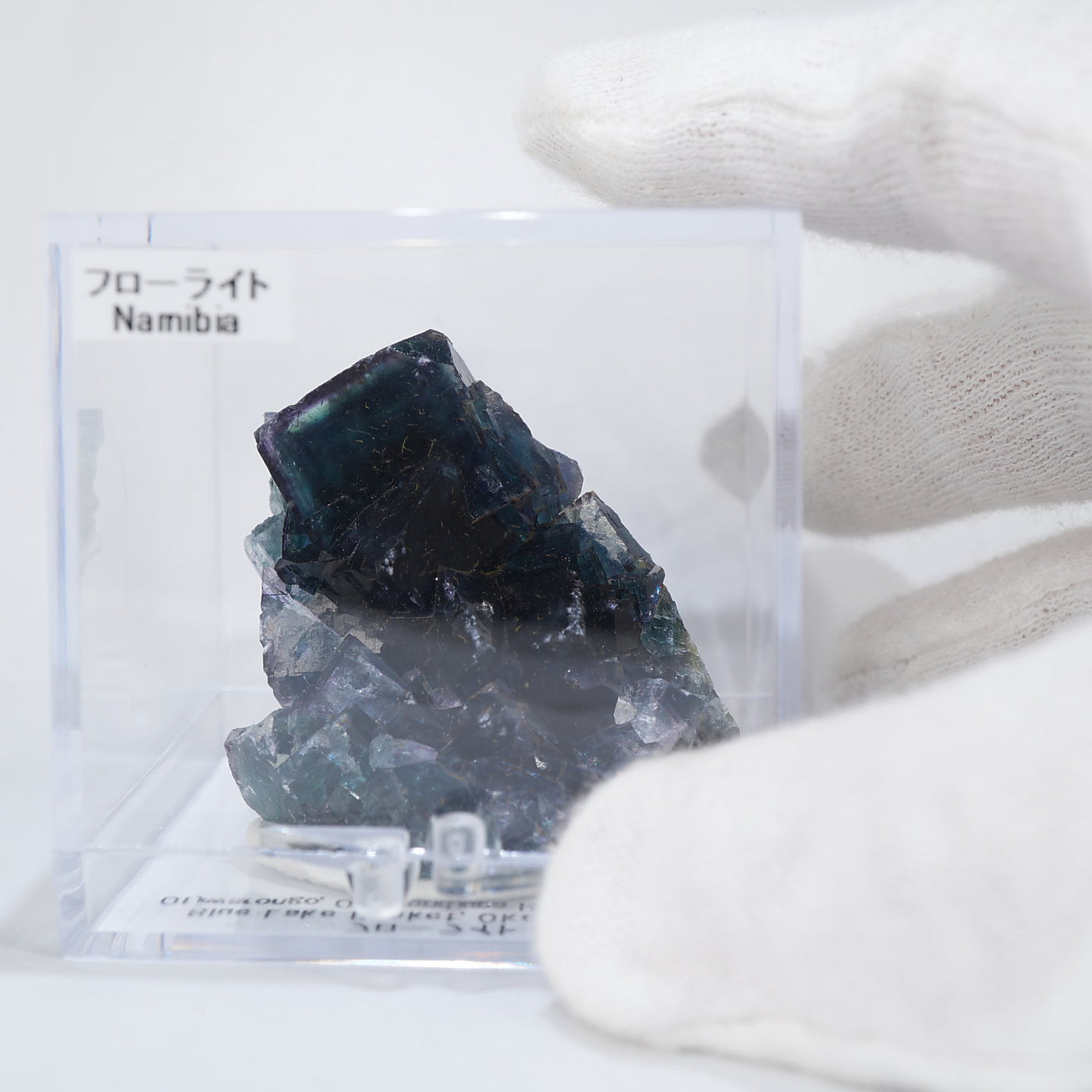 人気のナミビアOkorusu(Blue Lake Pocket)産のフローライトです。深みのある濃いブルーグリーンと照りのある表面が美しい標本です。光を透過させるとパープルのゾーニングが際立ちます。紫外線ライトを当てると蛍光します。