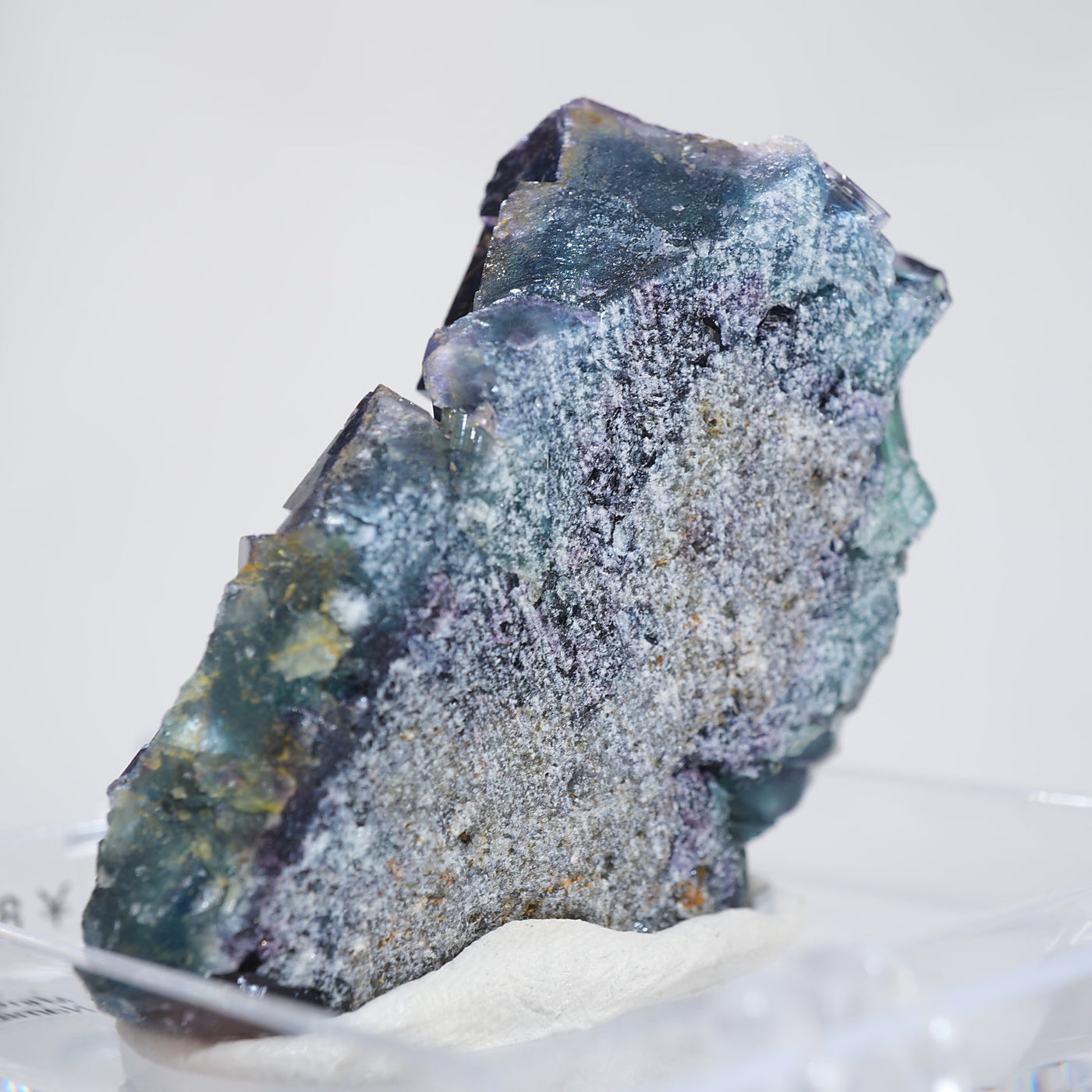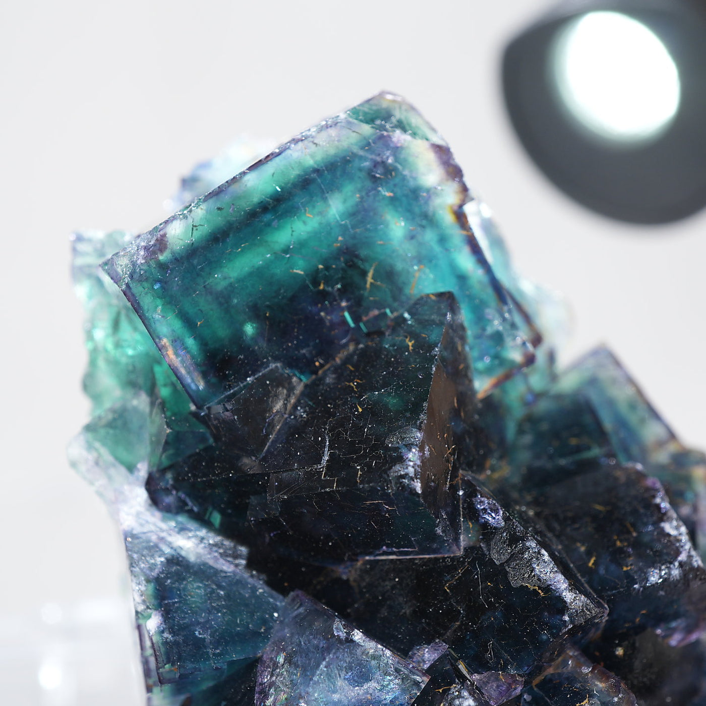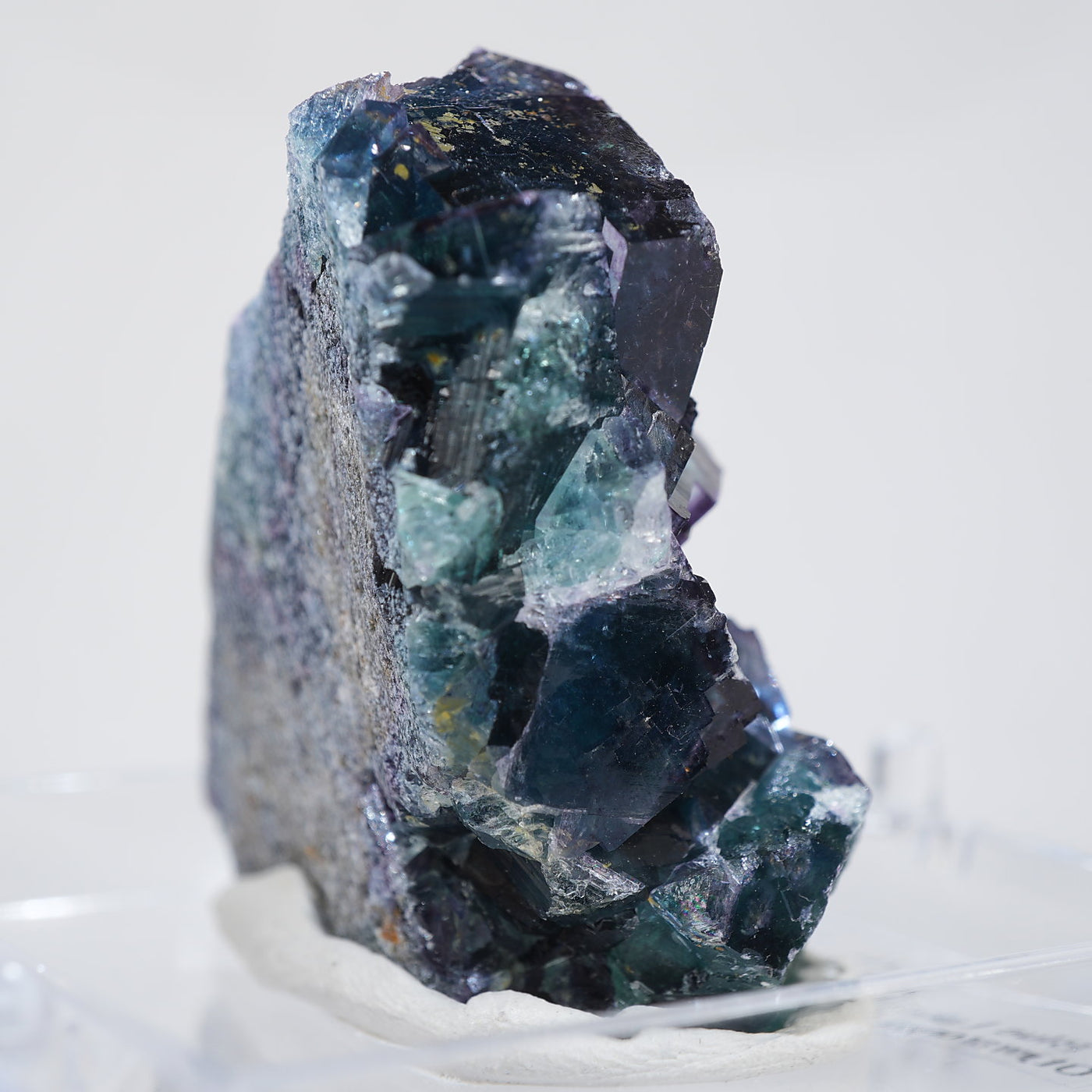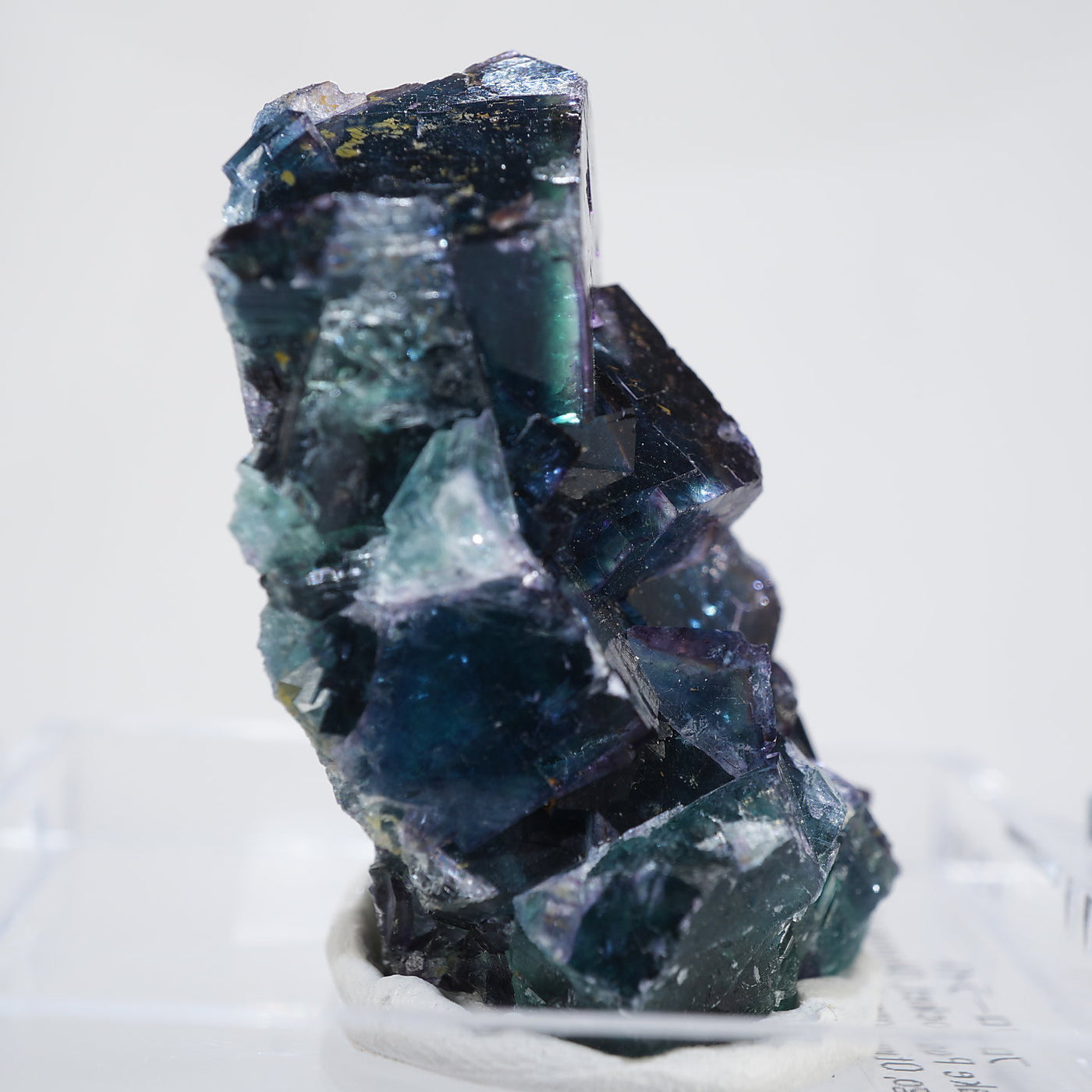人気のナミビアOkorusu(Blue Lake Pocket)産のフローライトです。深みのある濃いブルーグリーンと照りのある表面が美しい標本です。光を透過させるとパープルのゾーニングが際立ちます。紫外線ライトを当てると蛍光します。