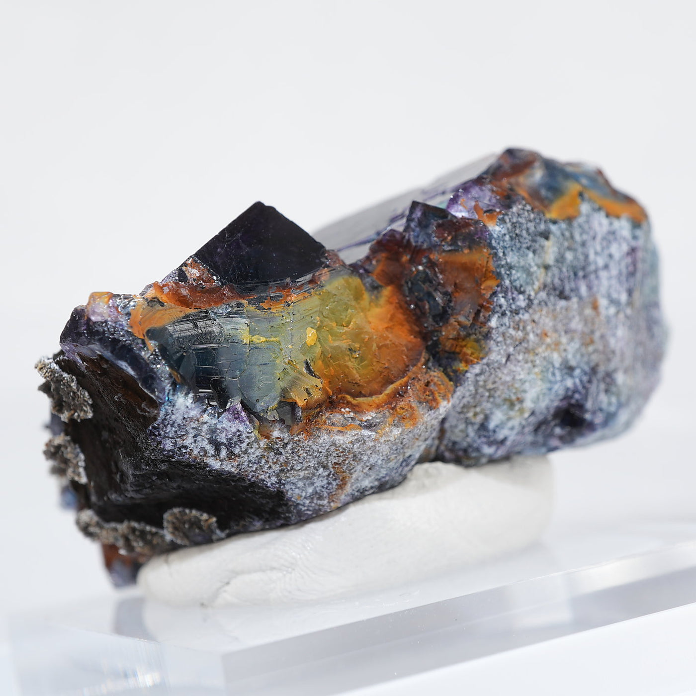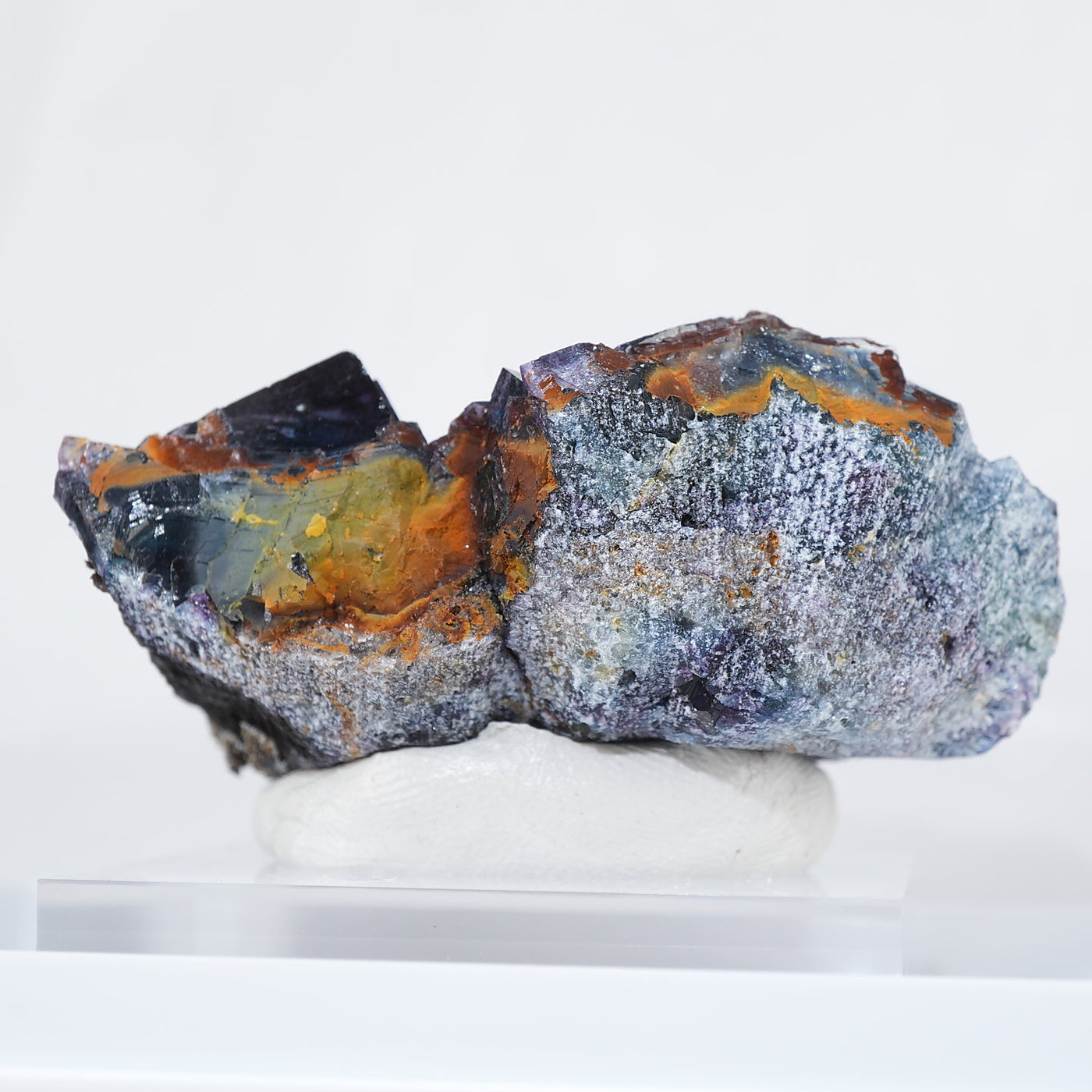 人気のナミビアOkorusu(Blue Lake Pocket)産のフローライトです。深みのある濃いブルーグリーンと照りのある表面が美しい標本です。光を透過させるとパープルのゾーニングが際立ちます。紫外線ライトを当てると蛍光します。