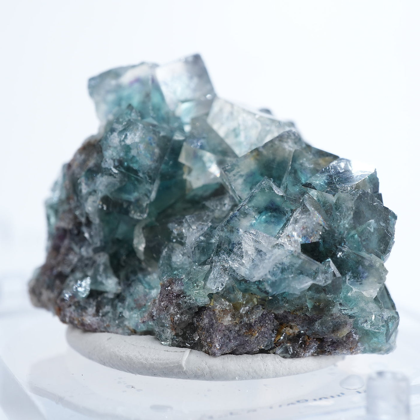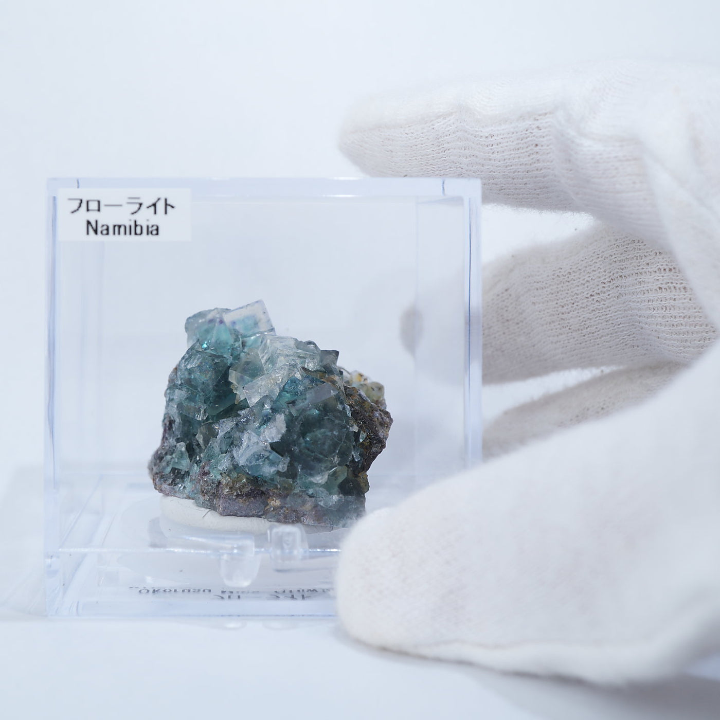 透明感のあるグリーンが印象的な標本です。紫外線ライトを当てると蛍光します。
